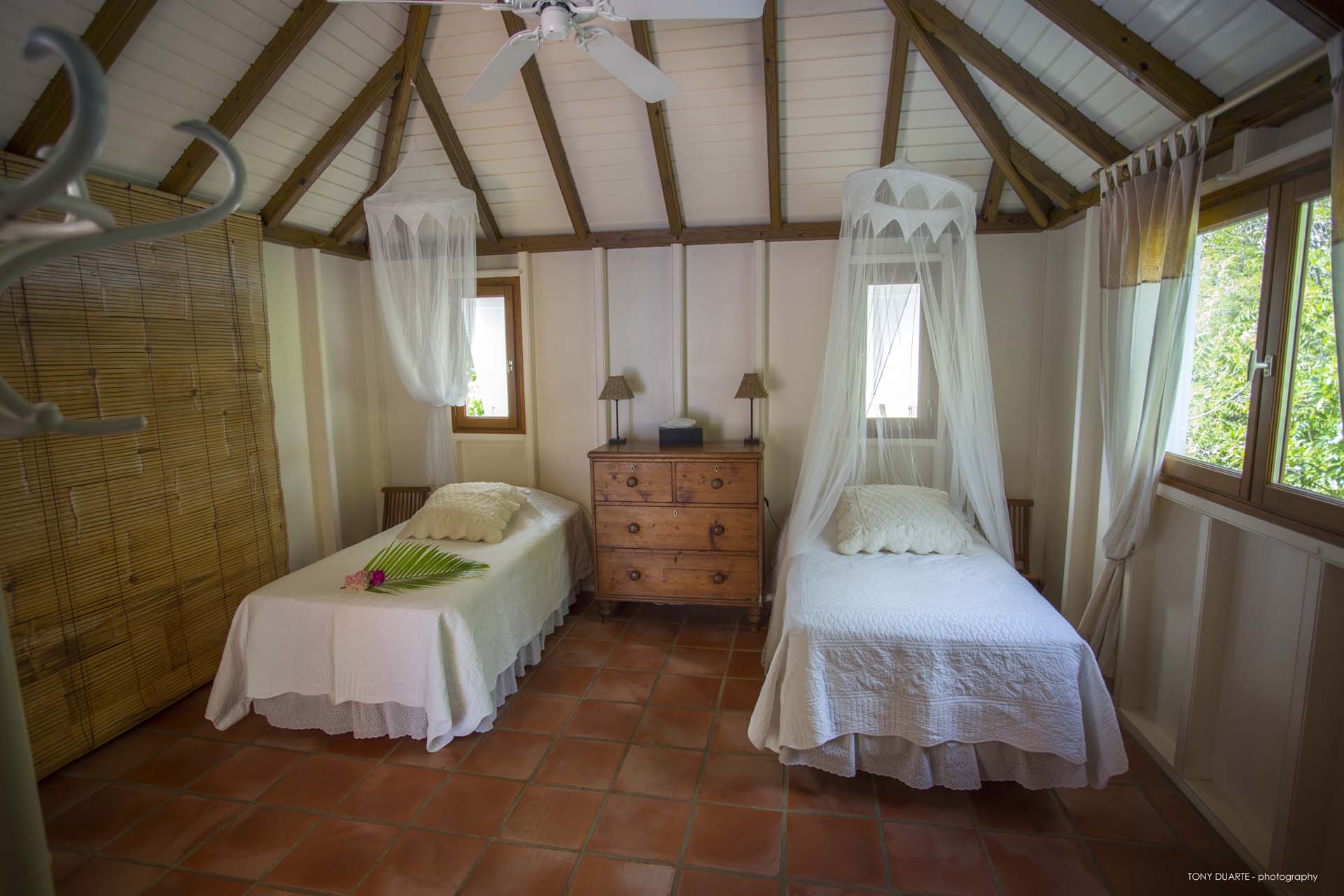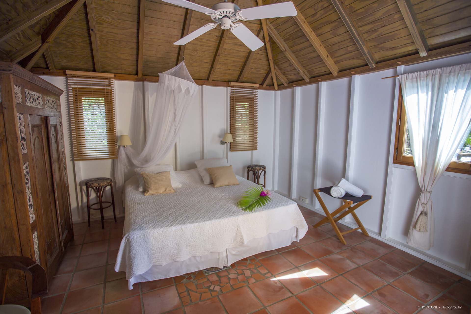 De style caribéen, trois chambres sont dans des bungalows séparés.