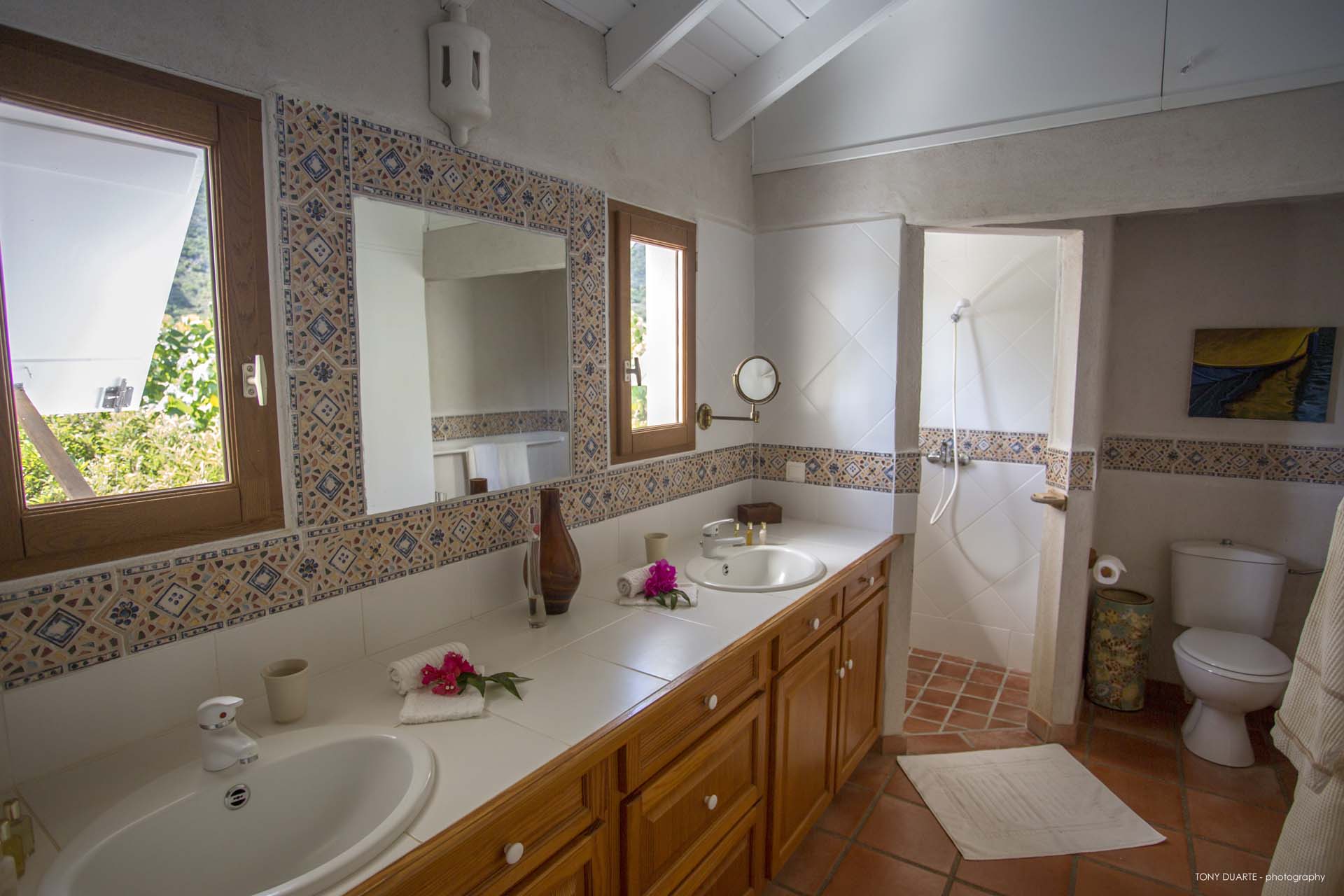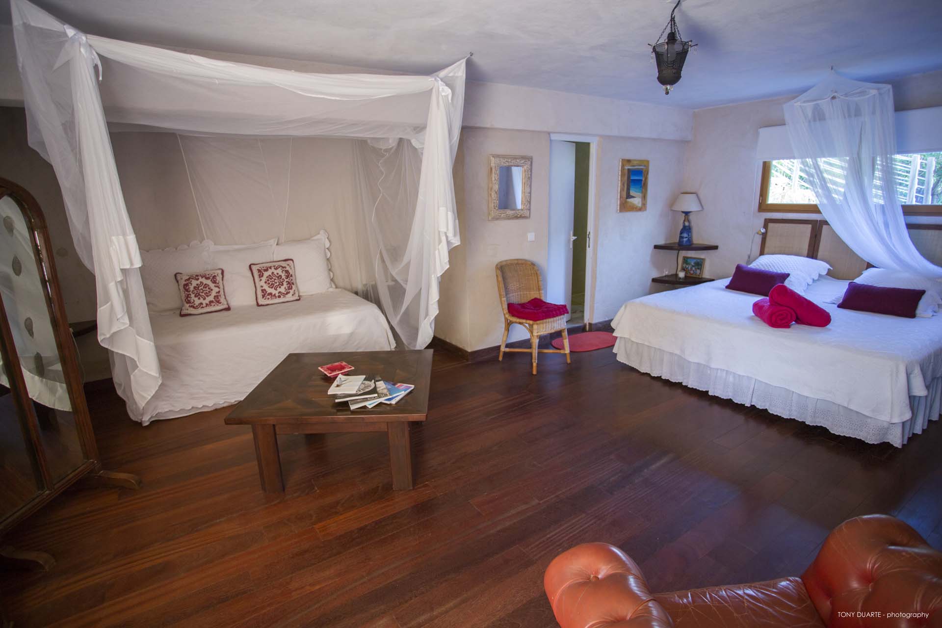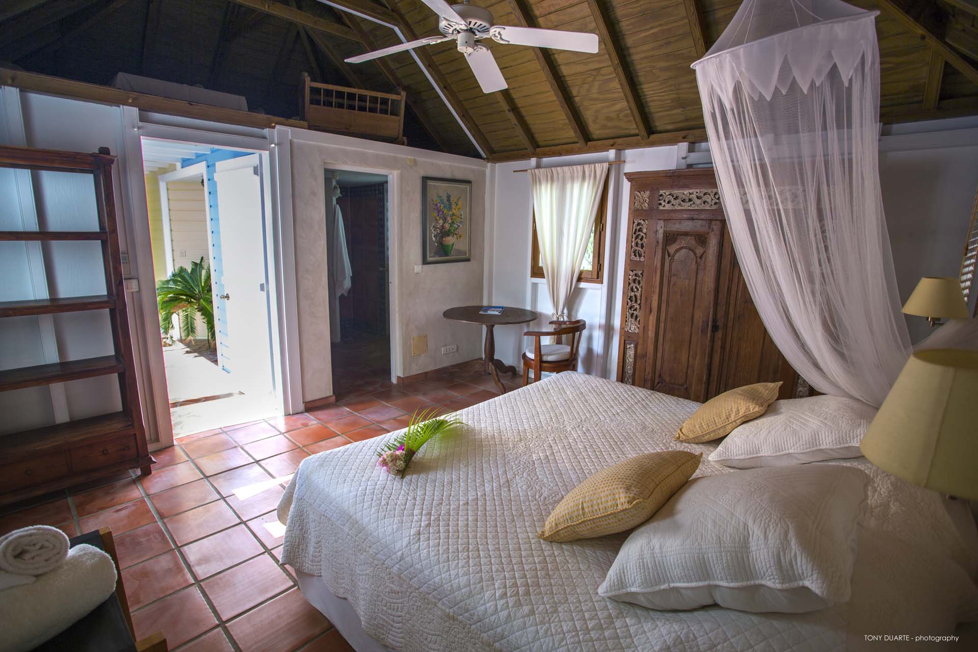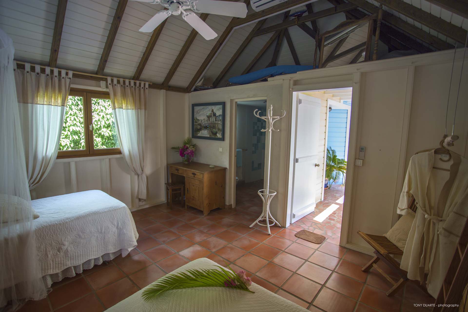 De style caribéen, trois chambres sont dans des bungalows séparés.