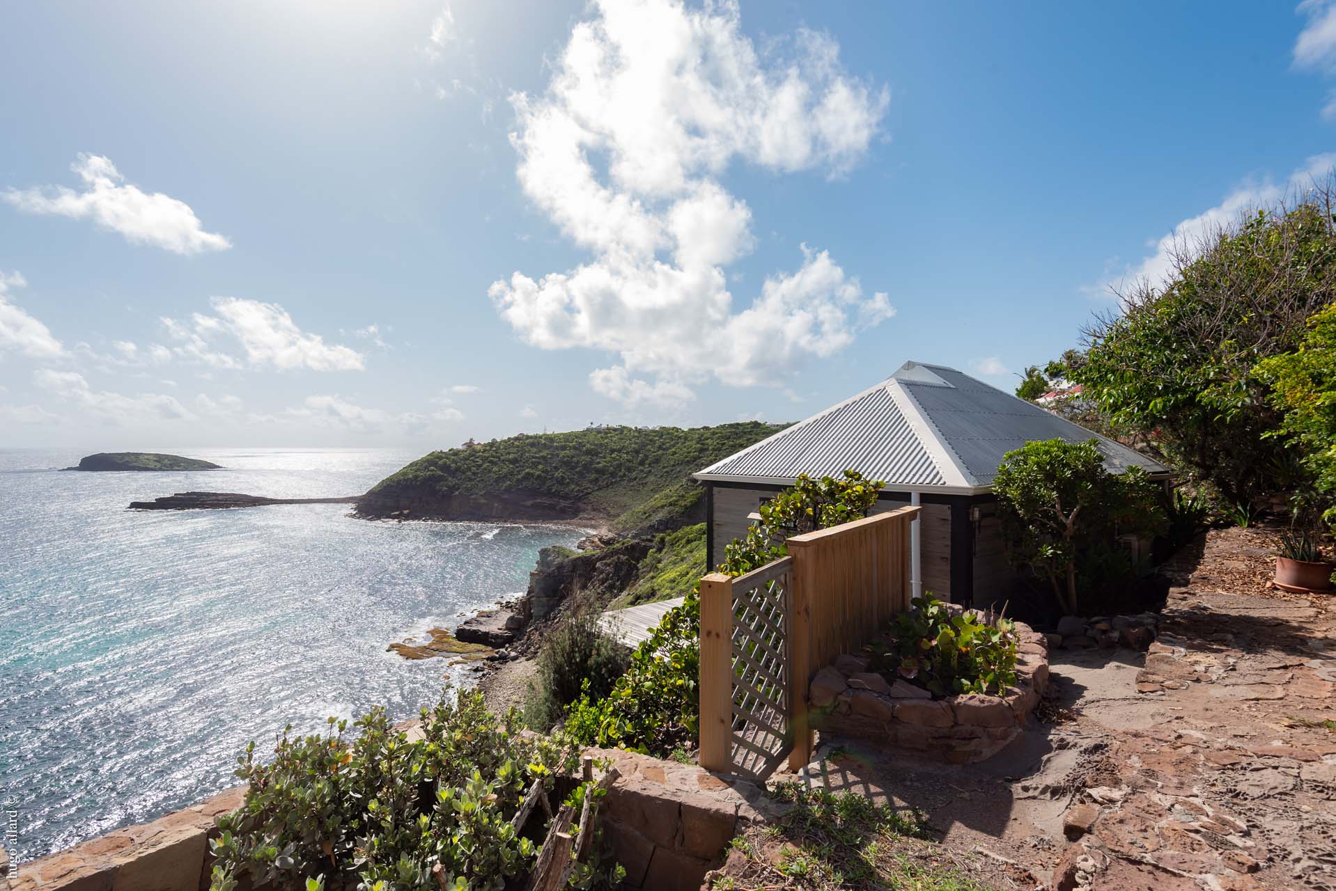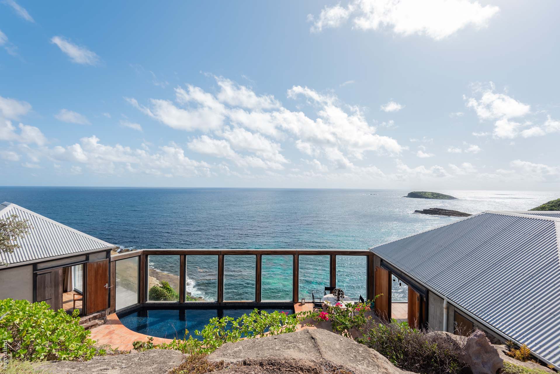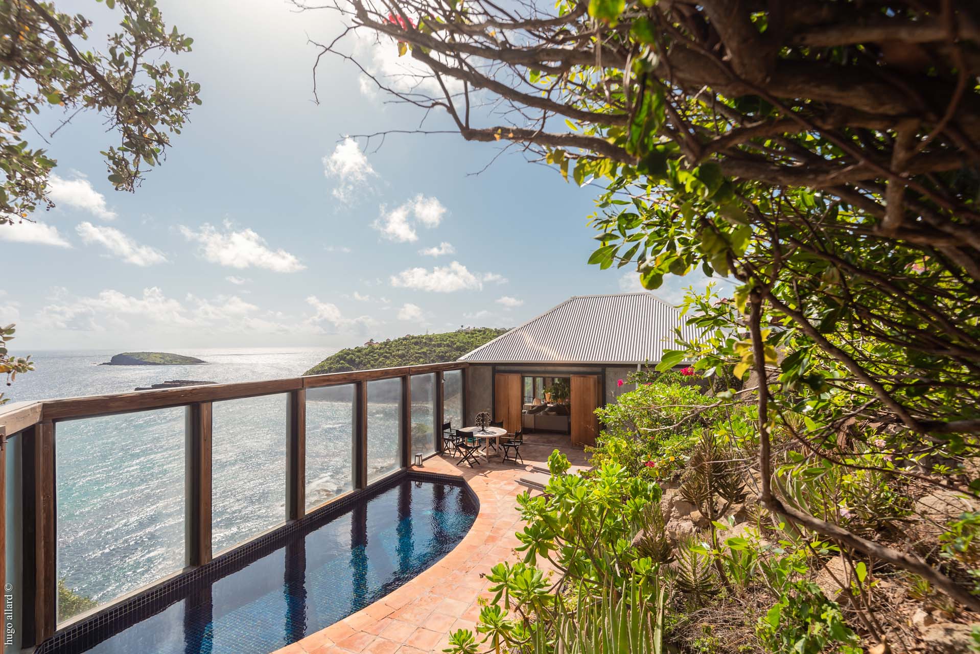 Arapede est une villa d’architecte au design très intéressant. Située à Pointe Milou, elle s’intègre parfaitement aux éléments naturels qui l’entourent. Elle semble suspendue au dessus de l’océan. La vue est à couper le souffle.