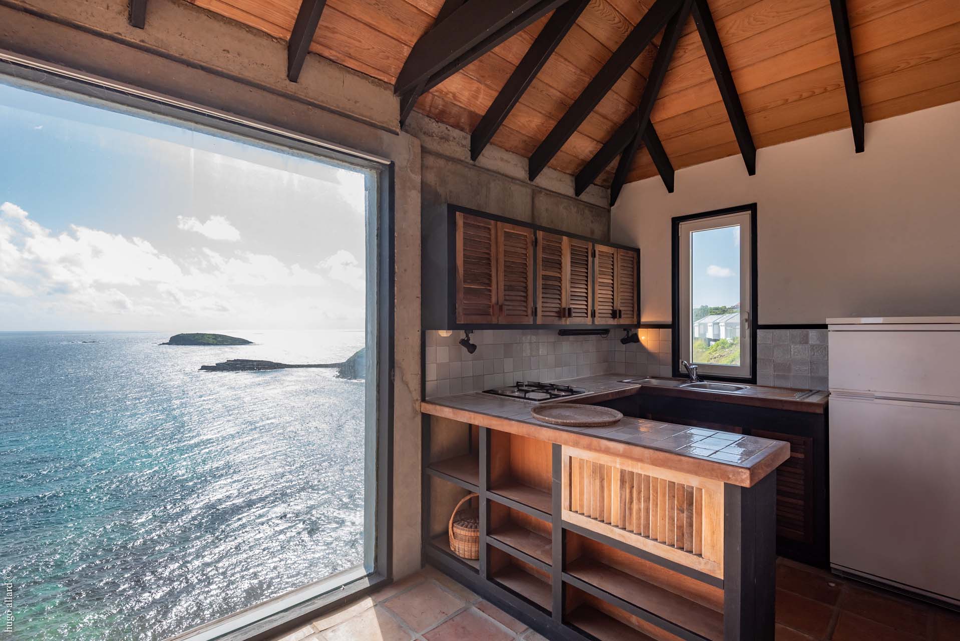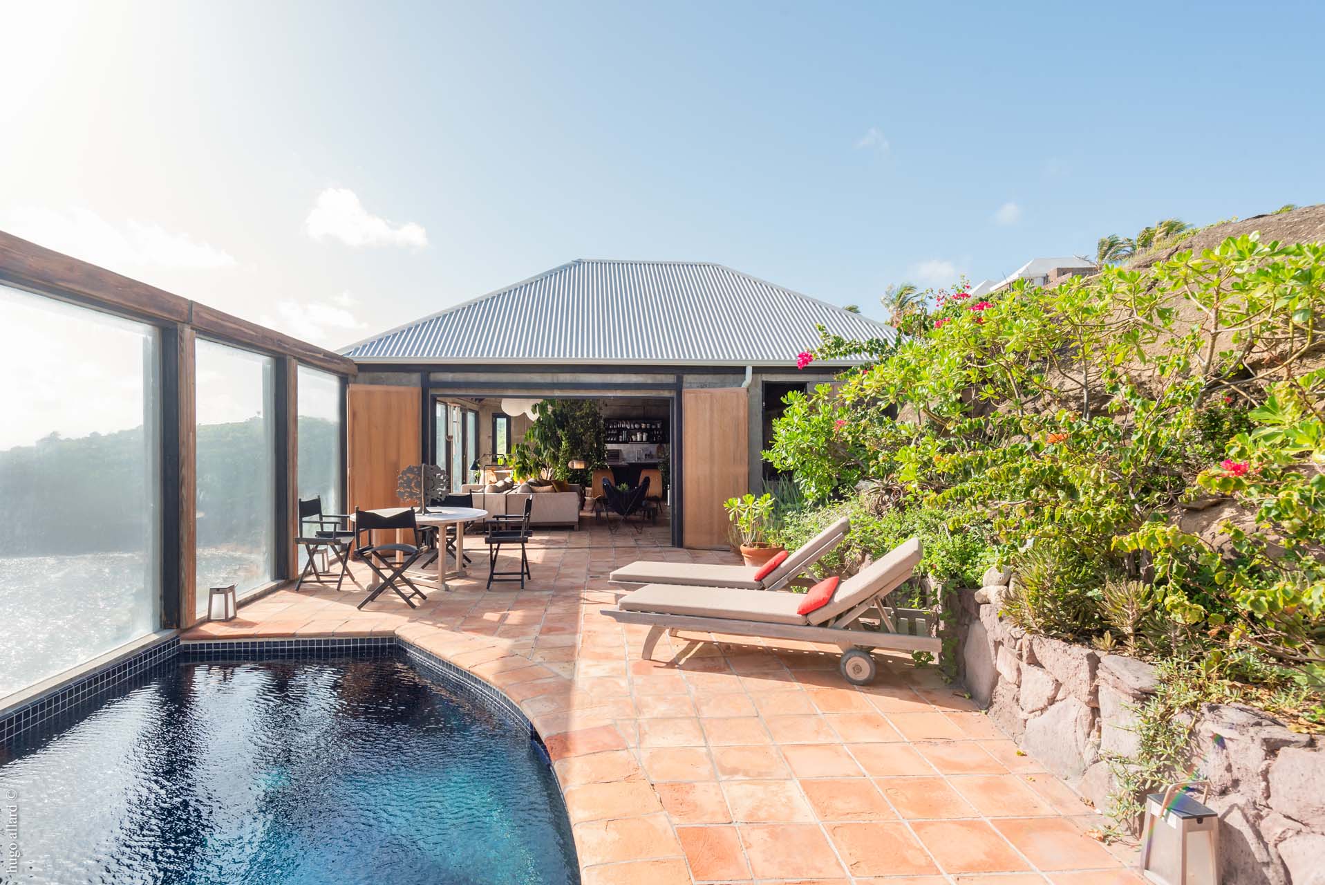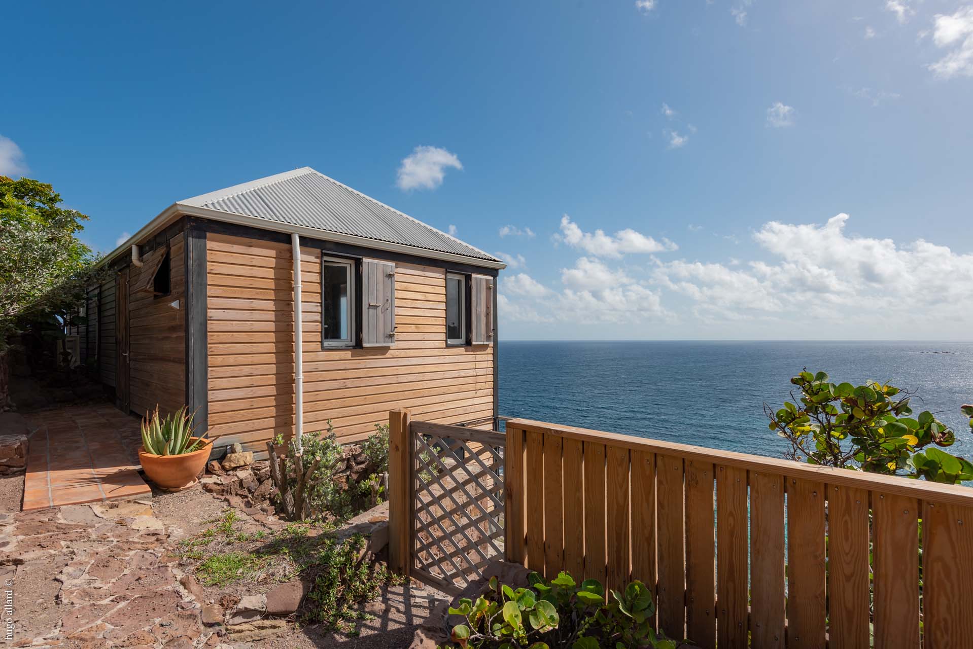 Arapede est une villa d’architecte au design très intéressant. Située à Pointe Milou, elle s’intègre parfaitement aux éléments naturels qui l’entourent. Elle semble suspendue au dessus de l’océan. La vue est à couper le souffle.