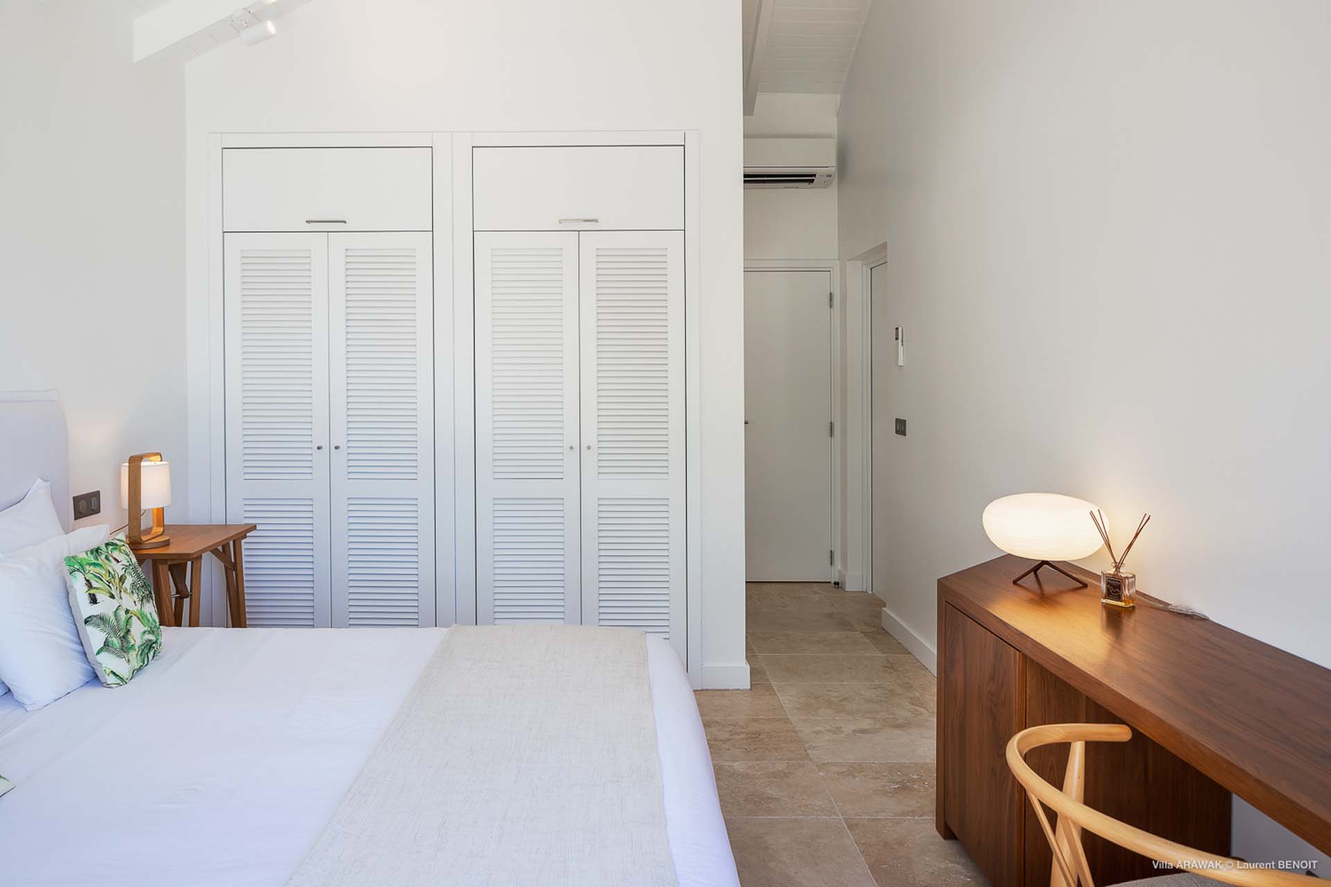 Deux chambres se trouvent de chaque côté du salon, la dernière est dans un bungalow séparé. Elles ont chacune une salle de bain privative.