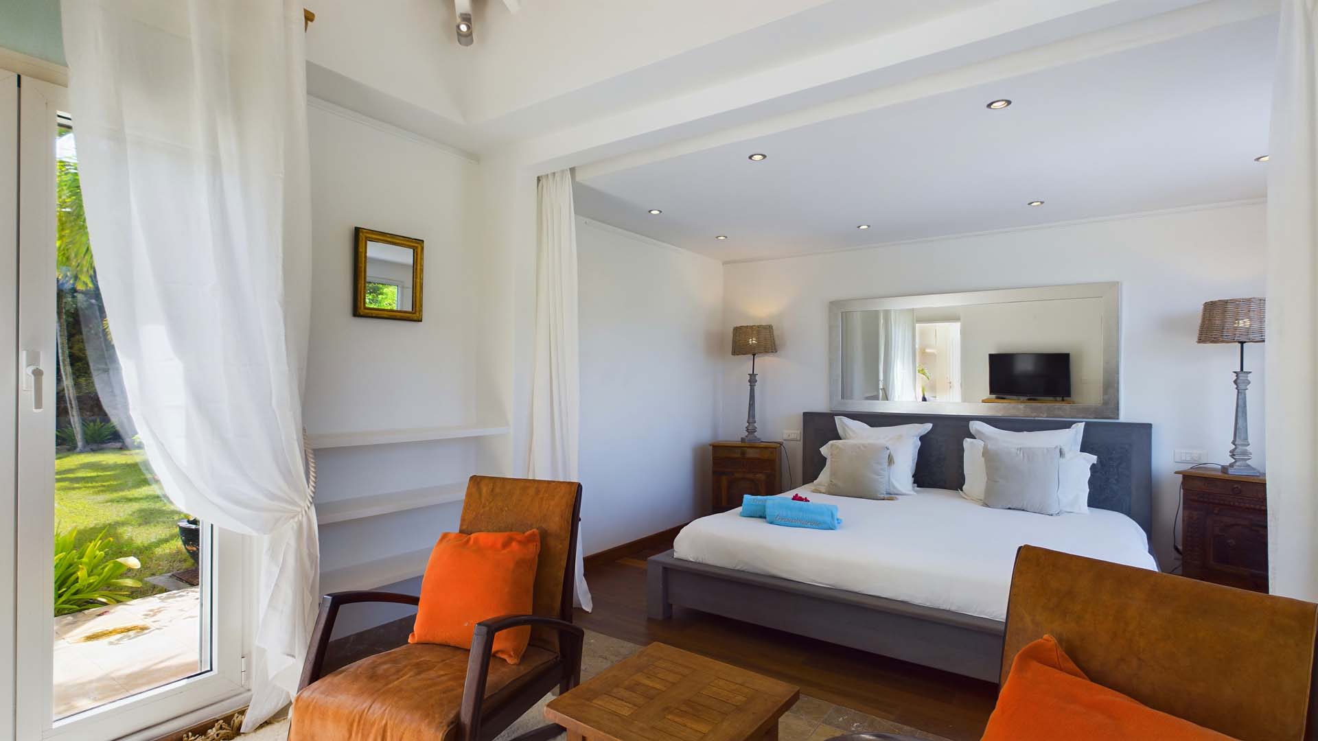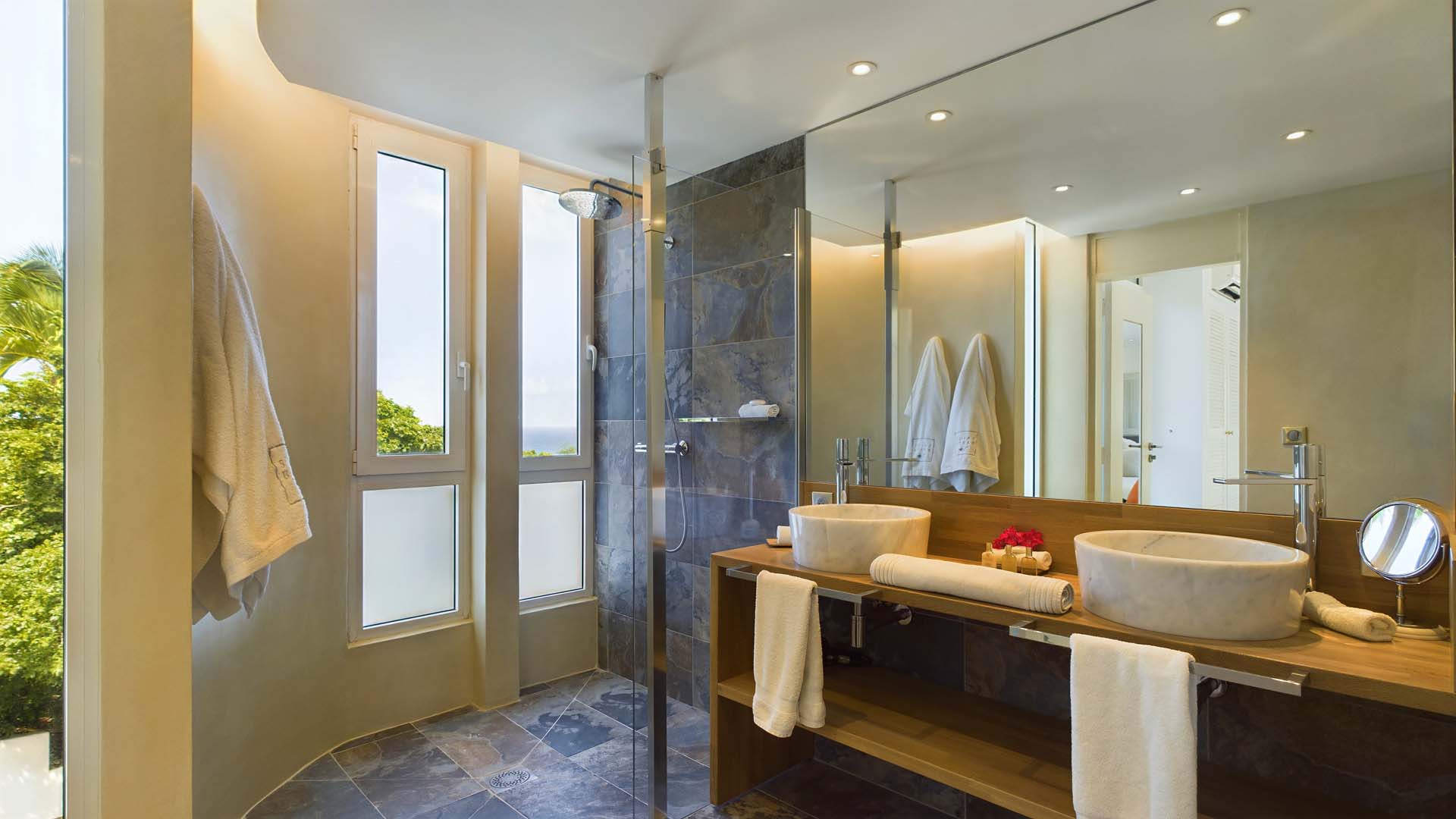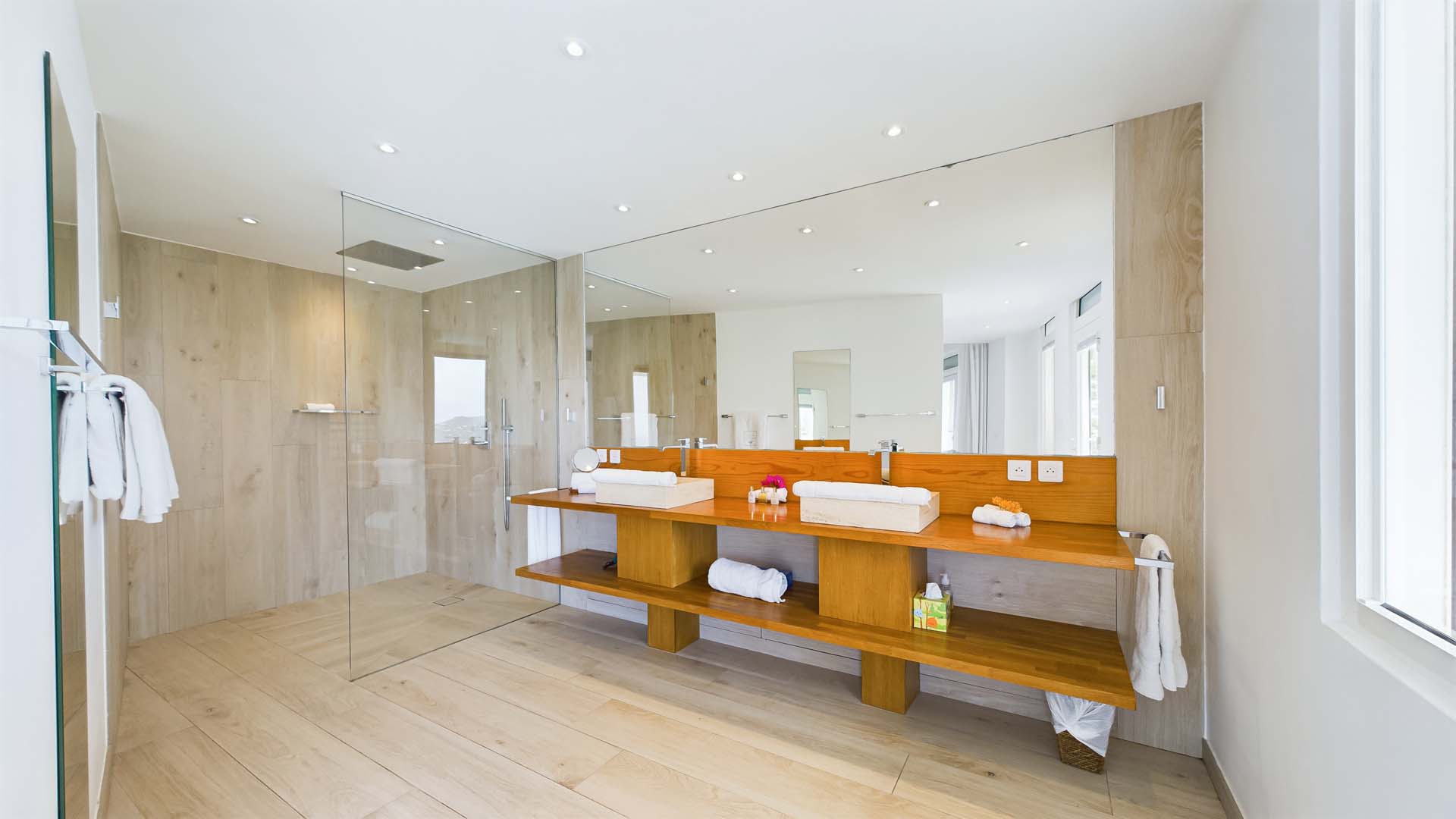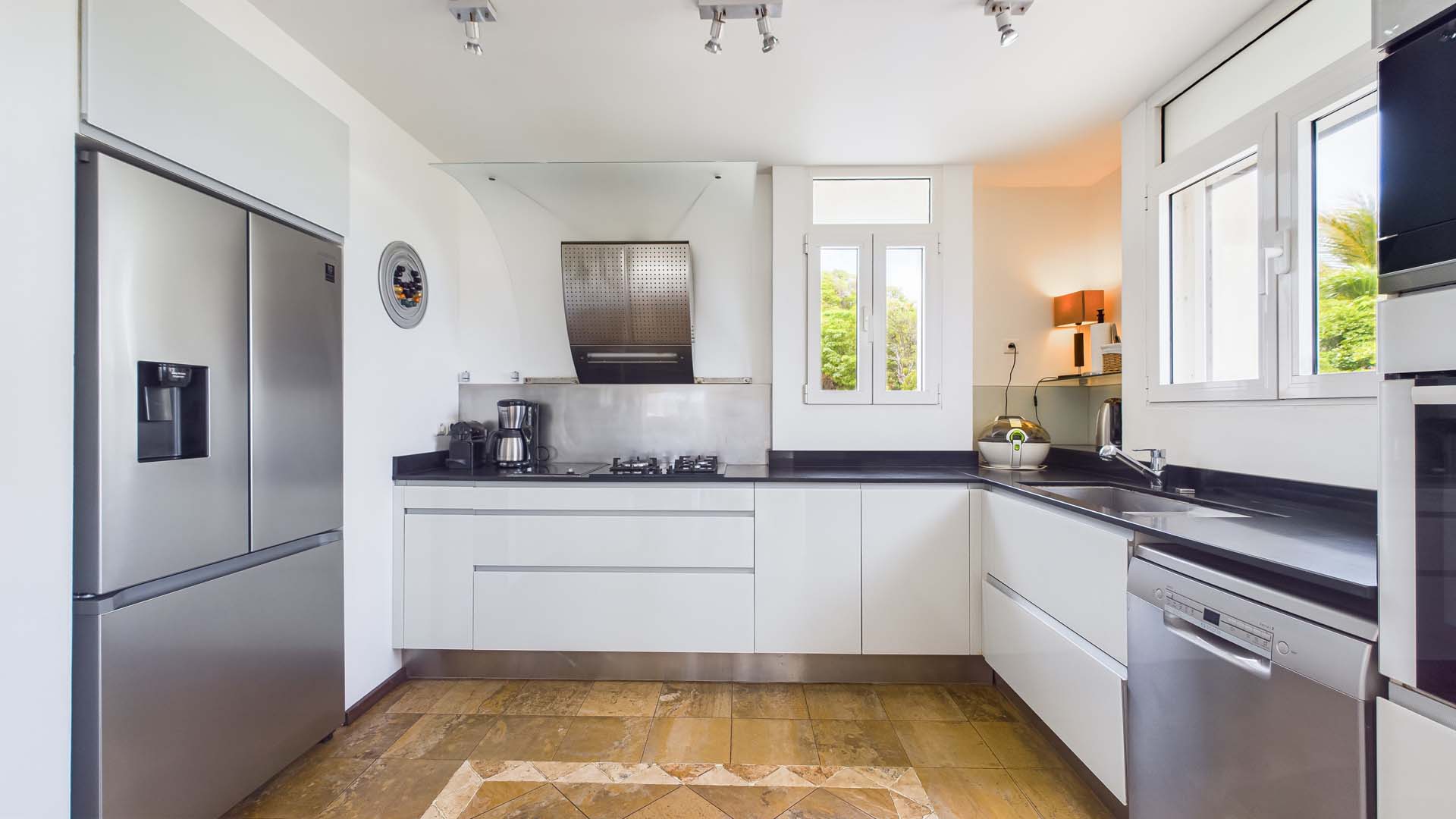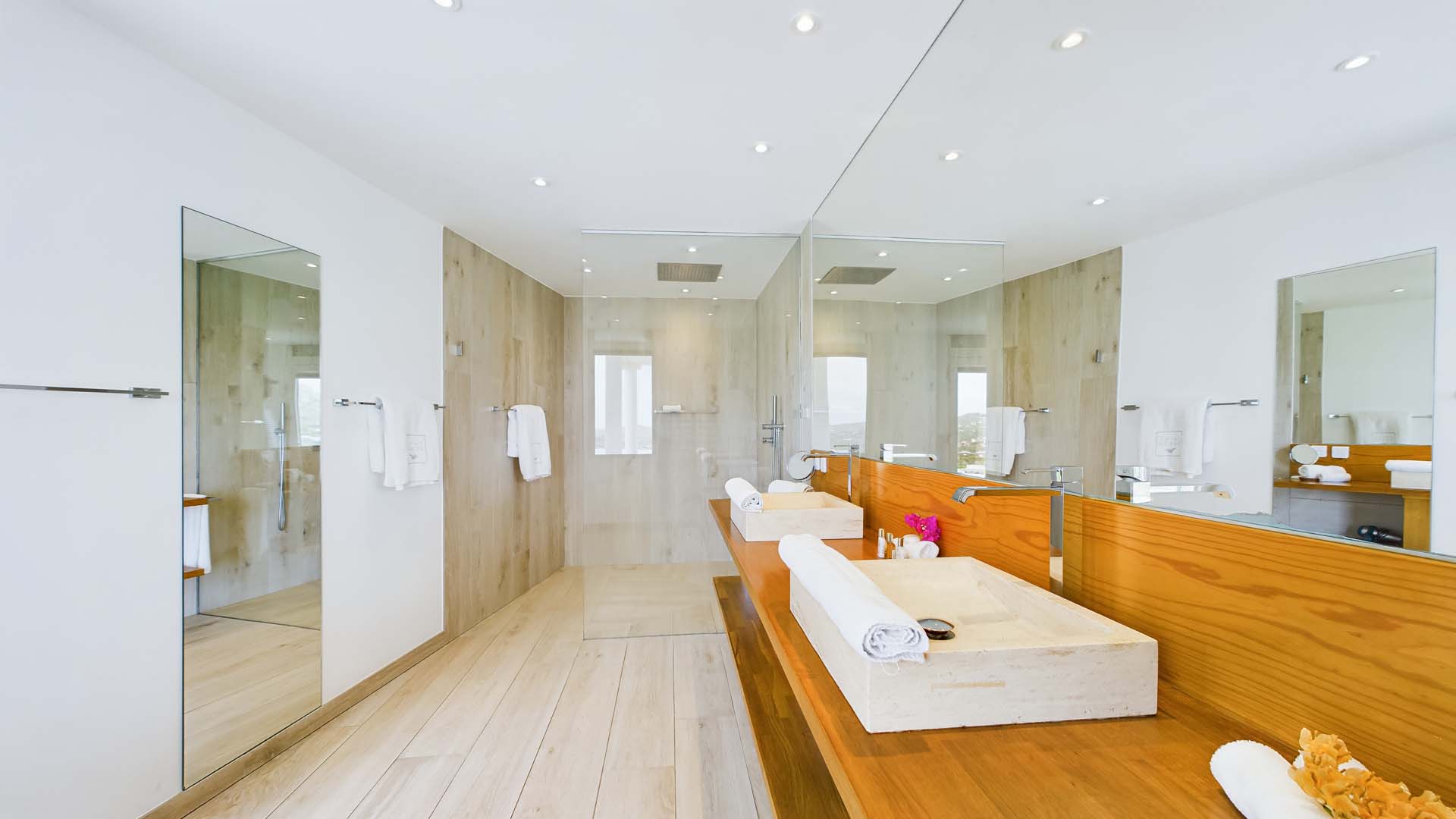 La villa dispose également d’une salle de sport. Un plus à noter pour les amateurs de plongées sous marine : un escalier privé conduit au bord de la mer dans la réserve marine de la baie de Marigot.