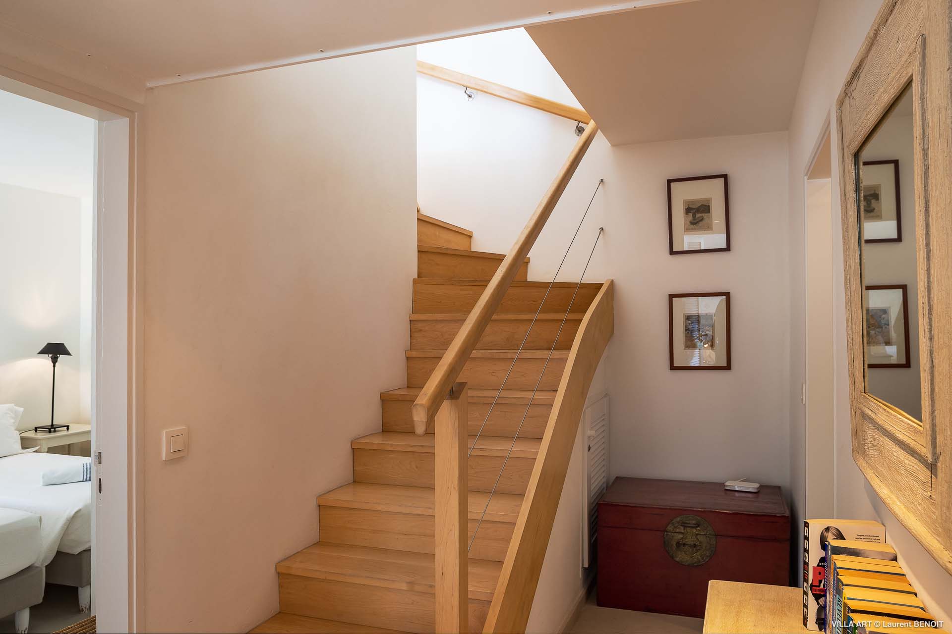 Les chambres sont situées au niveau inférieur et donnent sur un grand deck et la piscine.