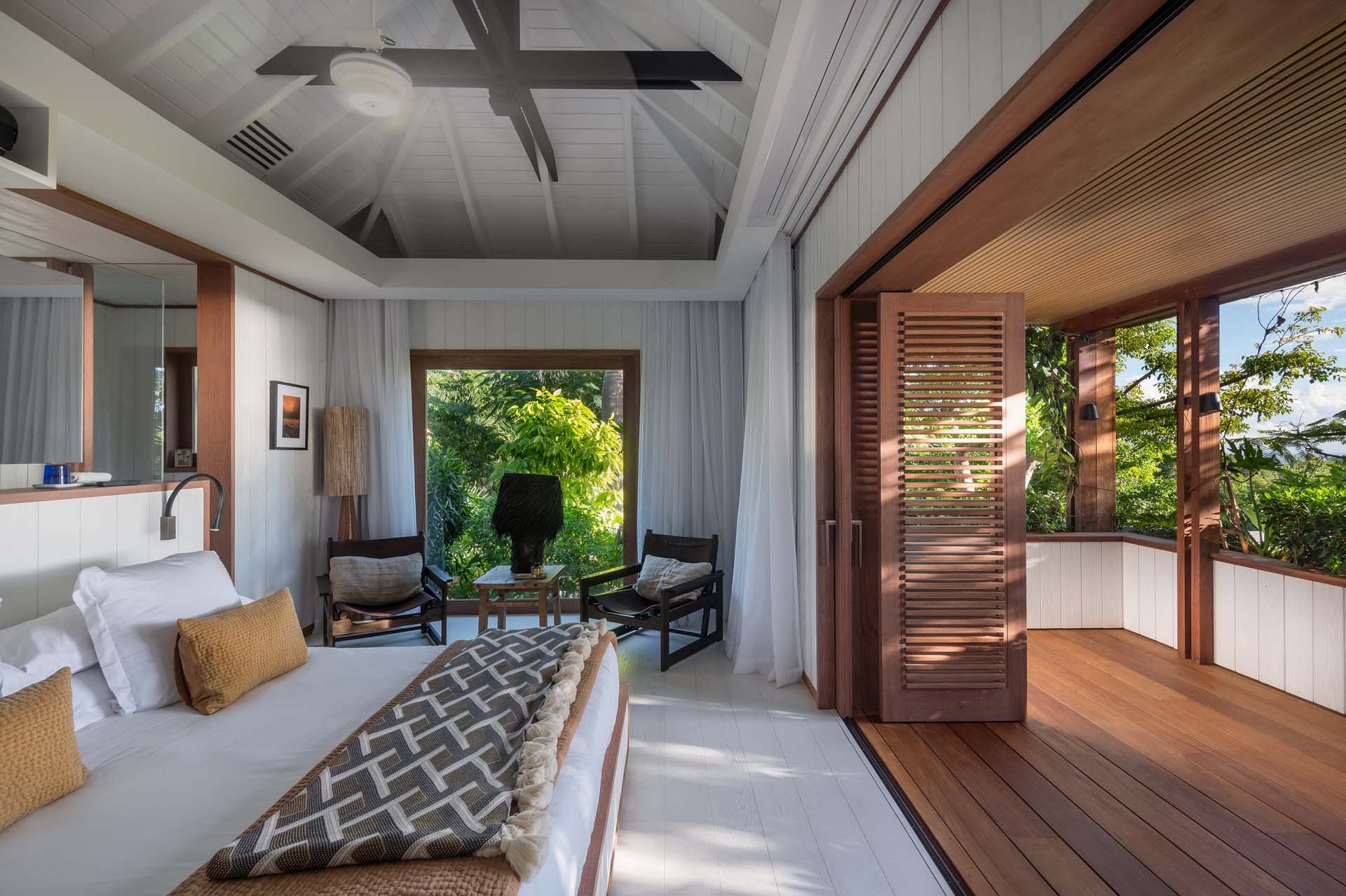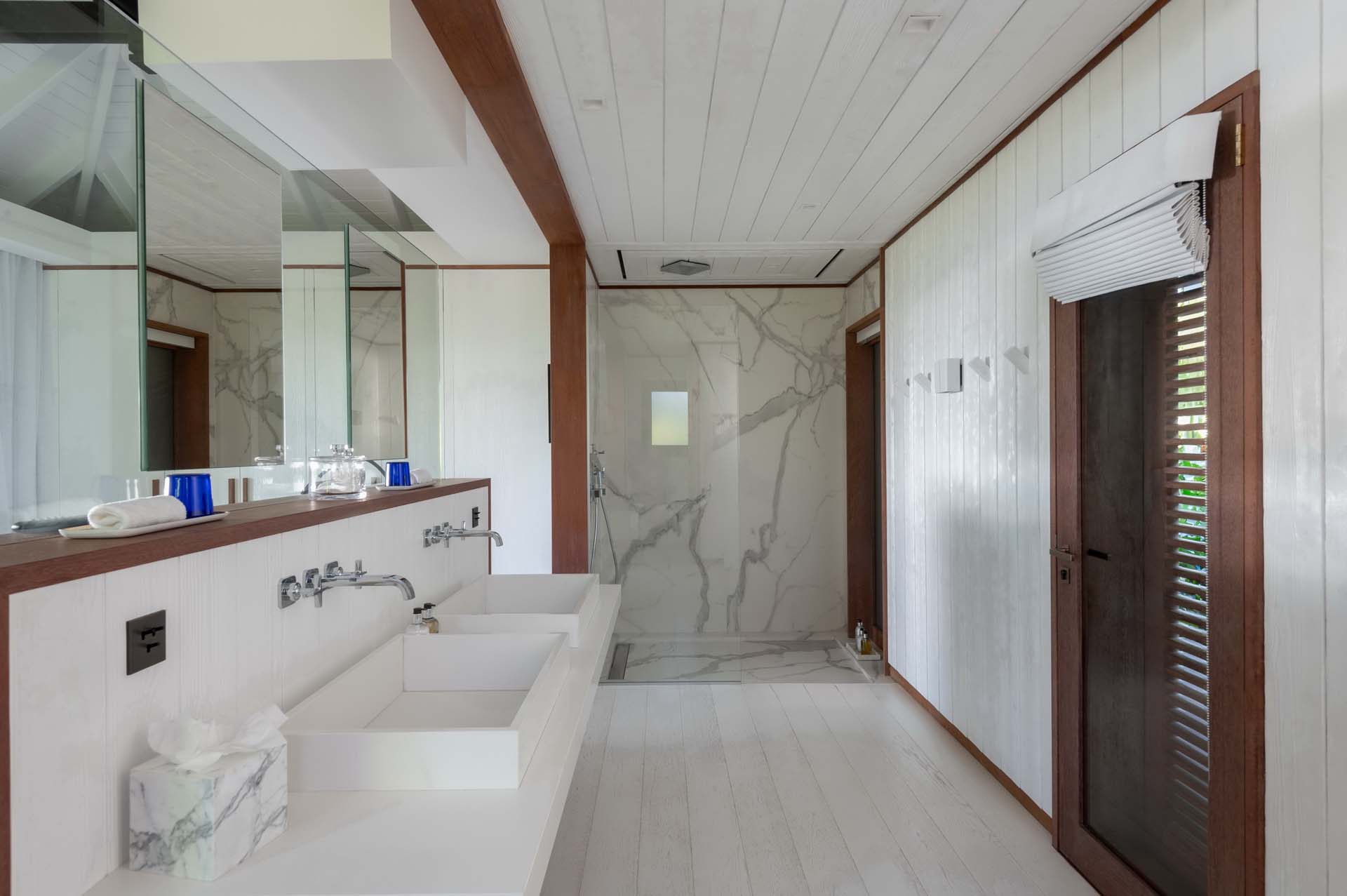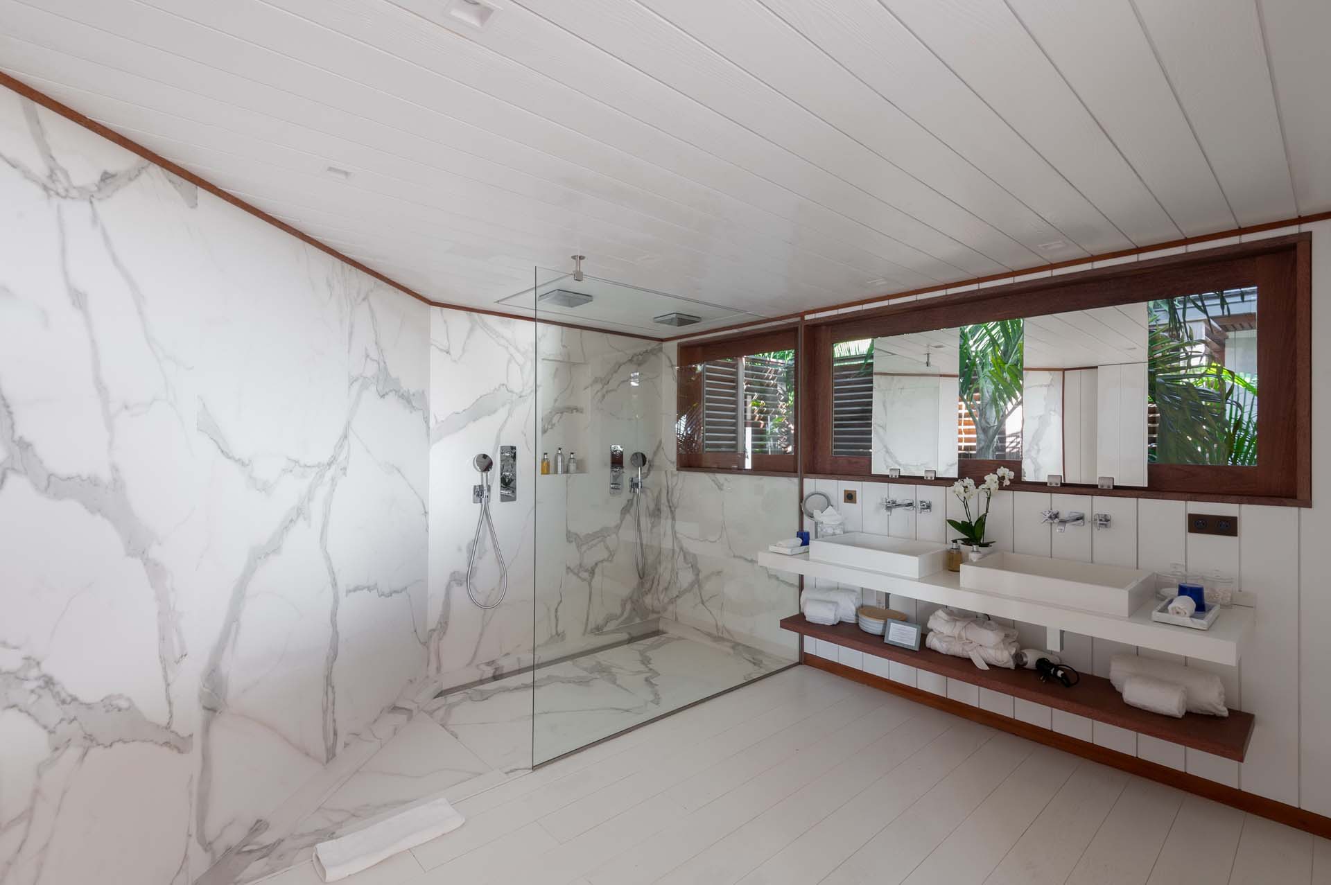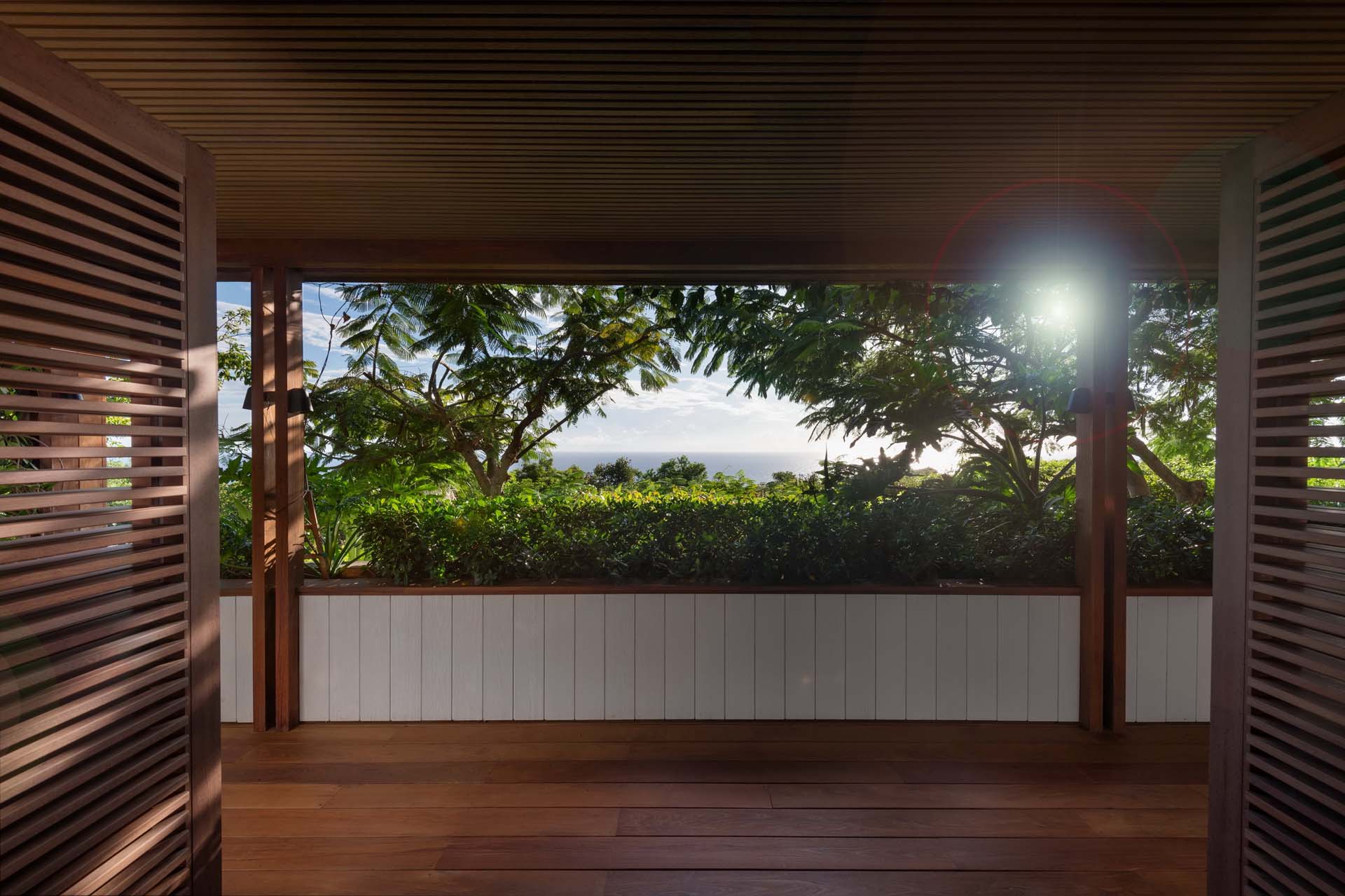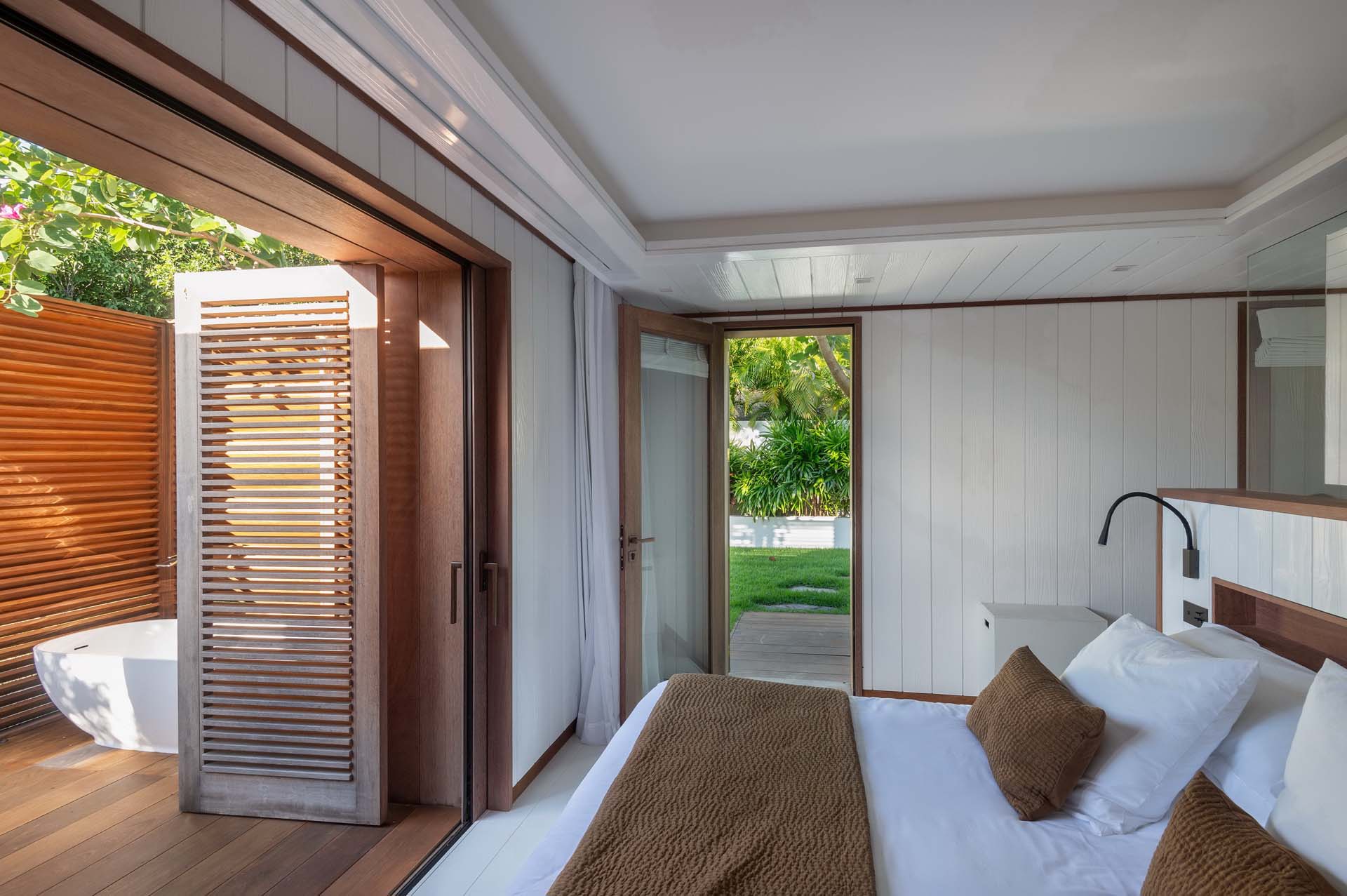 Dans toute la villa, de grandes fenêtres et des portes vitrées laissent entrer la lumière naturelle, créant une atmosphère lumineuse et aérée. Ces fenêtres offrent également une vue panoramique sur l’océan et la nature environnante, fusionnant harmonieusement les espaces intérieurs et extérieurs.