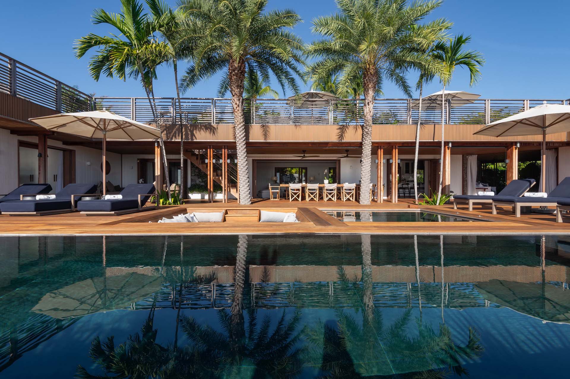 Avec ses six chambres spacieuses, Aura offre un hébergement généreux pour les grands groupes ou les familles. Toutes les chambres sont situées au rez-de-chaussée et entourent la piscine.