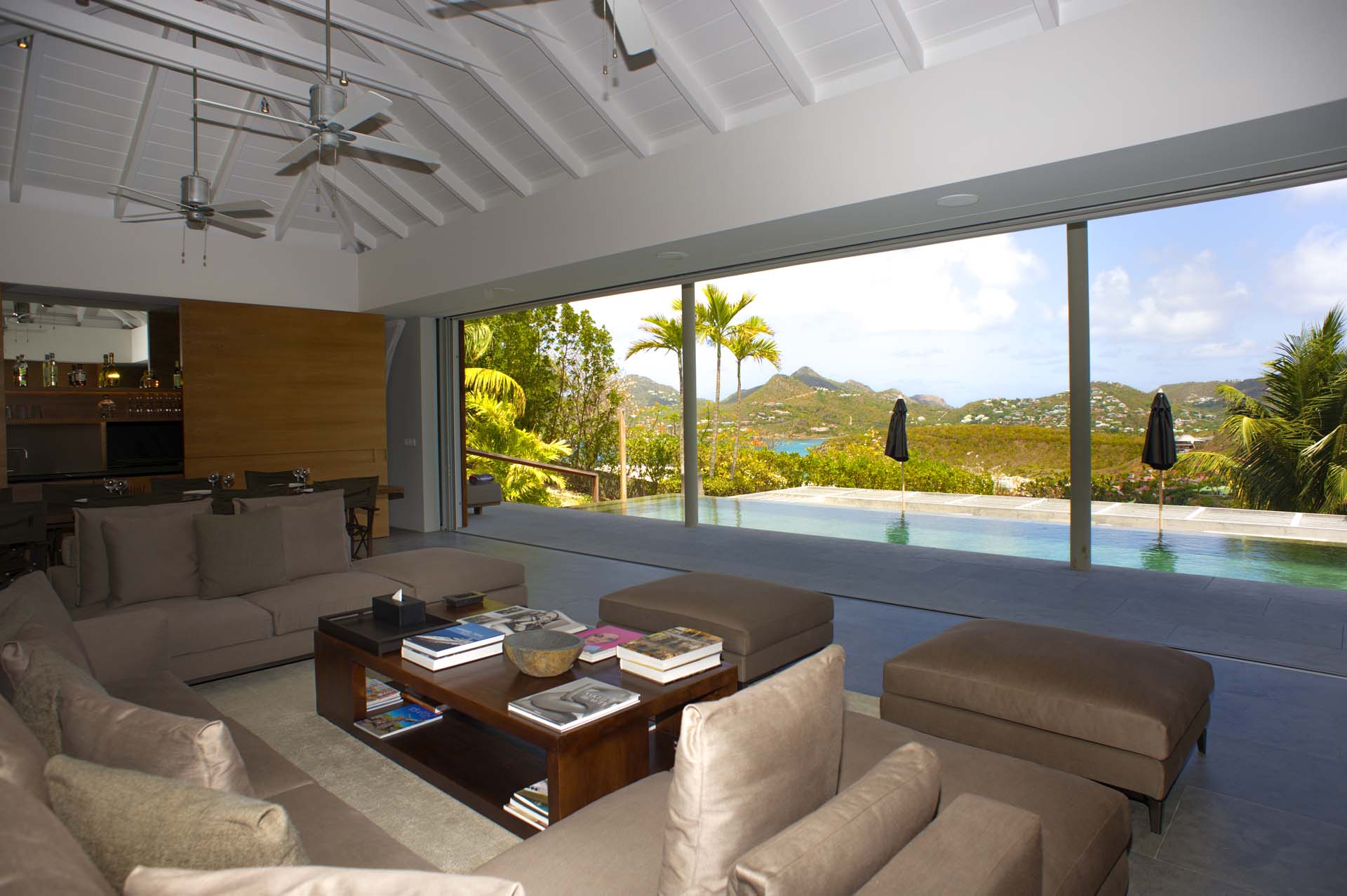 Cette villa offre une vue imprenable sur l’océan et sur le quartier d’Anse des Cayes.