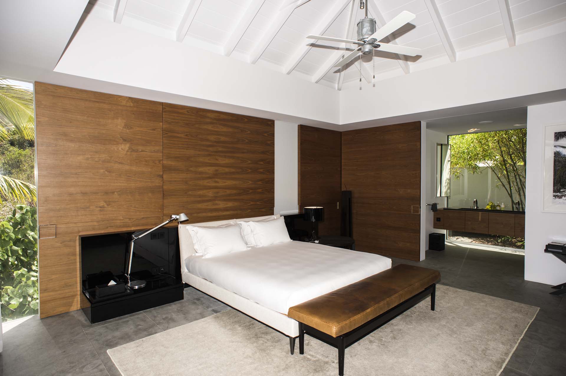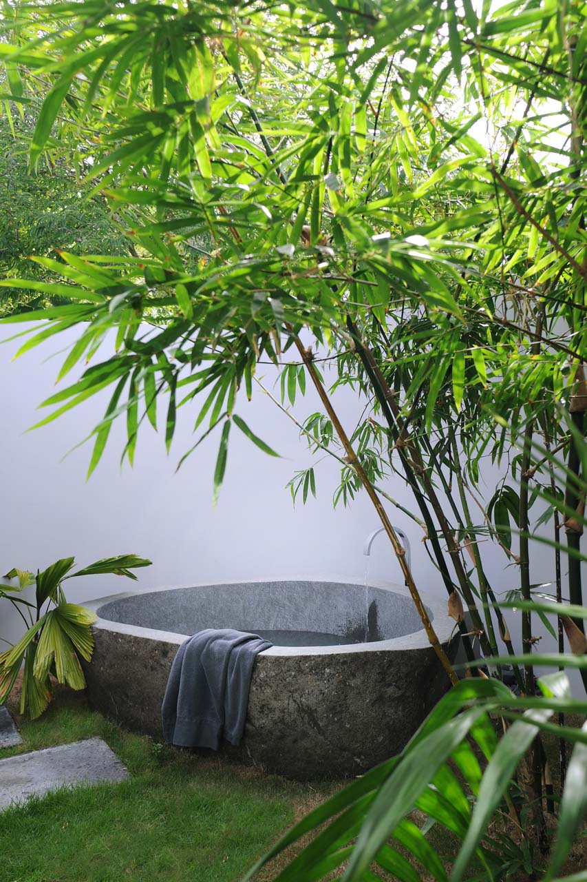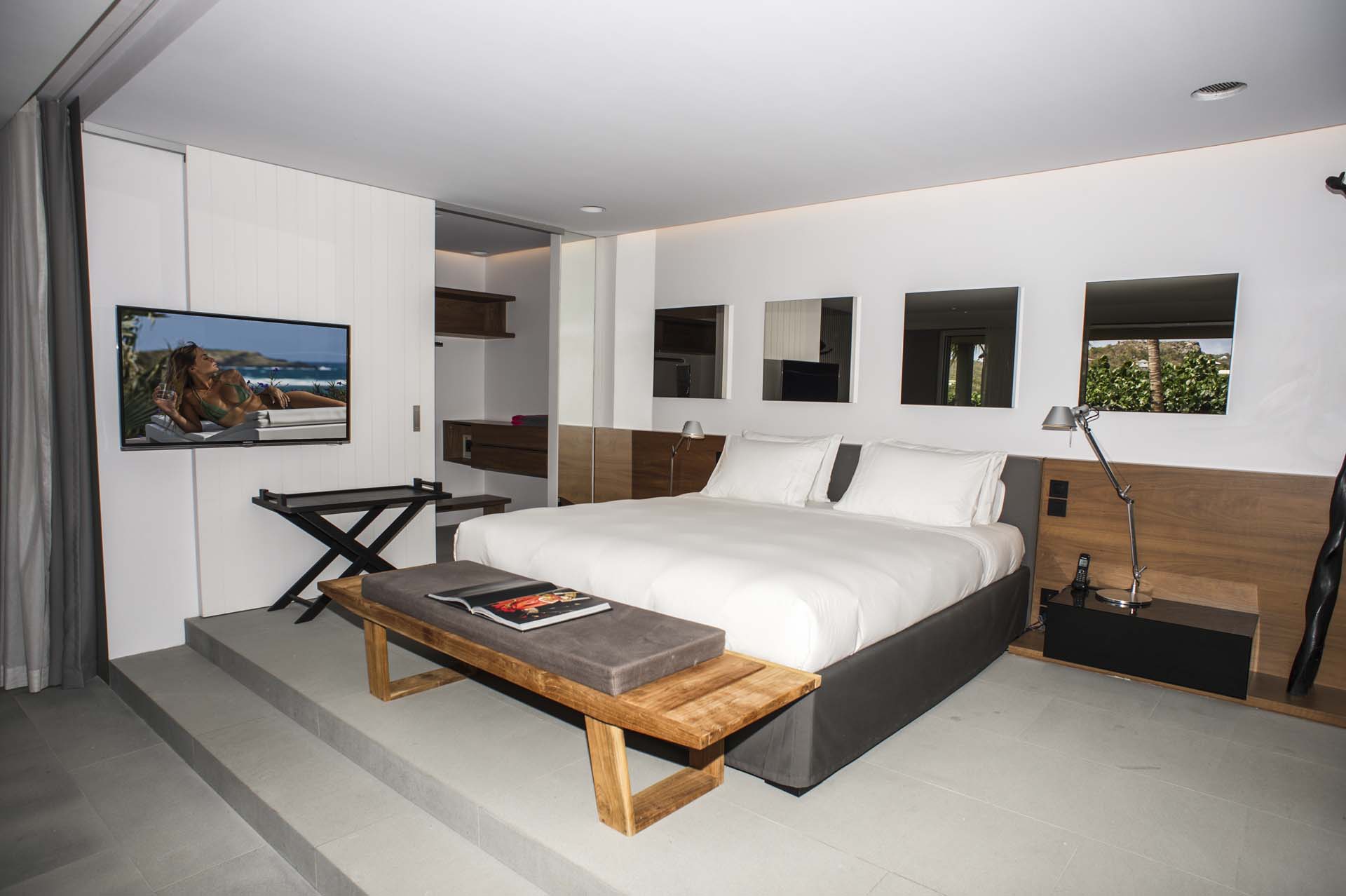 La chambre principale est connectée au salon, celle-ci qui s’ouvre sur la terrasse et sur un jardin privé avec une baignoire qui s’ajoute à la salle de bain intérieure existante.