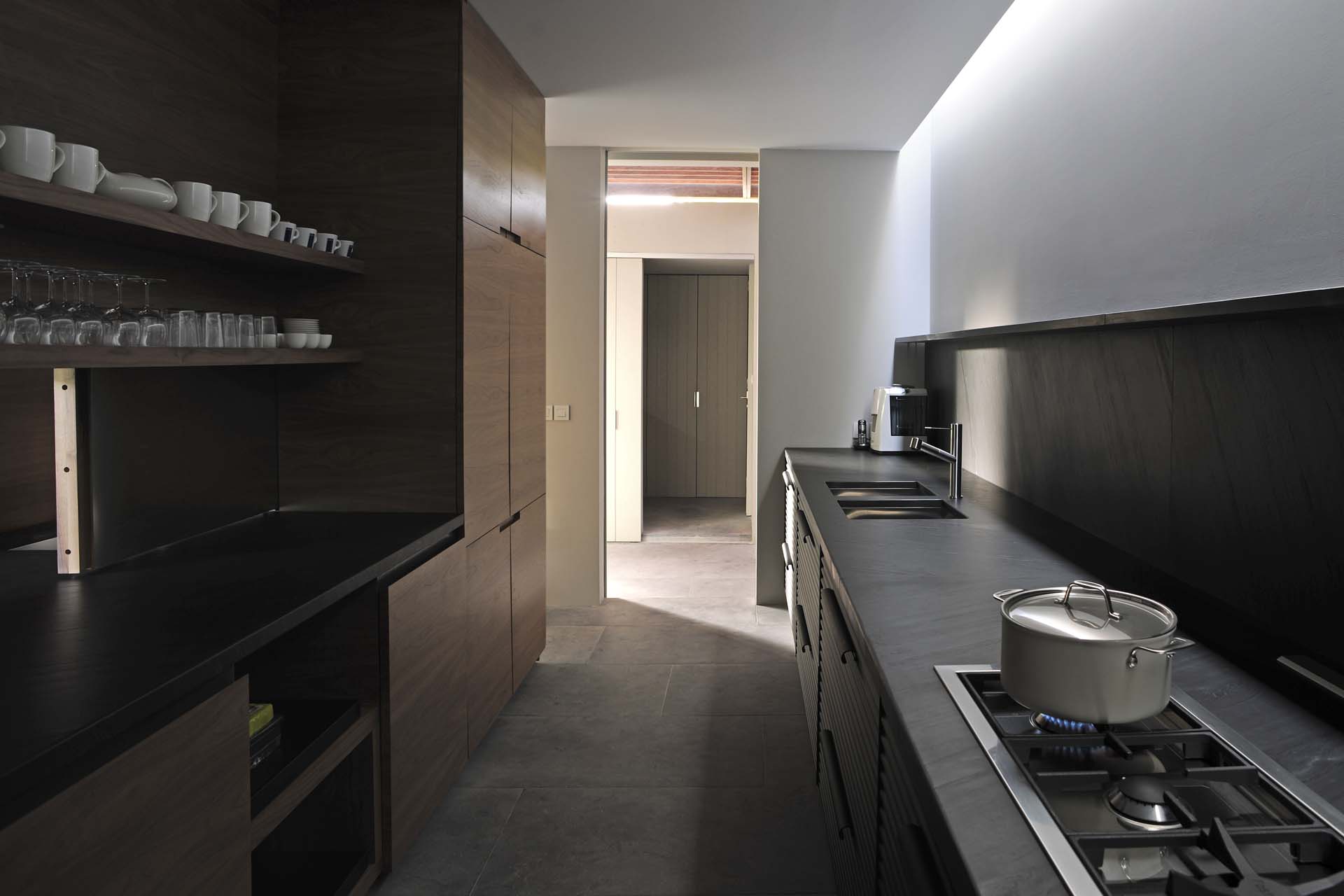 Au niveau principal, la cuisine complètement équipée, le salon et la salle à manger alliant modernité et confort s’ouvrent sur l’espace extérieur.