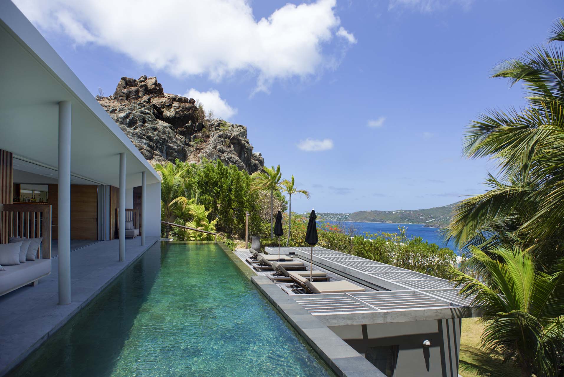 Cette villa offre une vue imprenable sur l’océan et sur le quartier d’Anse des Cayes.