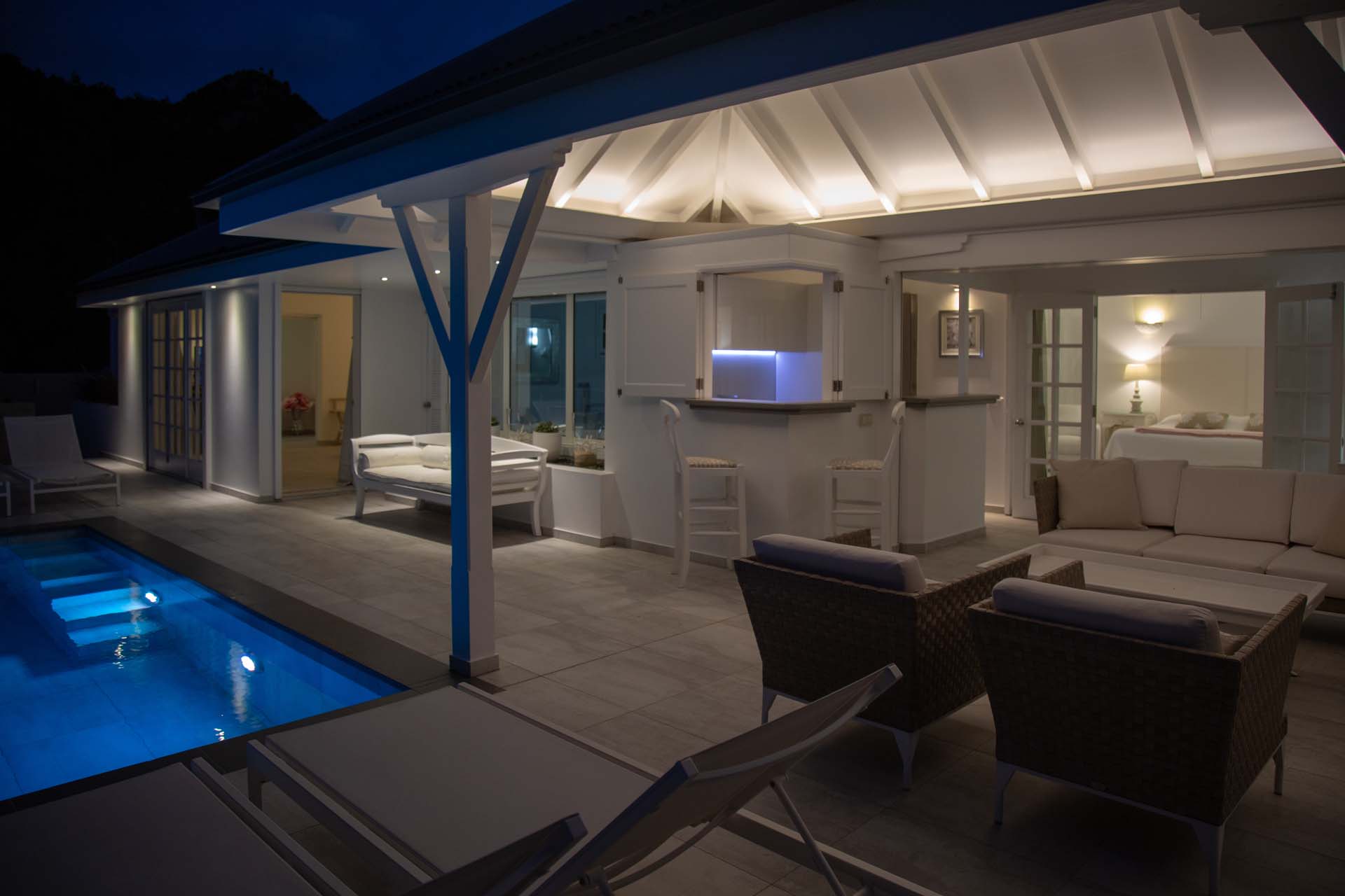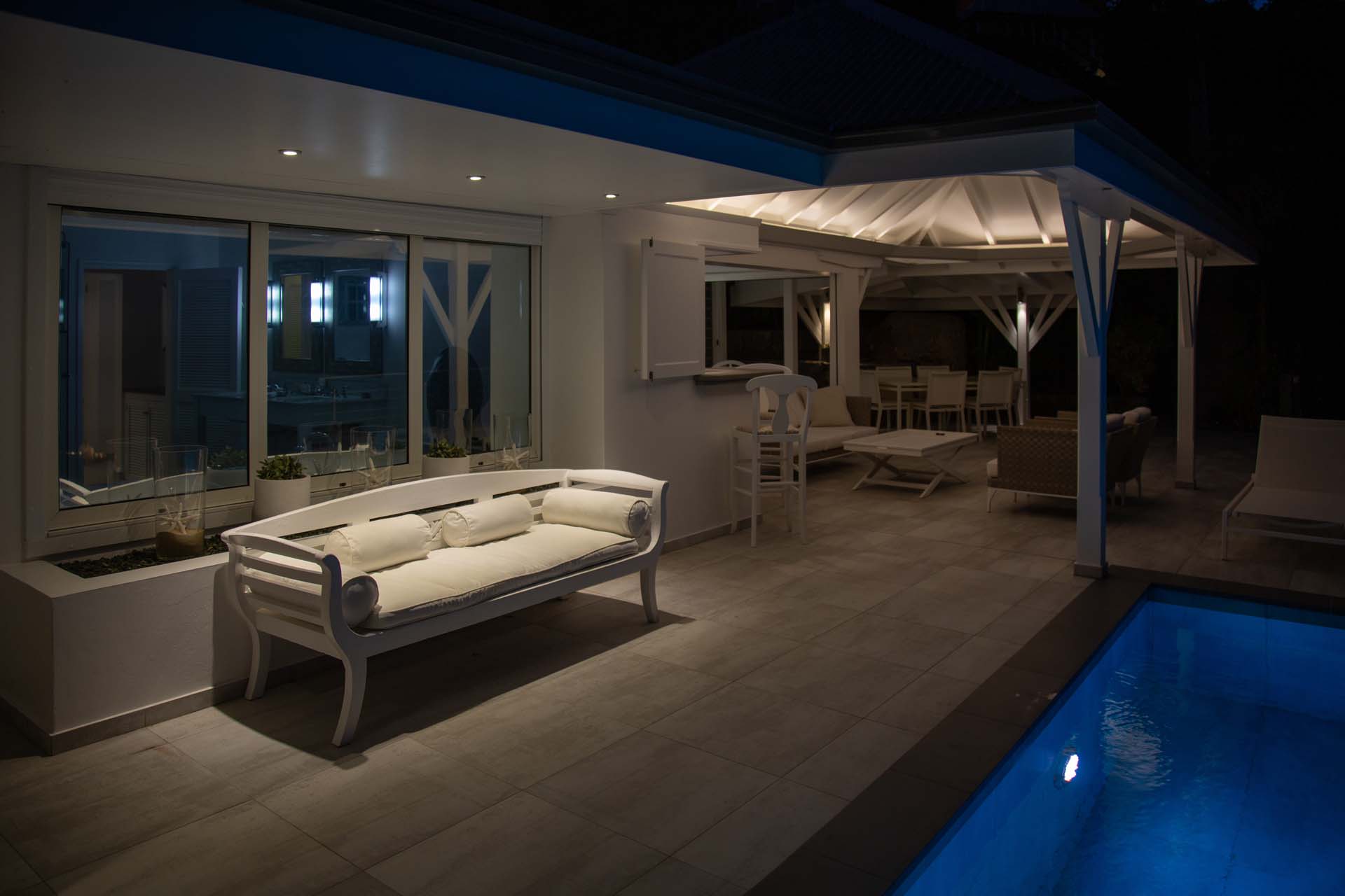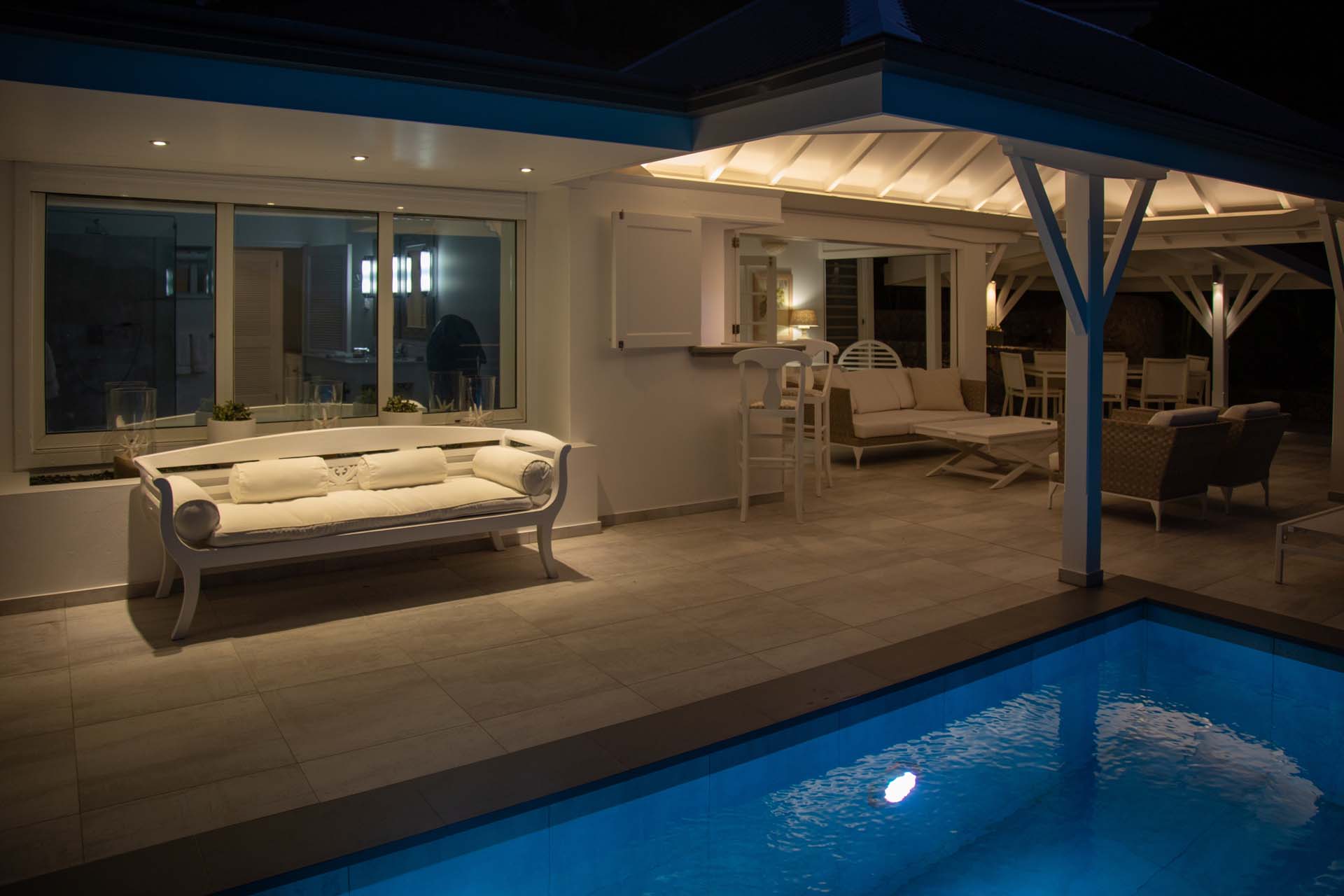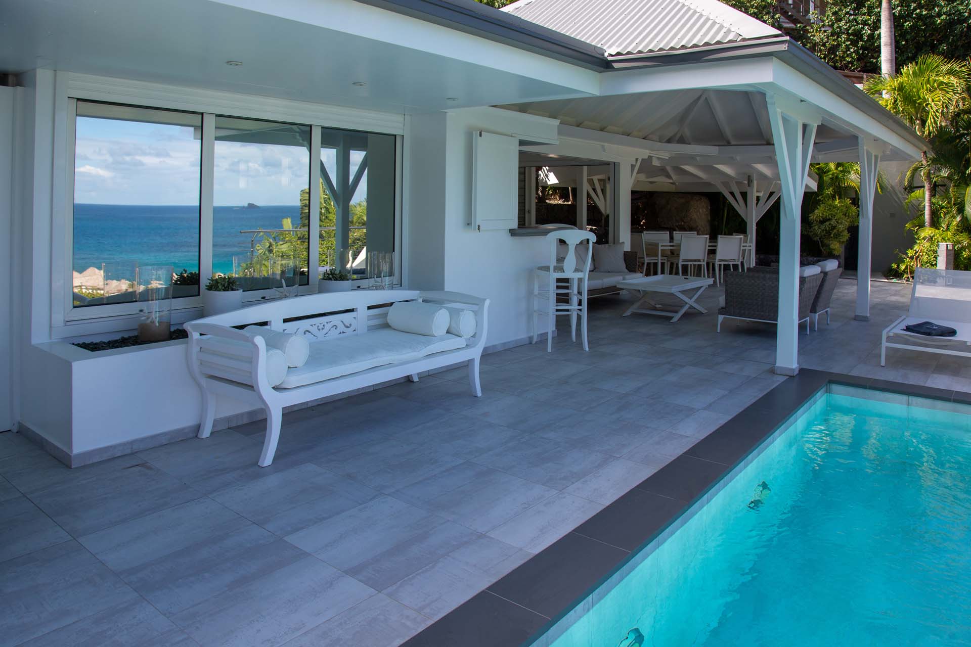 Le grand salon est ouvert sur la terrasse et la piscine.
