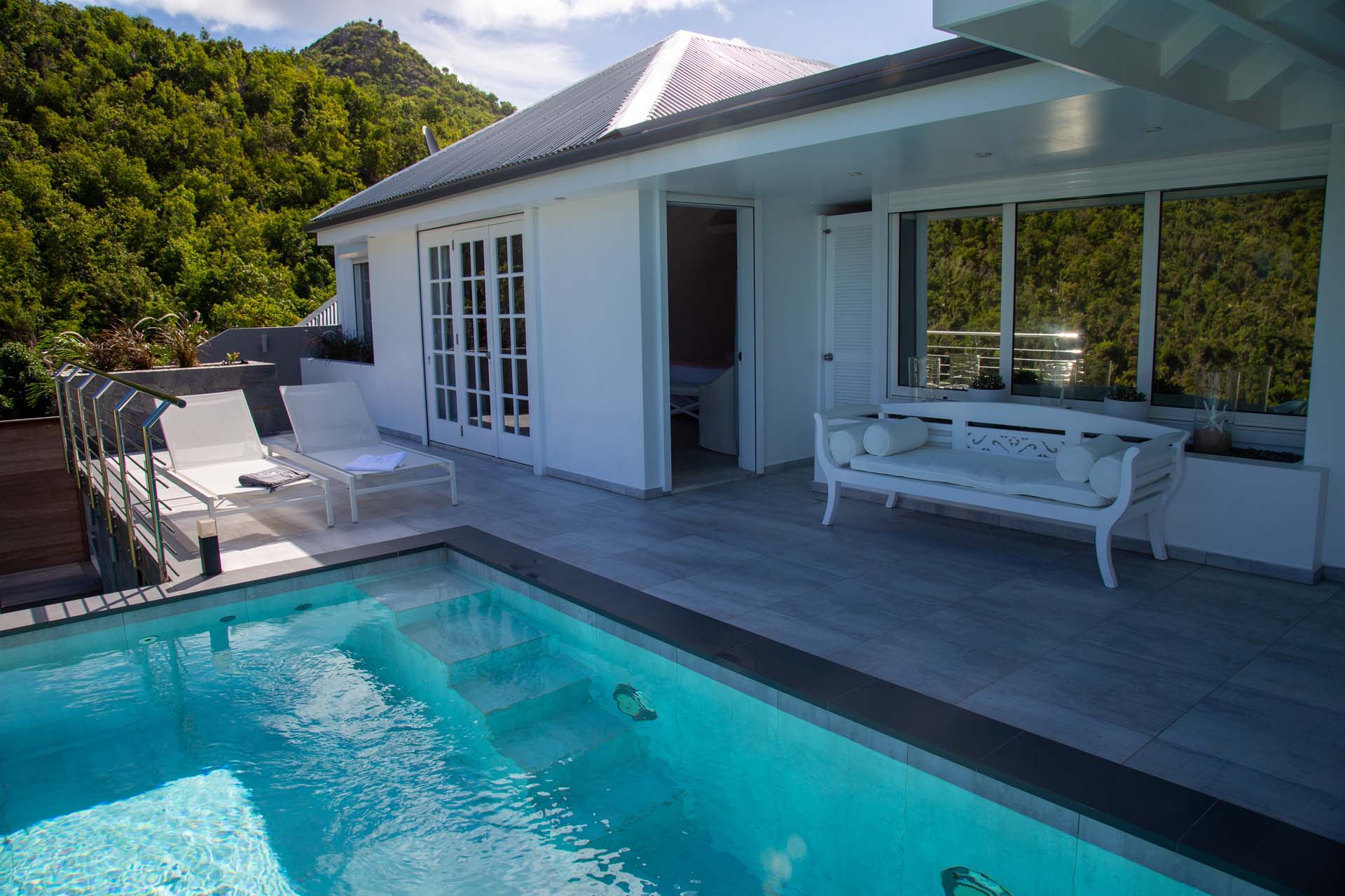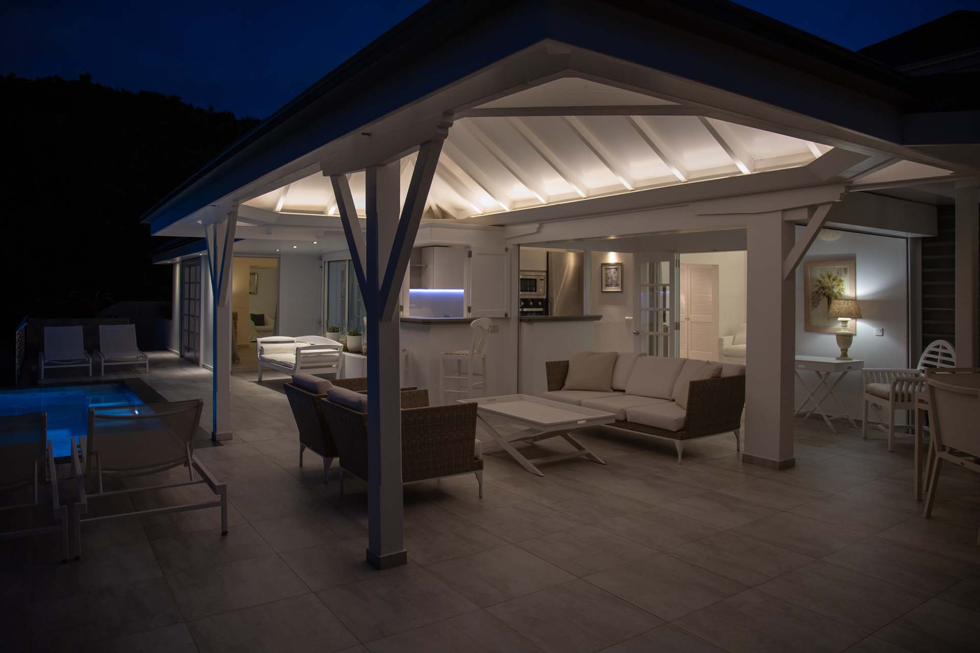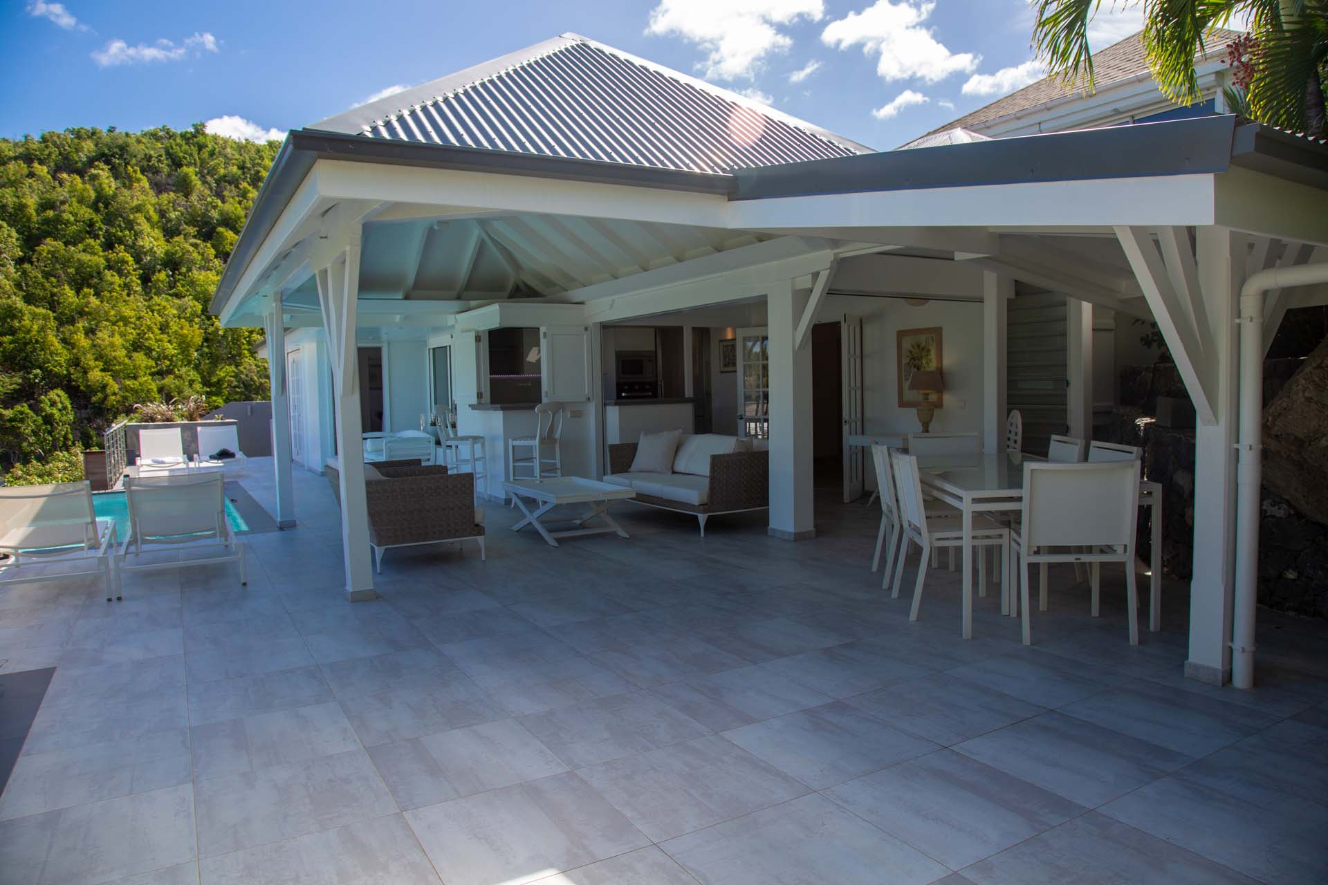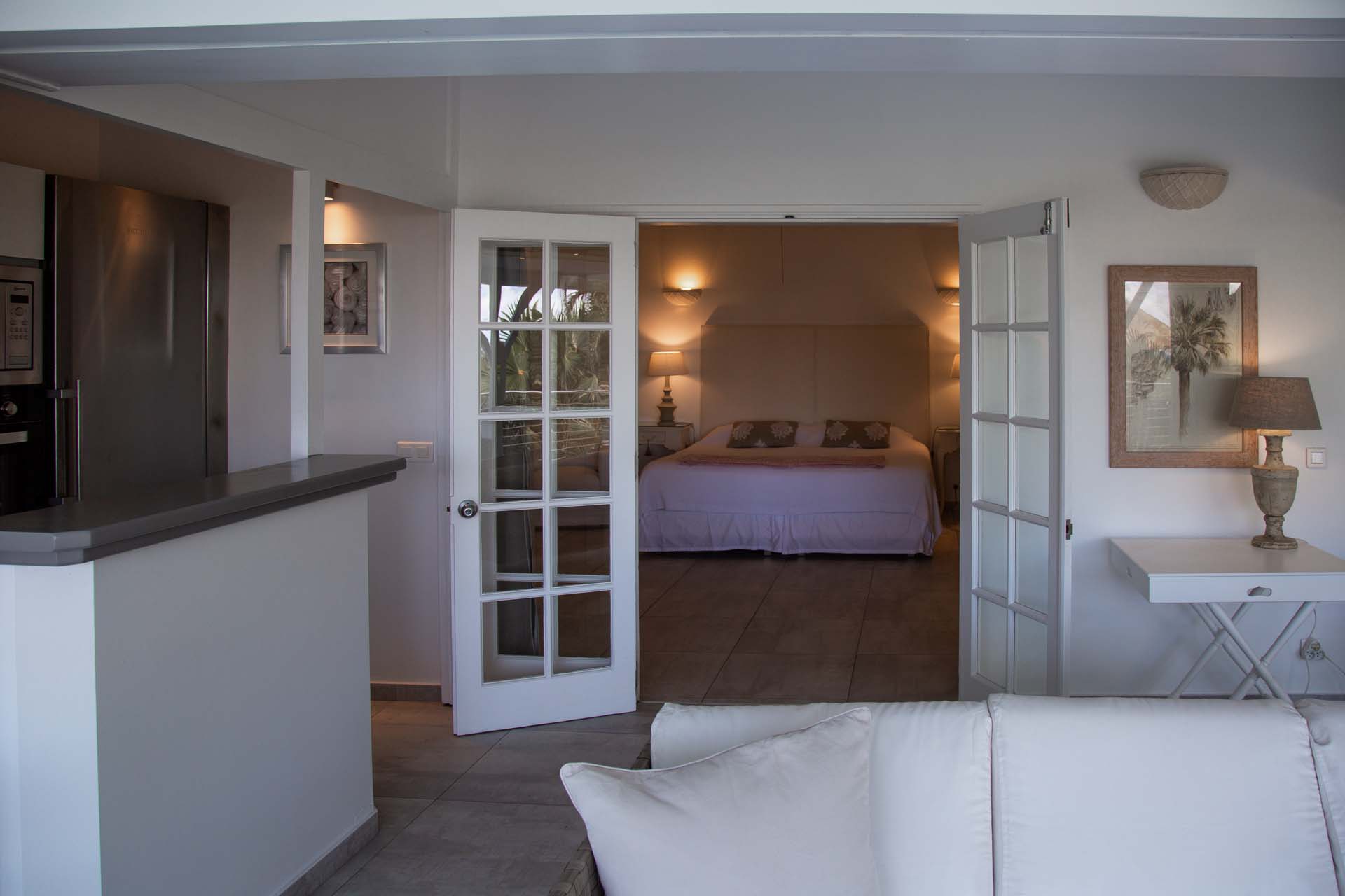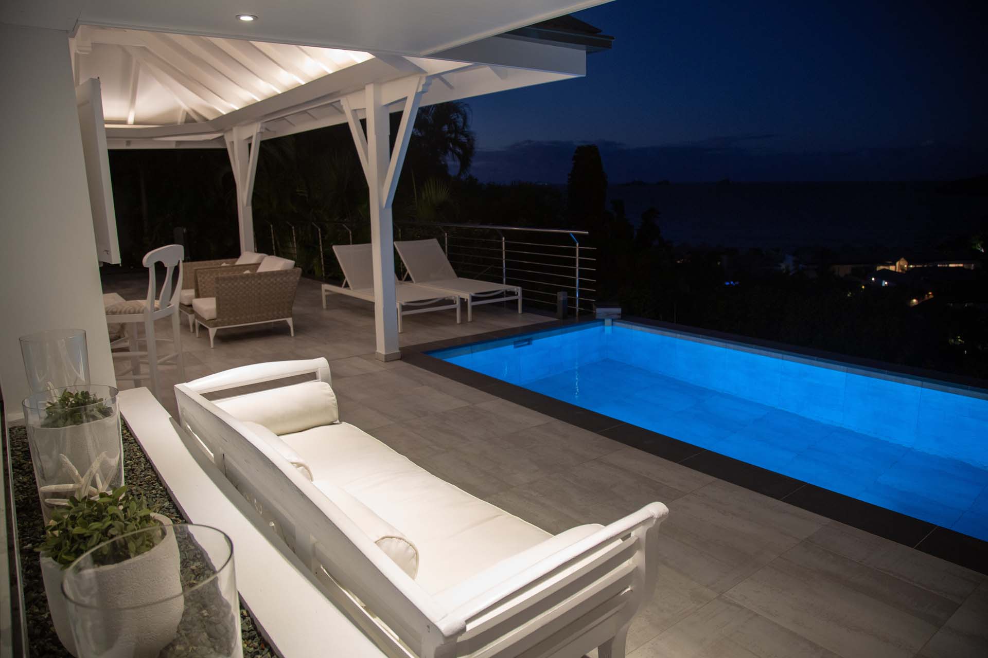 Le grand salon est ouvert sur la terrasse et la piscine.