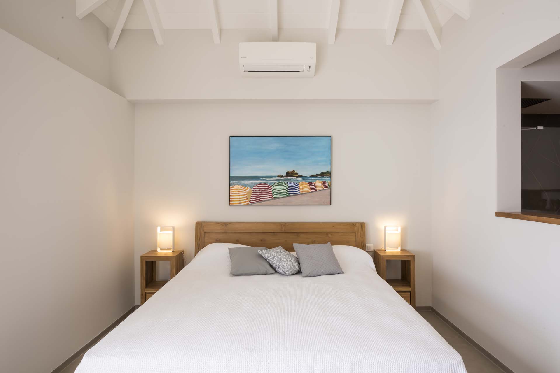 Les deux chambres situées à l’étage, accessibles par un escalier intérieur, s’ouvrent sur une terrasse idéale pour admirer le coucher de soleil.