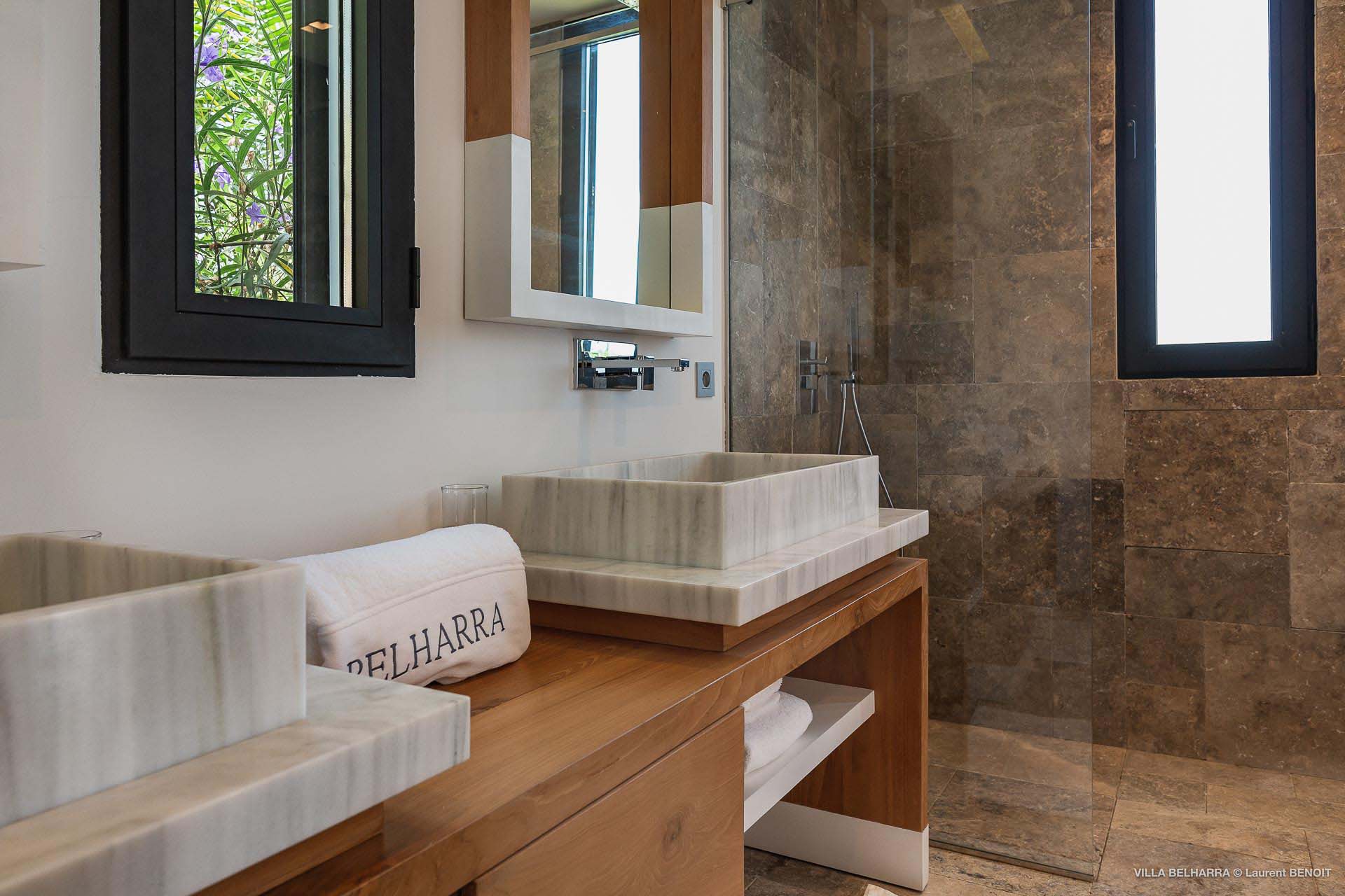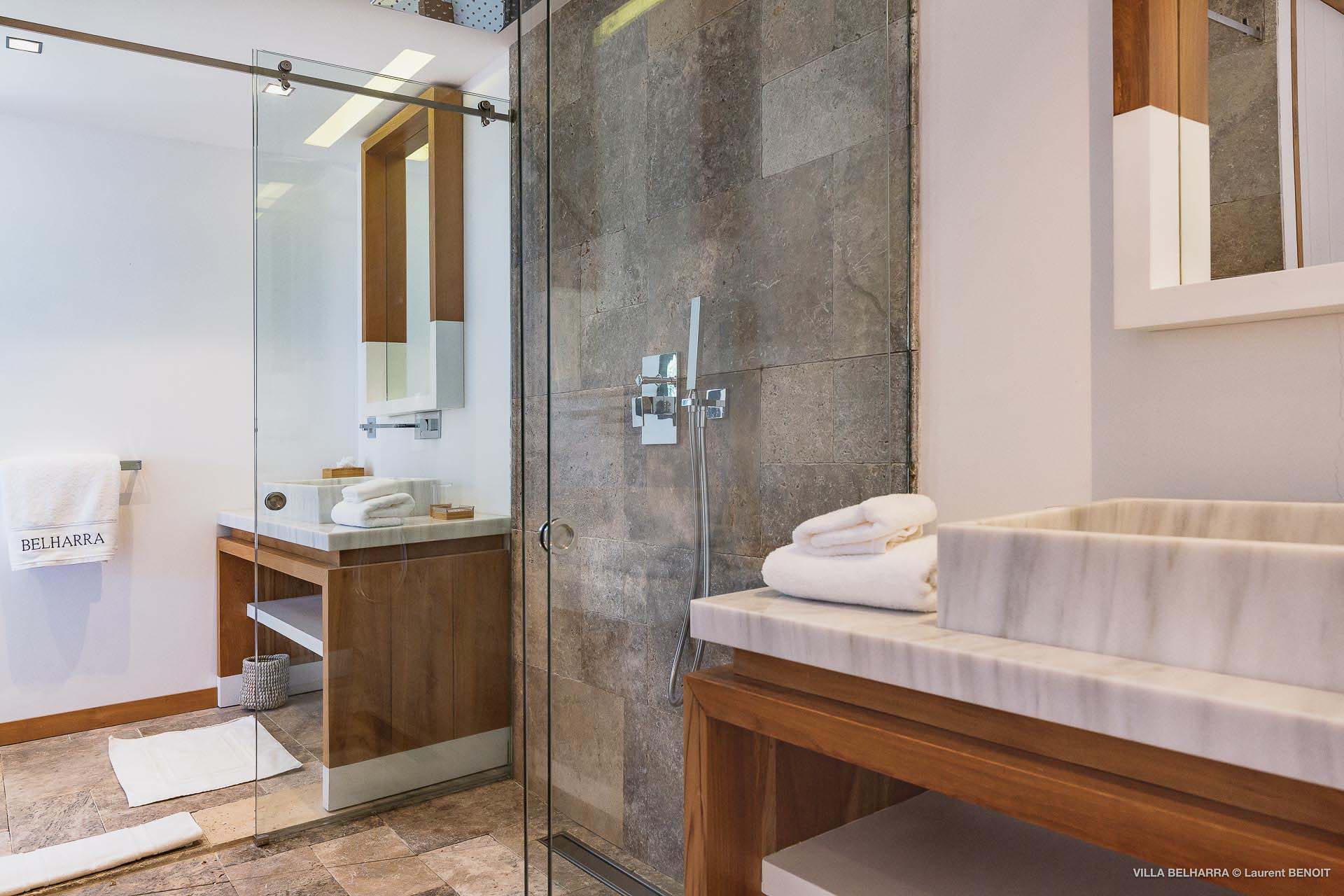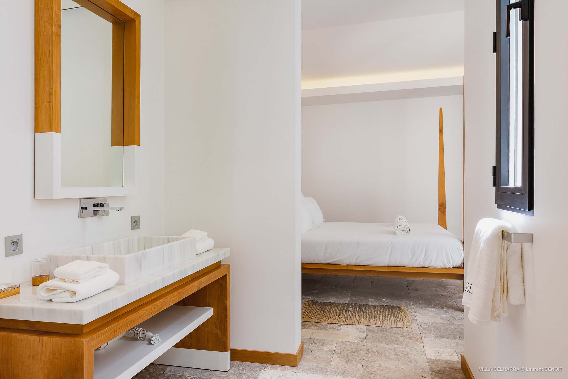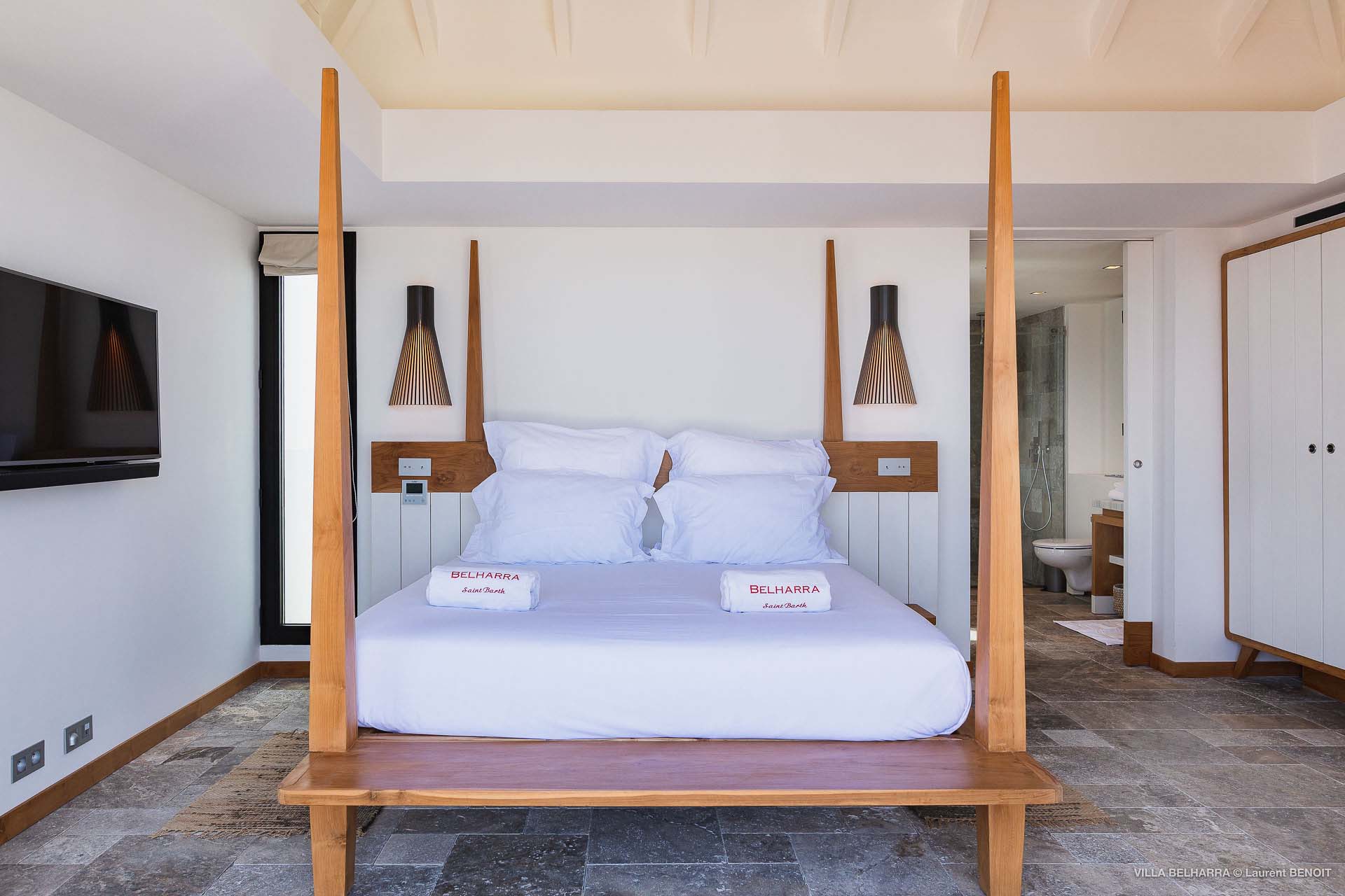 Les deux premières chambres se situent à l’étage principal de la villa avec accès sur la terrasse. Les deux autres chambres sont à l’étage inférieur : l’une avec terrasse privée avec vue sur l’étang et l’océan, la dernière sans vue, mais bénéficiant d’un jacuzzi.