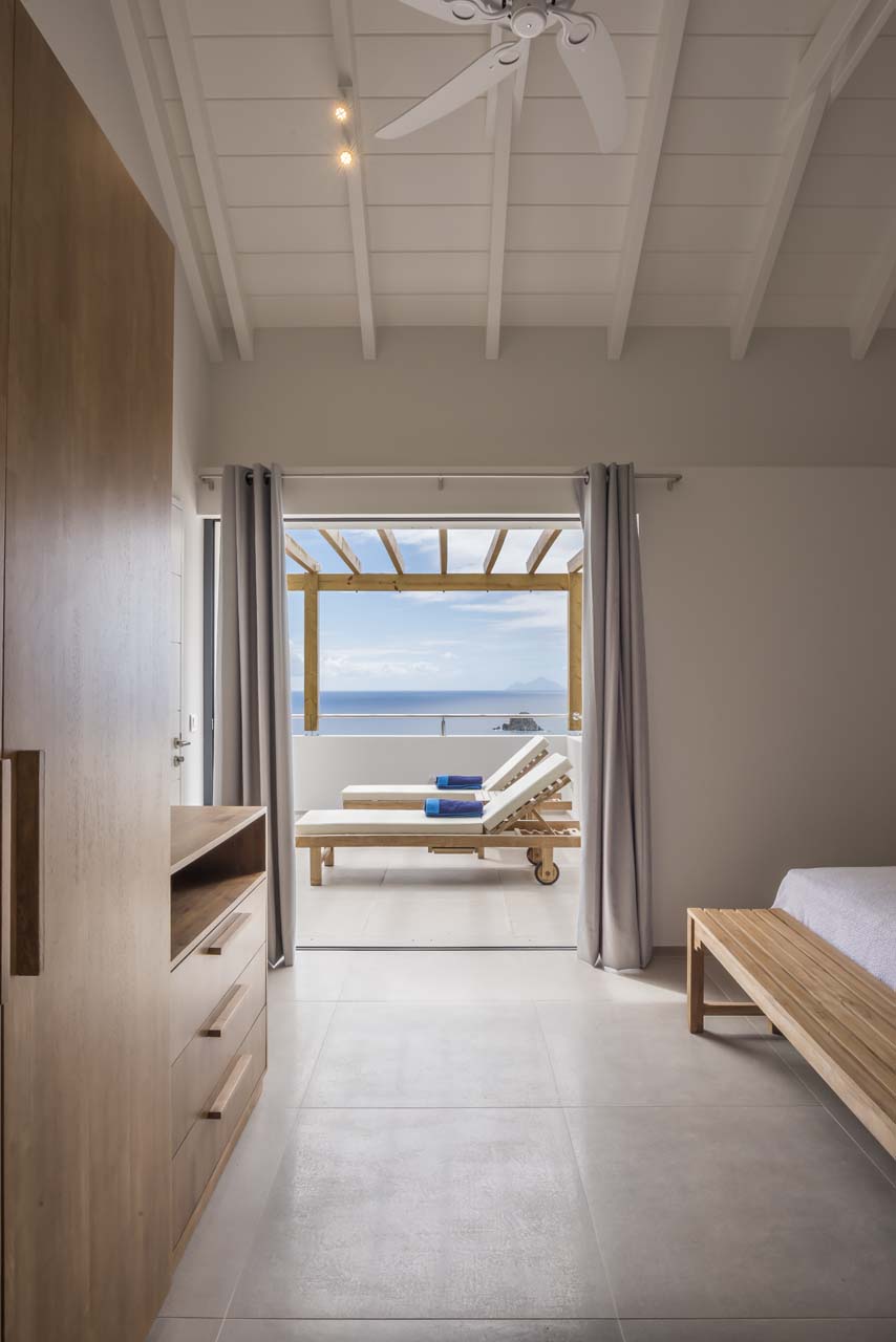 Les deux chambres situées à l’étage, accessibles par un escalier intérieur, s’ouvrent sur une terrasse idéale pour admirer le coucher de soleil.