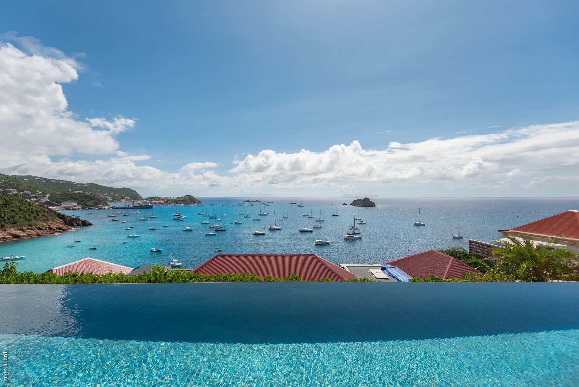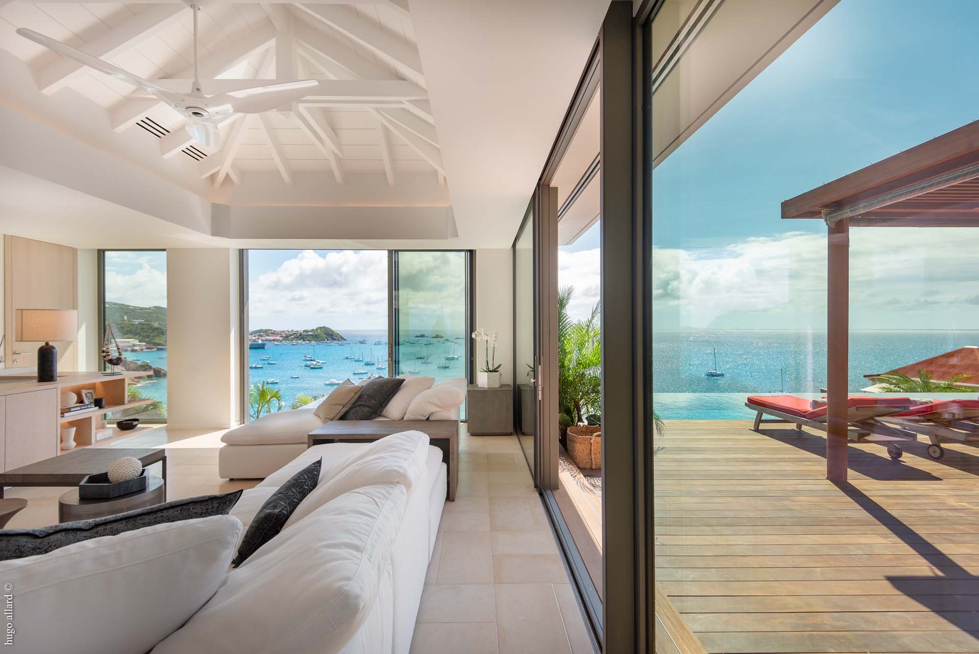 Idéalement située, la villa Bianca offre une vue à couper le souffle sur le charmant quartier de Corossol et le port animé de Gustavia.