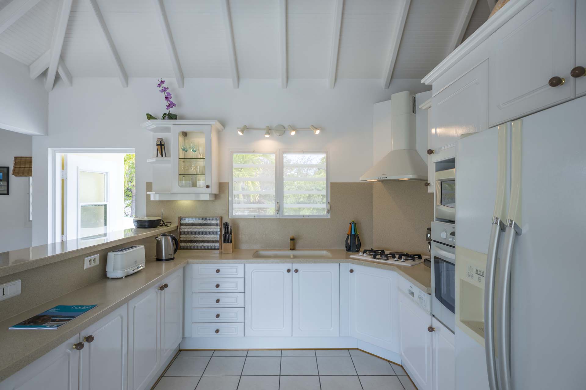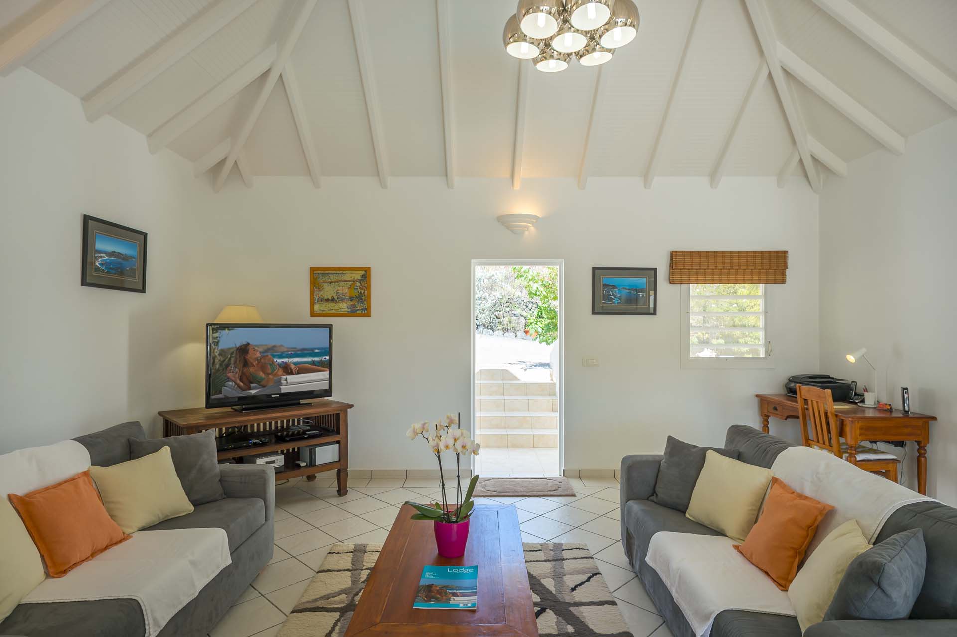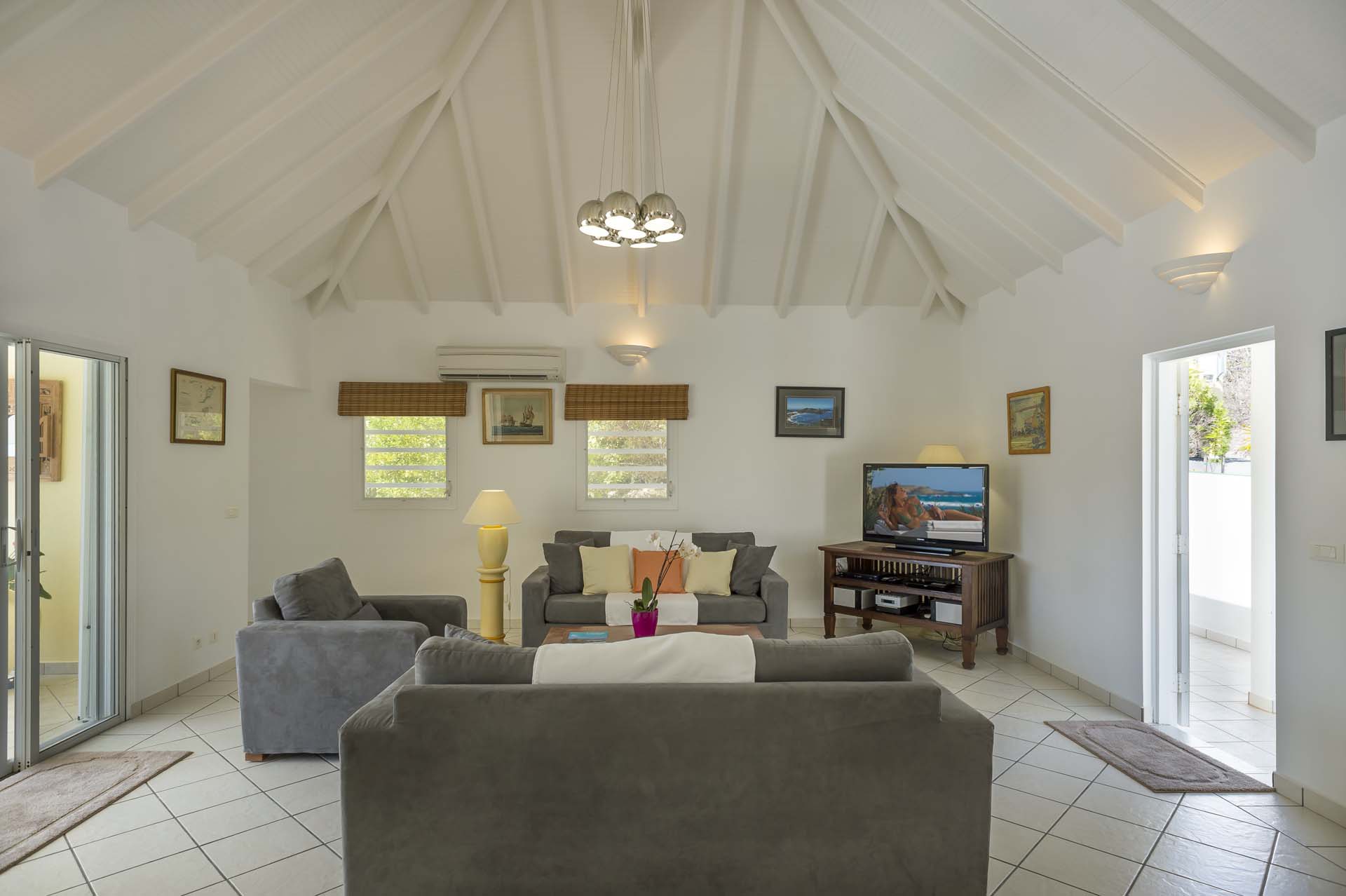 Privée, la piscine et la terrasse ont donne sur la baie de Saint Jean et ses collines.