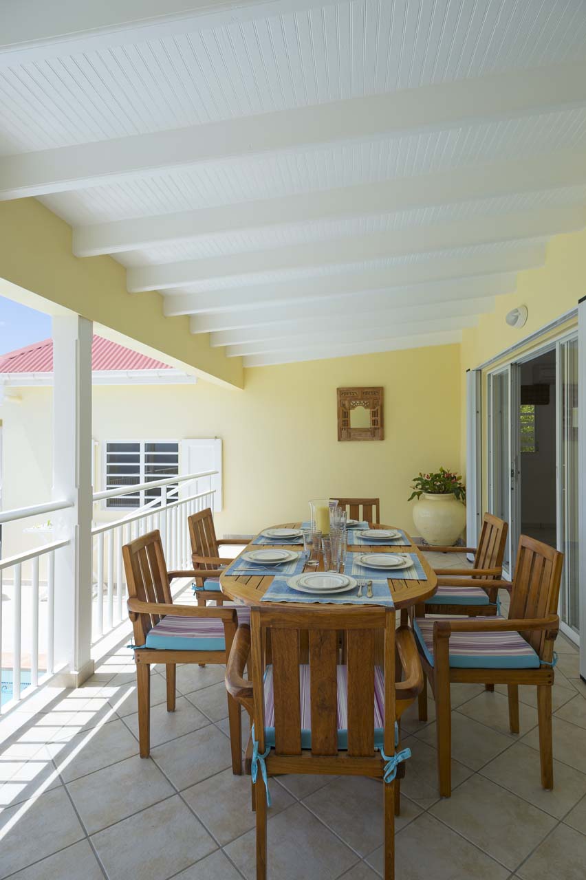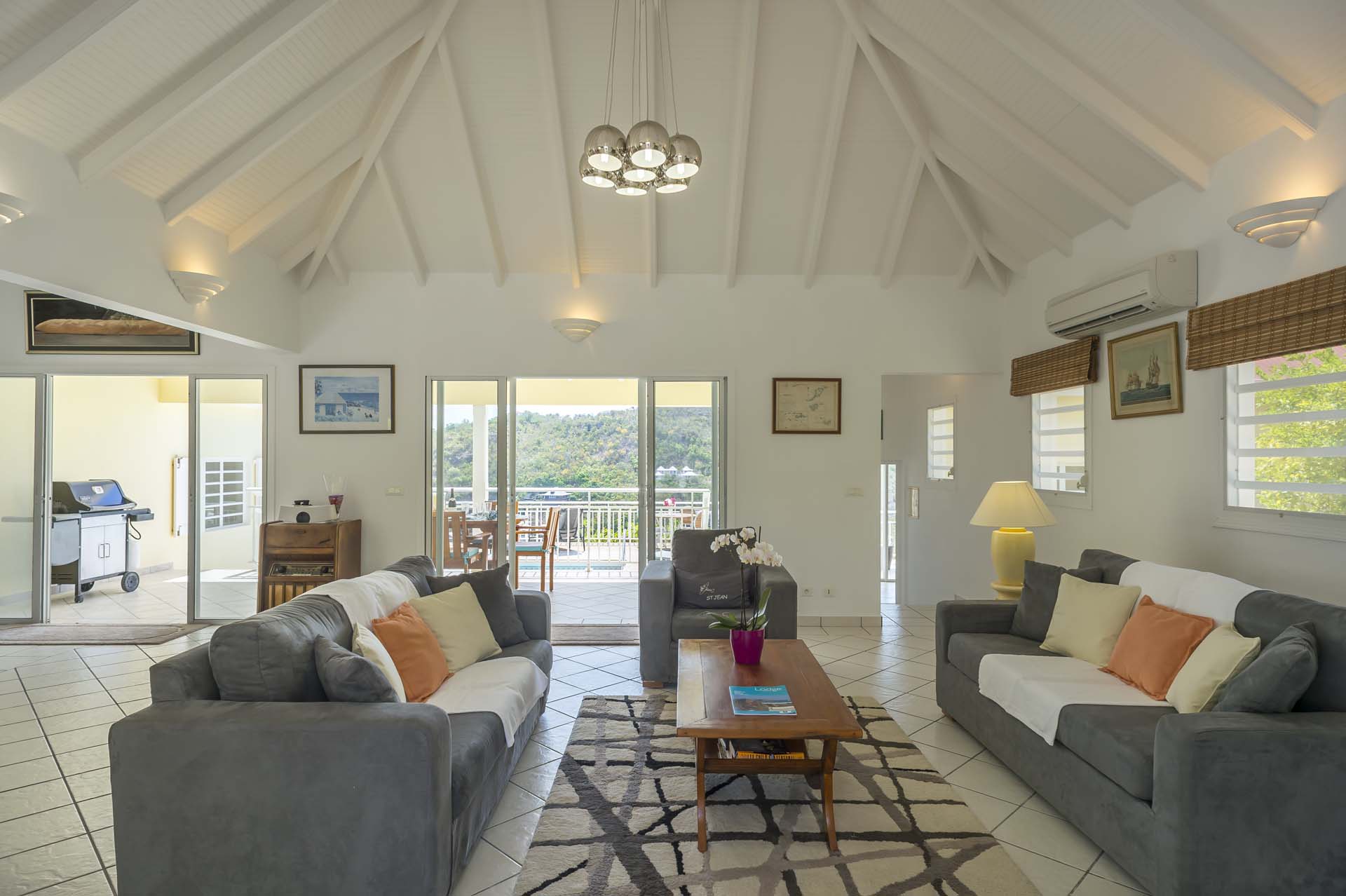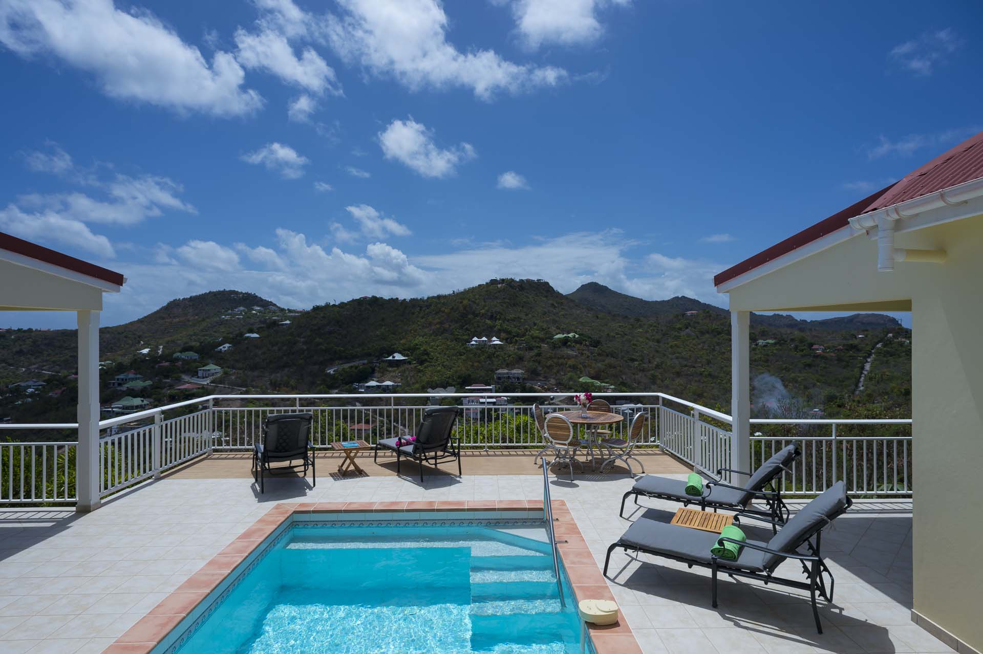 Privée, la piscine et la terrasse ont donne sur la baie de Saint Jean et ses collines.