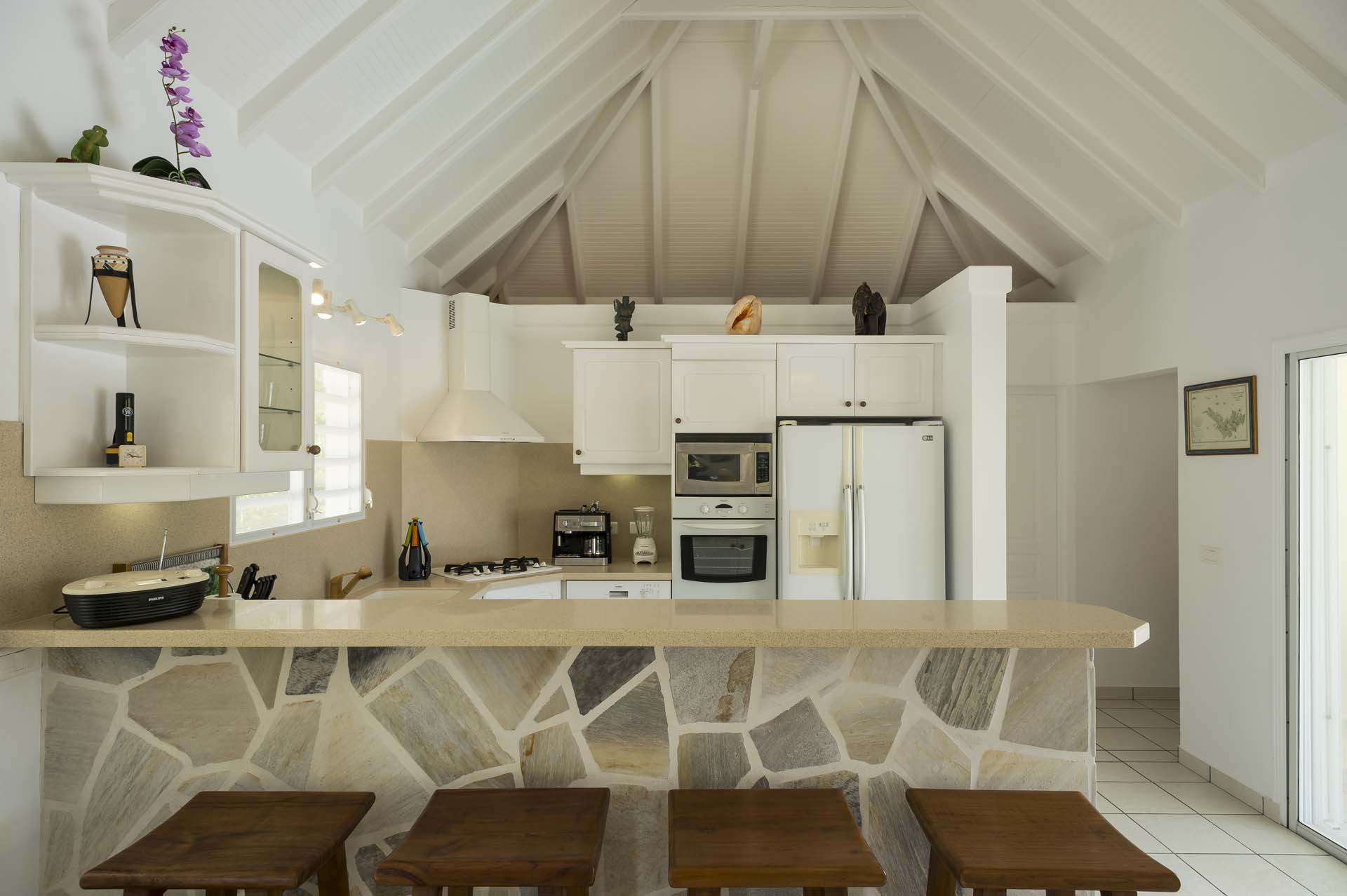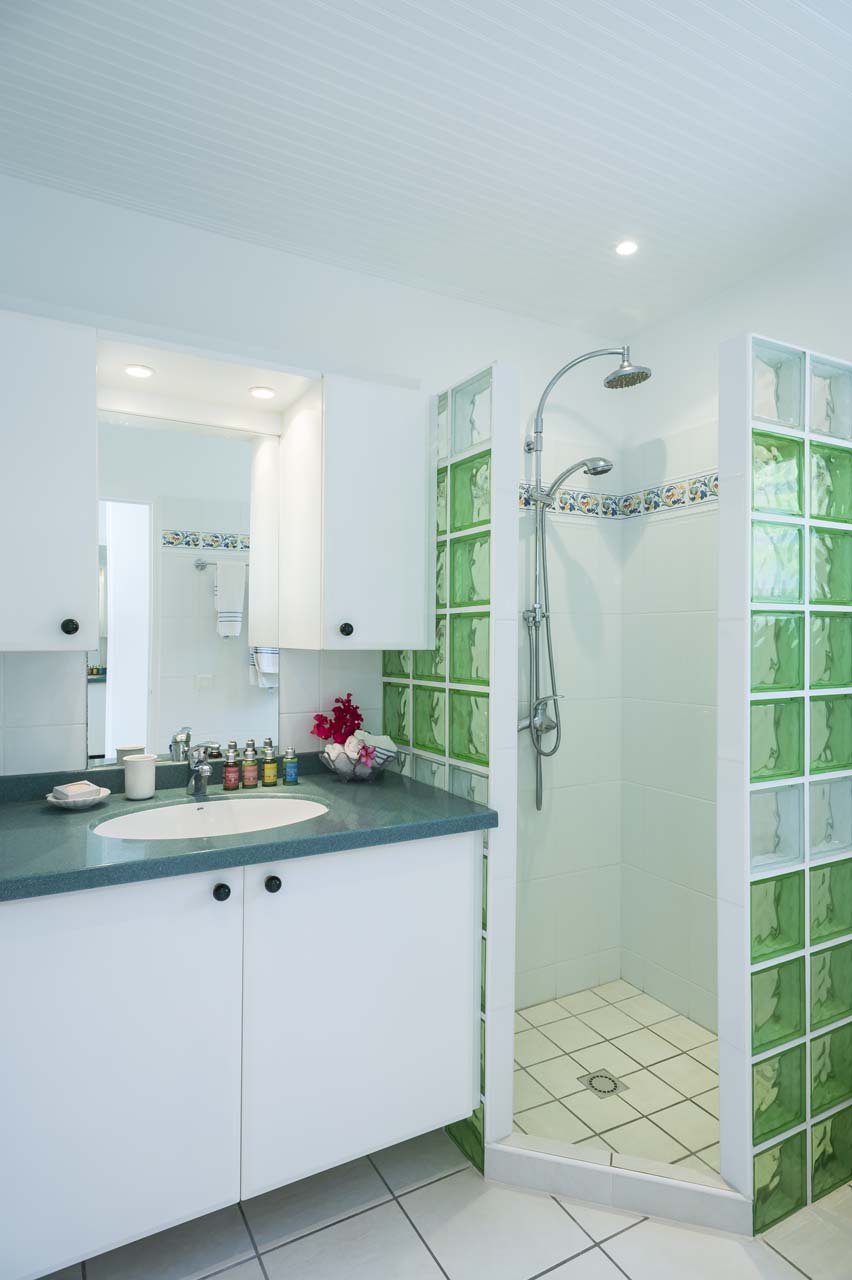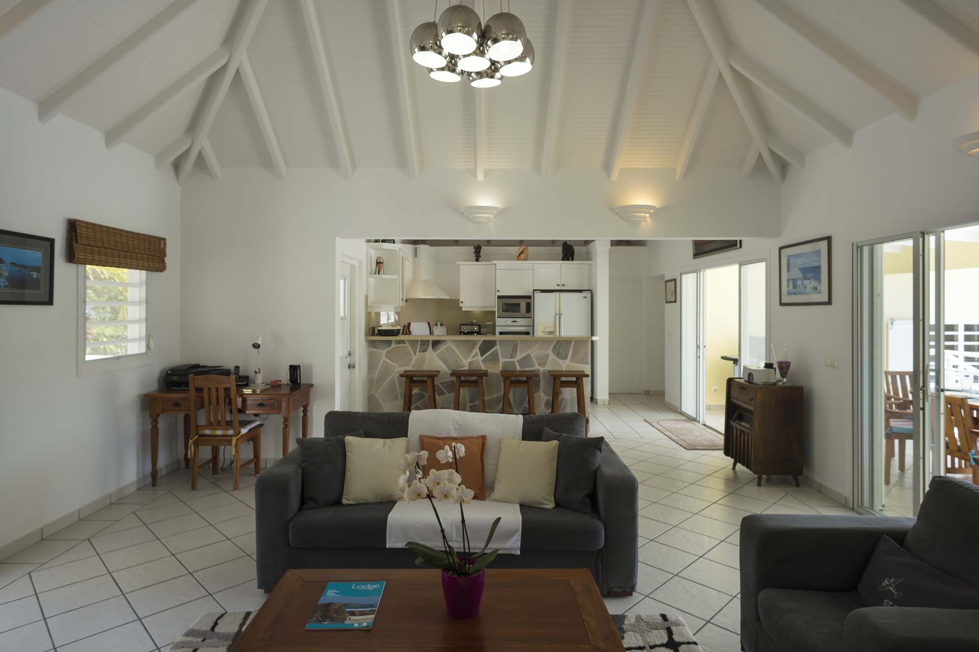 Privée, la piscine et la terrasse ont donne sur la baie de Saint Jean et ses collines.