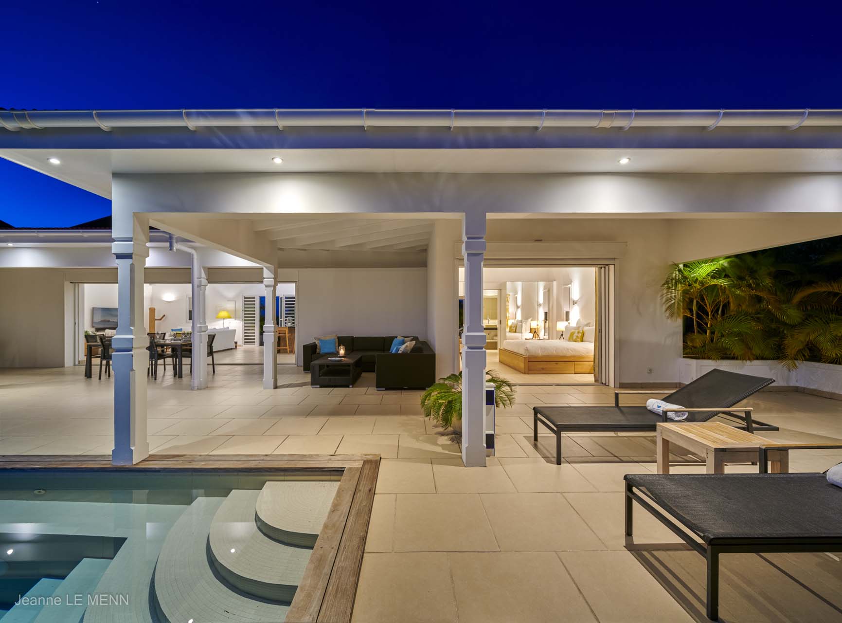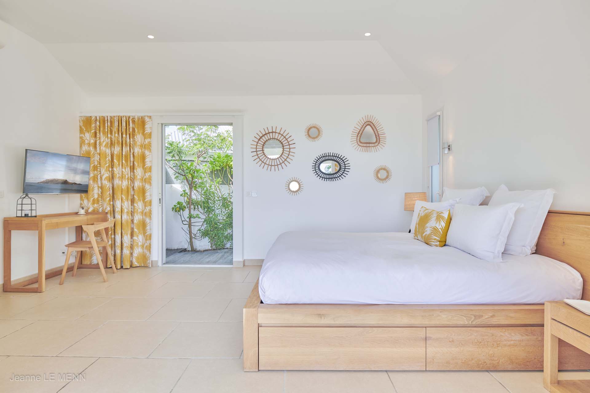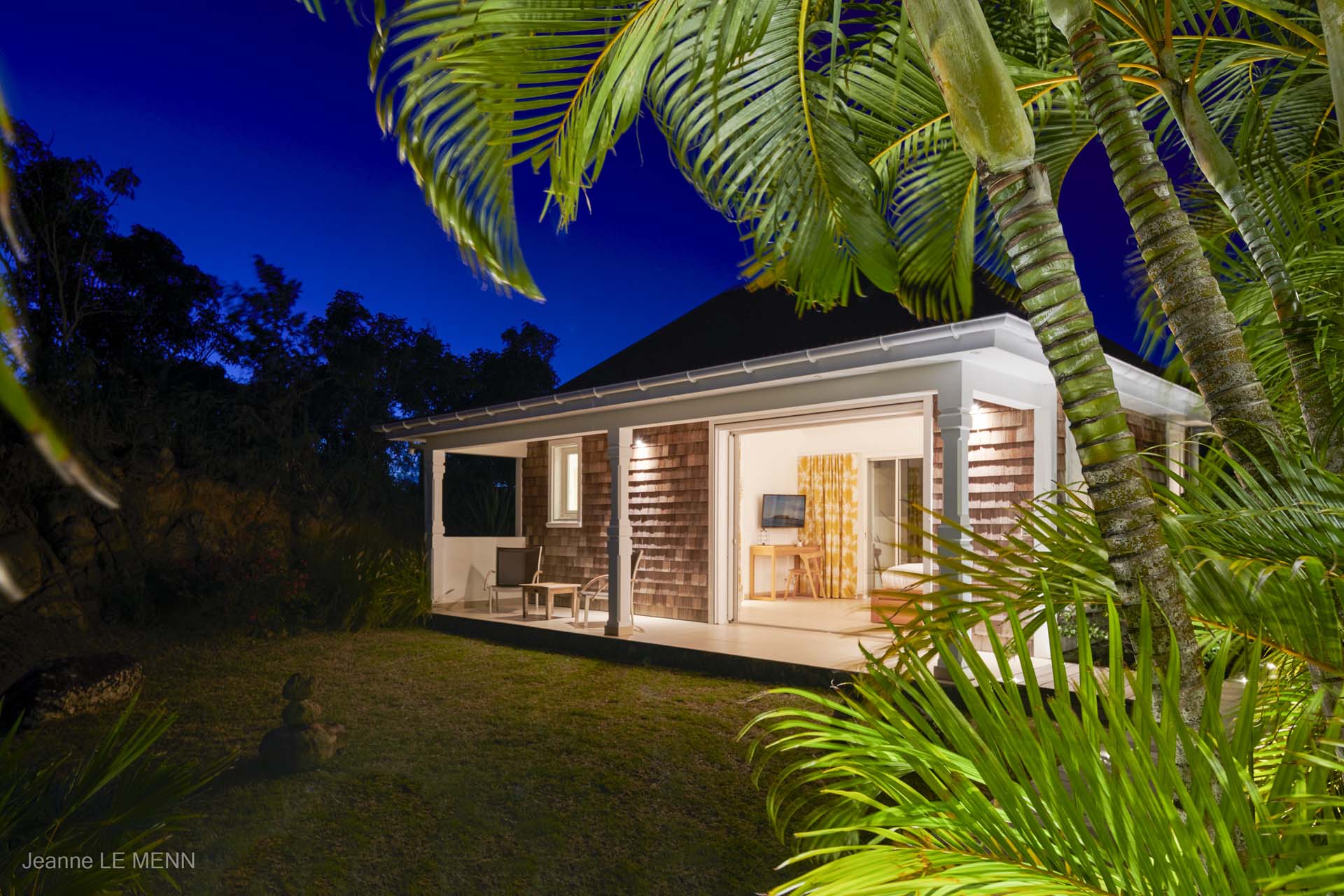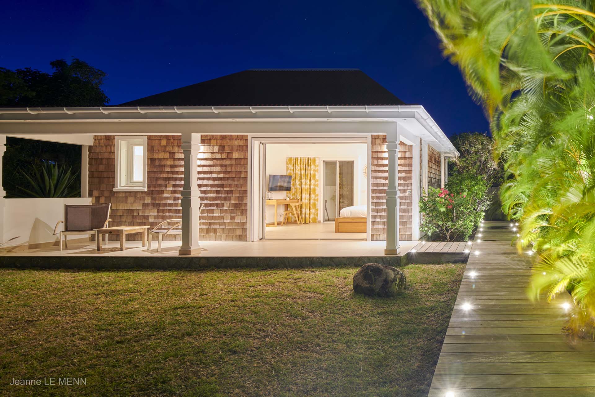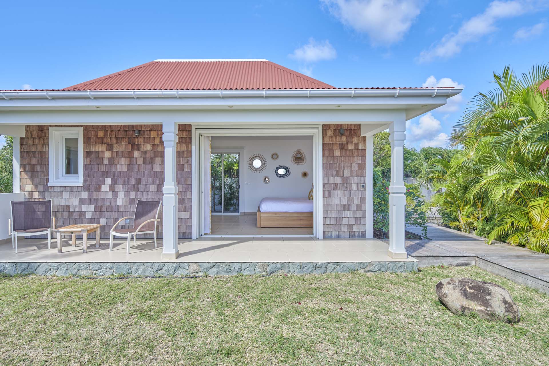 Deux des chambres sont accessibles par le salon, la troisième est dans un bungalow séparé.