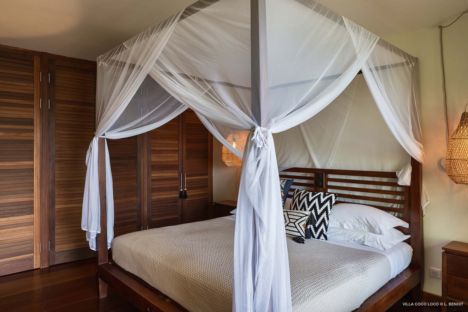 Coco Loco est située sur les hauteurs de Pointe Milou, face au soleil couchant.