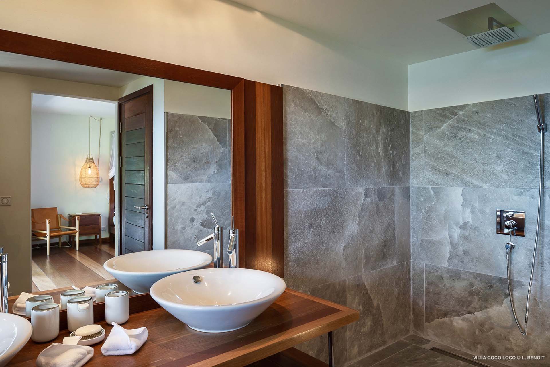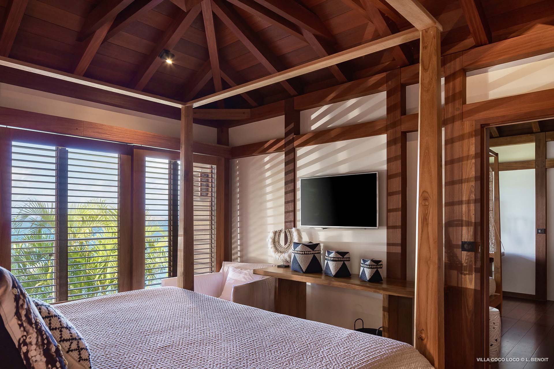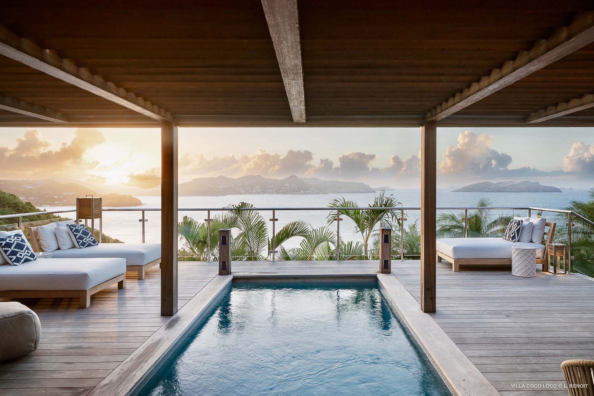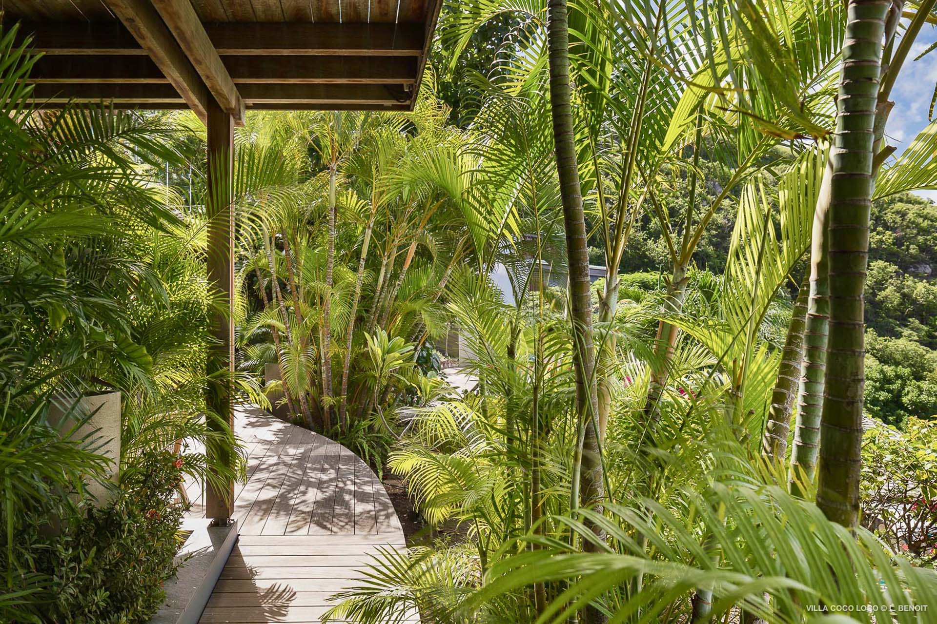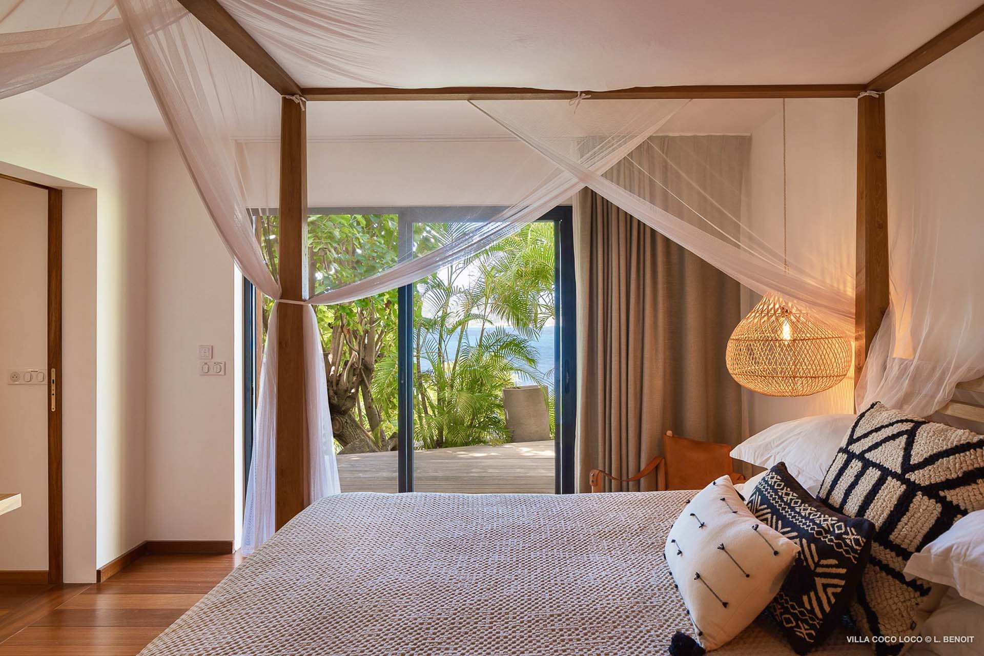 Coco Loco est située sur les hauteurs de Pointe Milou, face au soleil couchant.