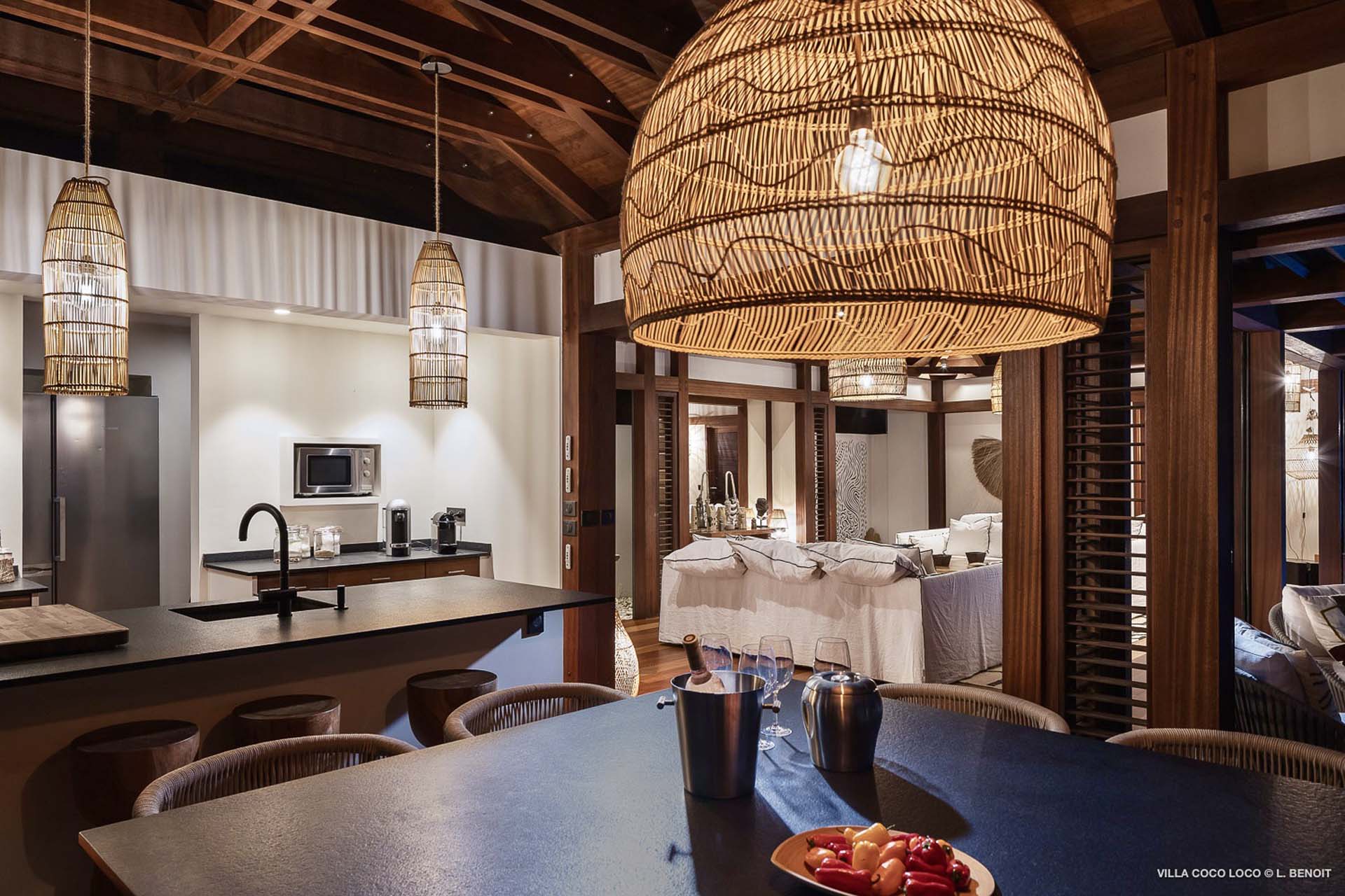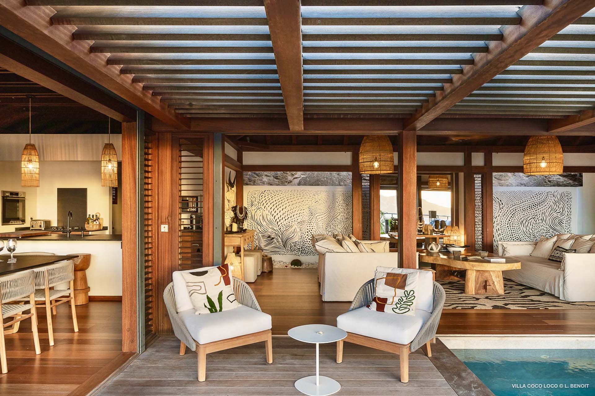 Le salon semi-ouvert sur l’extérieur est élégant et confortable et apporte un dépaysement garanti.