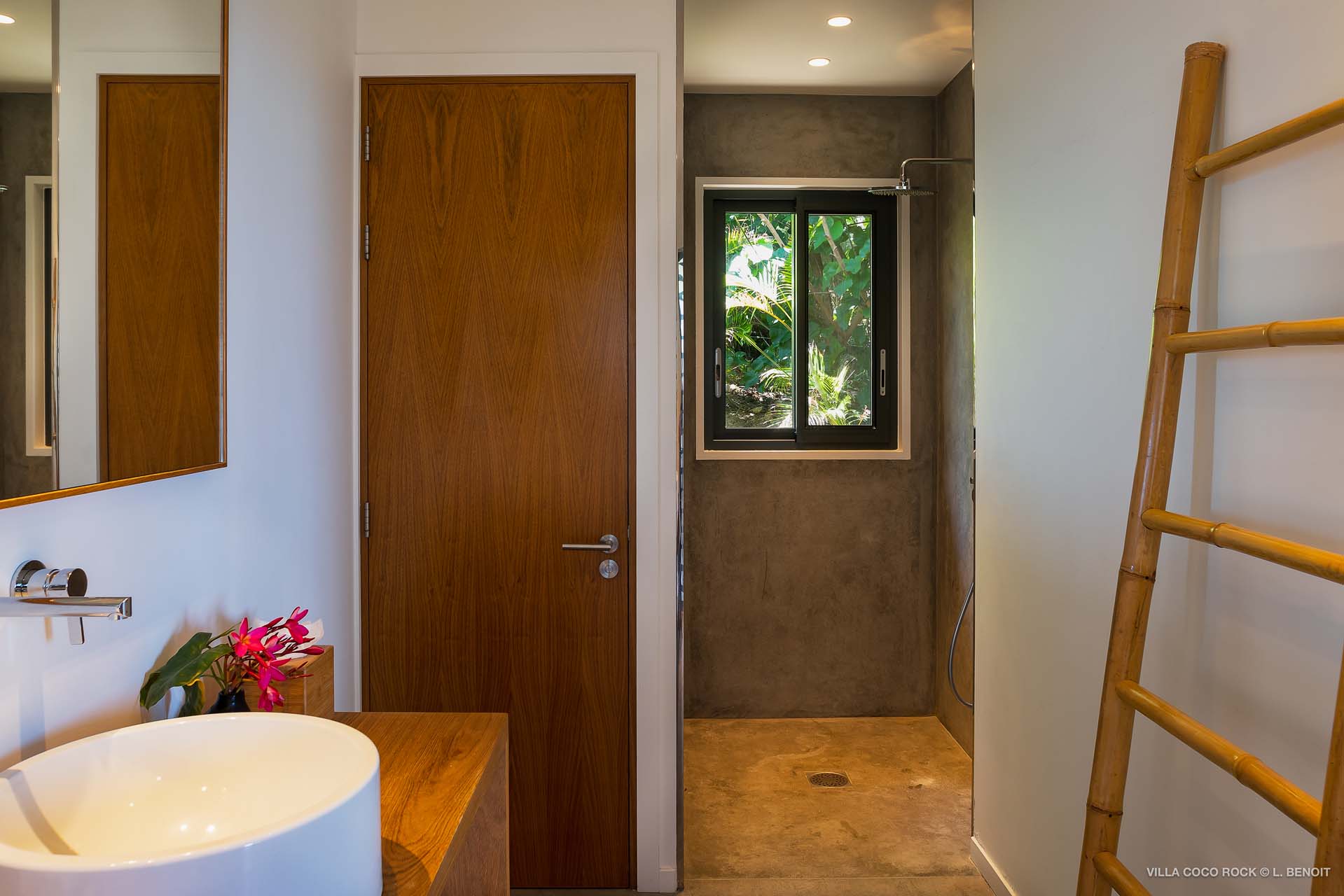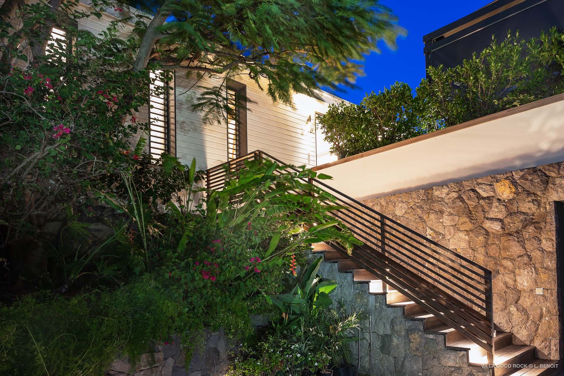 Coco Rock se distingue par son style sobre et élégant. La grande terrasse couverte et la longue piscine offrent une très jolie vue sur l’océan.