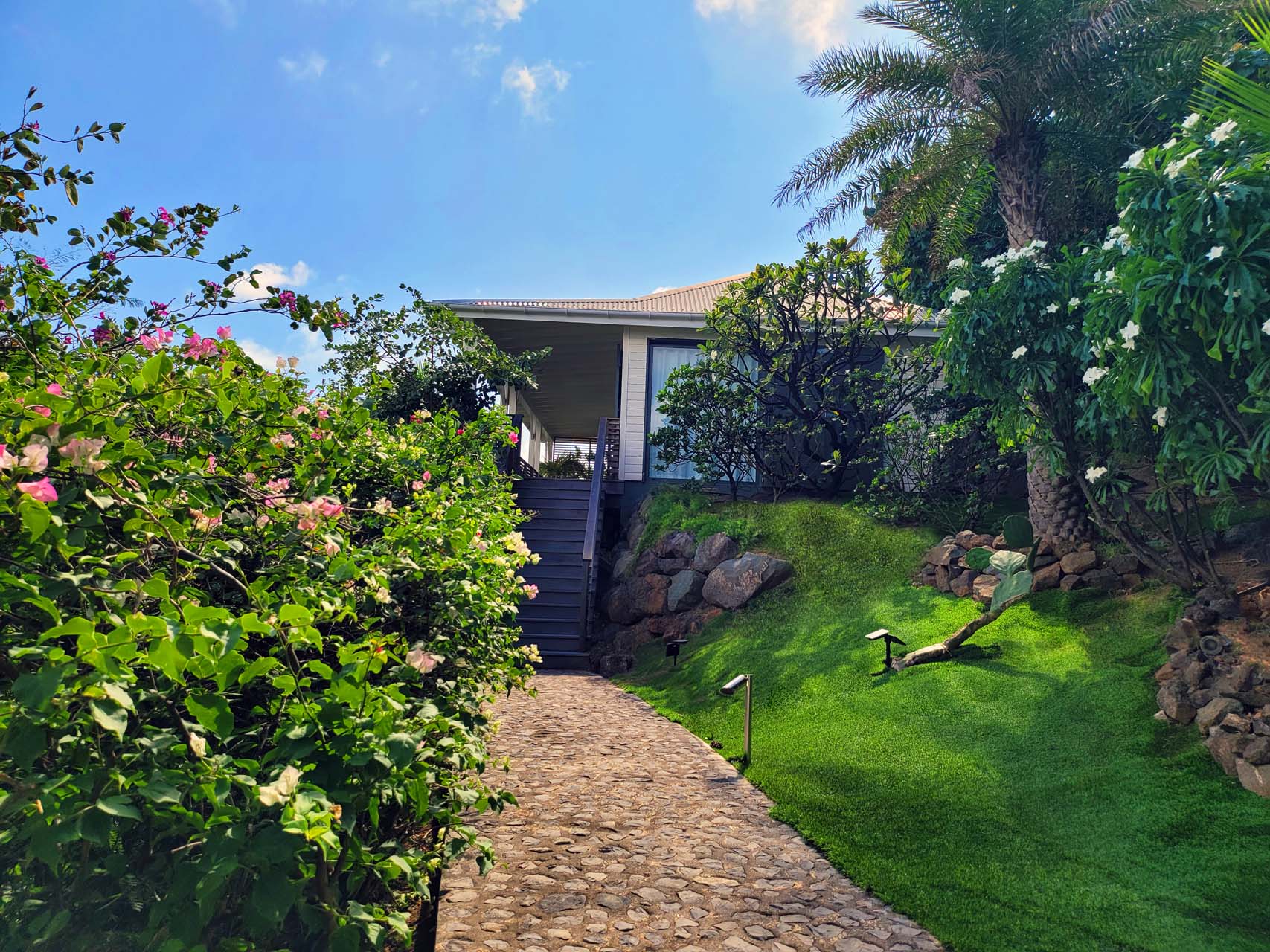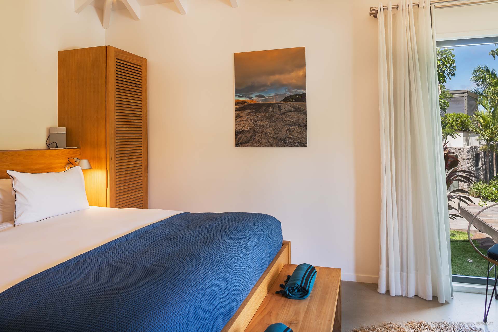 – Un bungalow situé en contre bas pour plus d’intimité, comprenant la chambre principale donnant sur la mer.