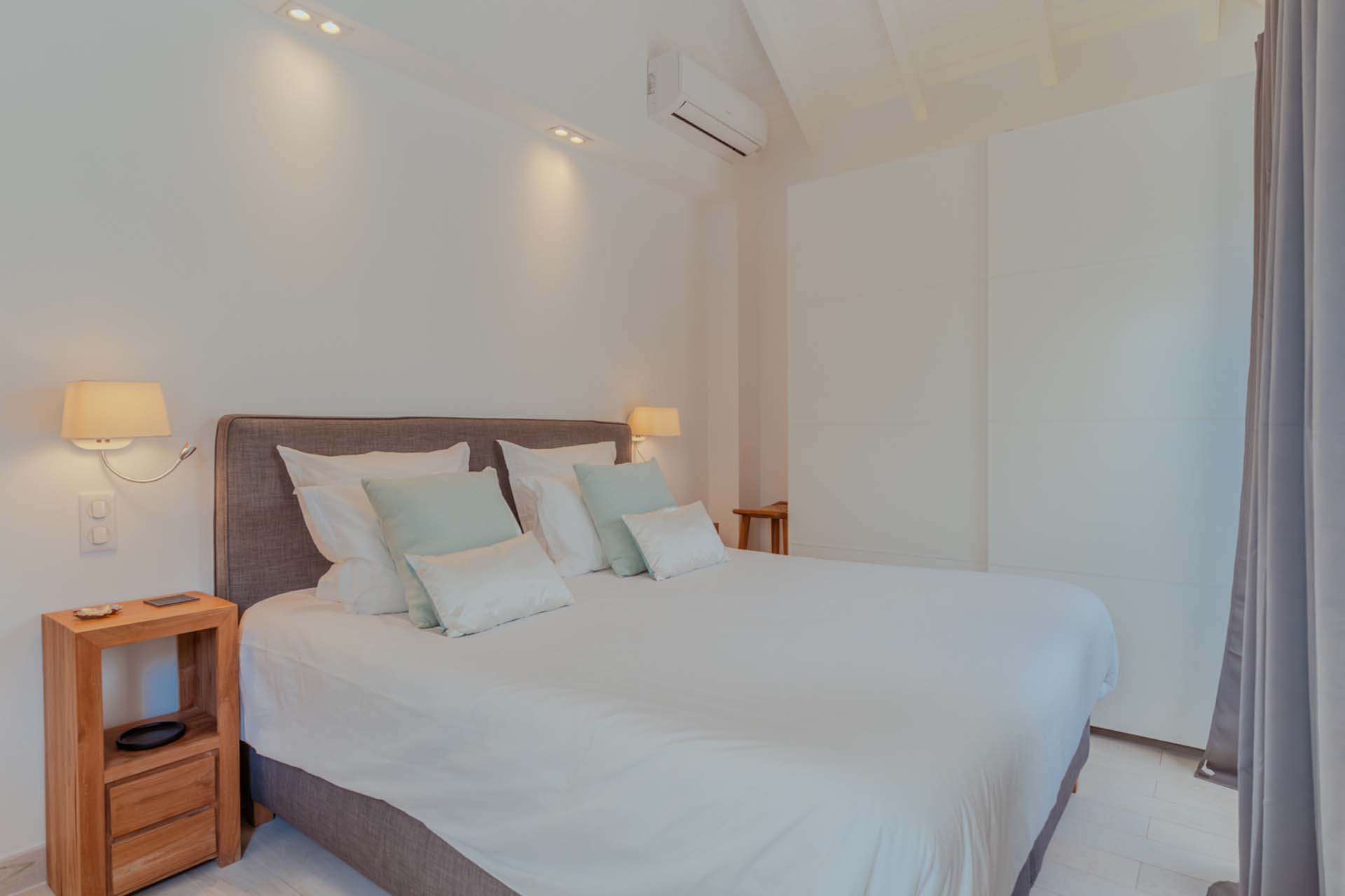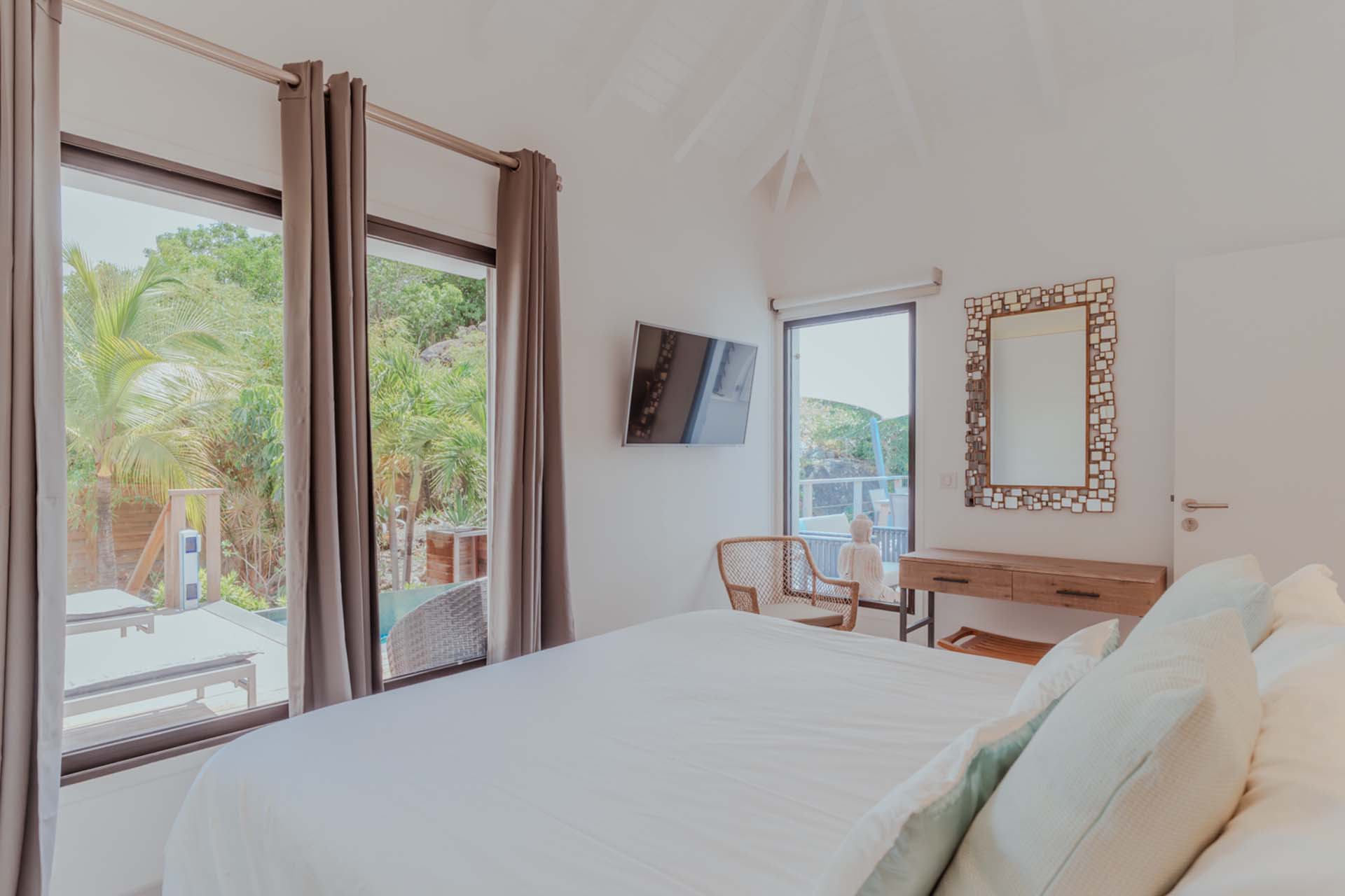 La première chambre possède un accès direct sur la terrasse. La seconde chambre offre une vue sur les collines d’Anse des Cayes.