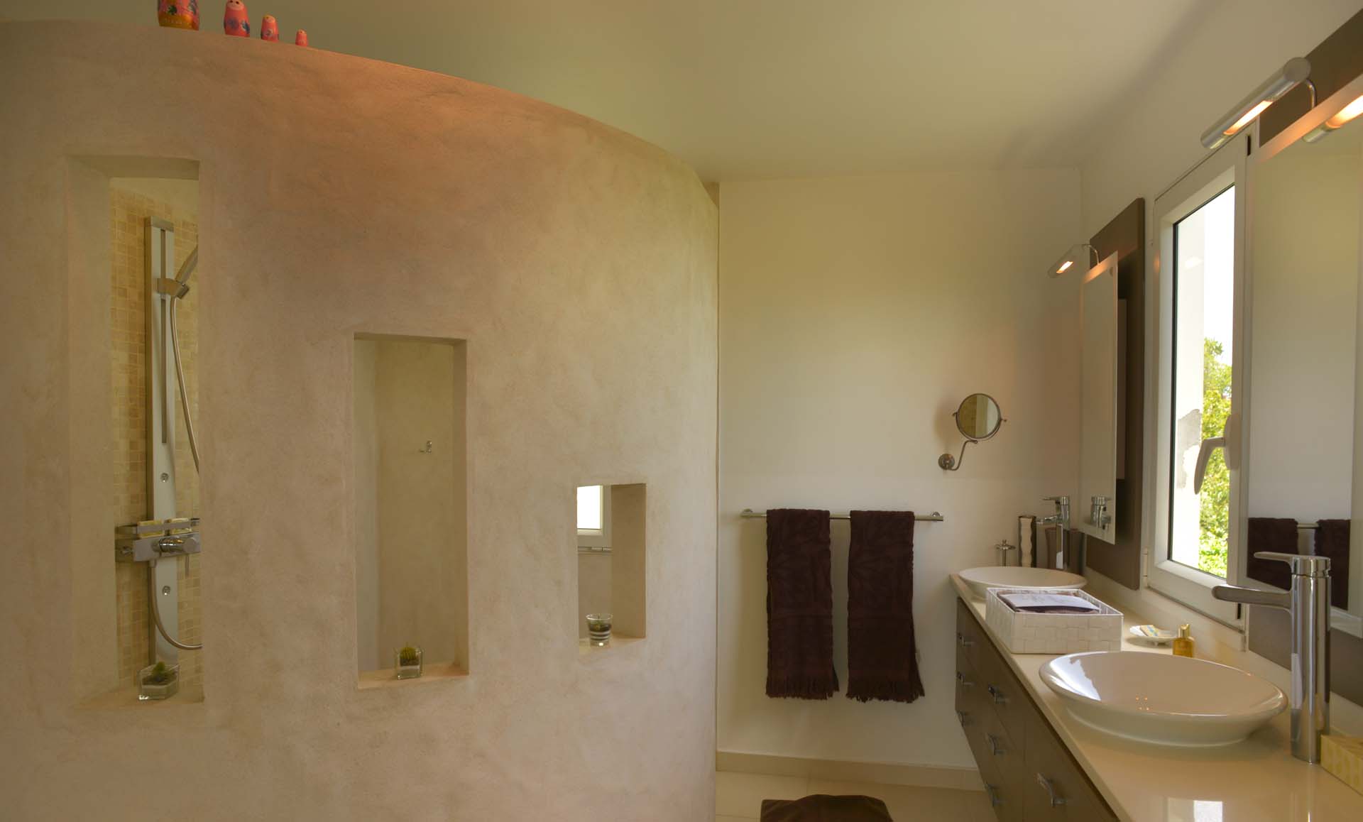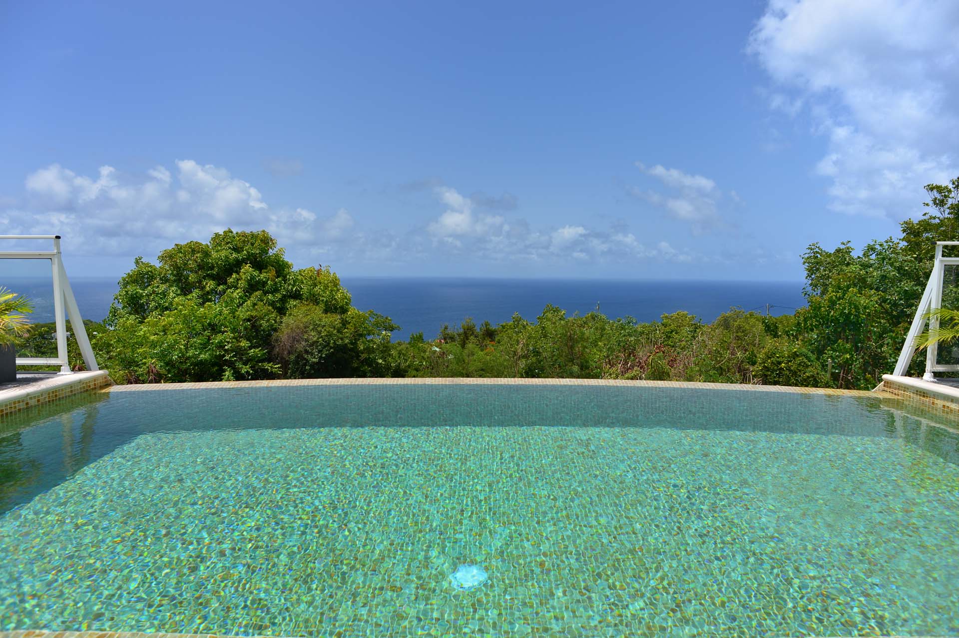 La villa, entourée de verdure bénéficie d’une très belle vue sur l’océan.