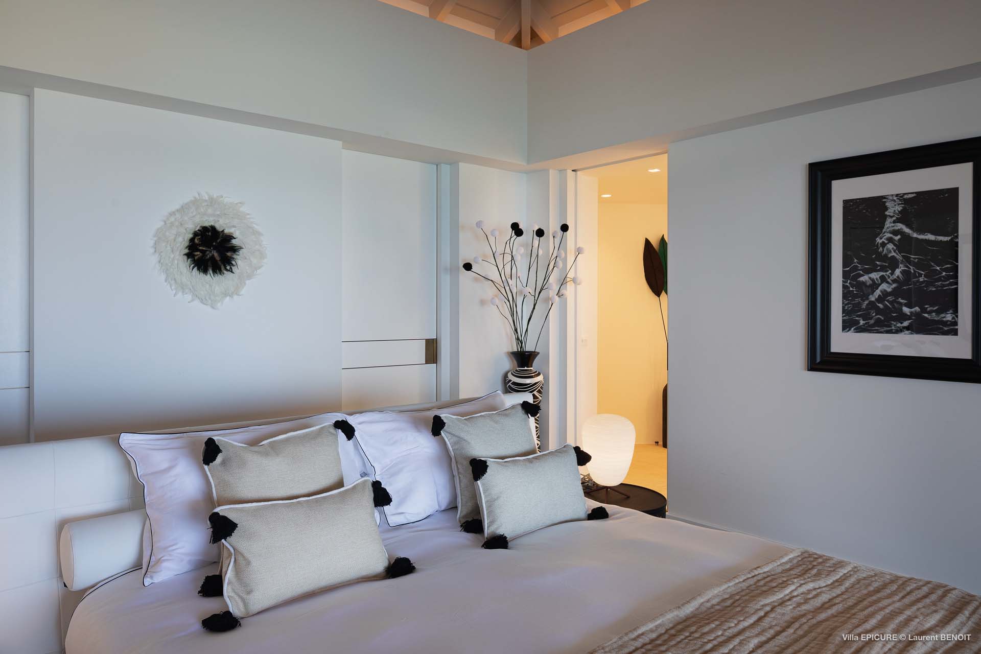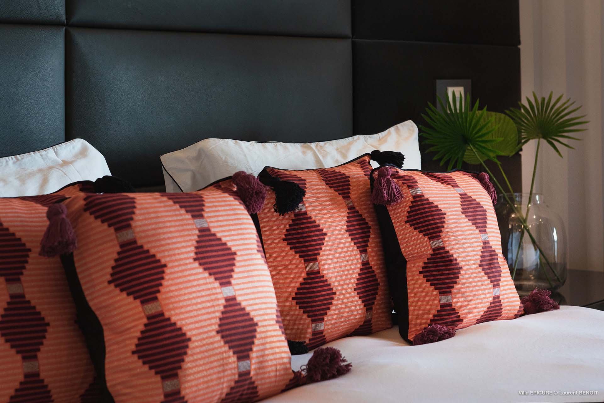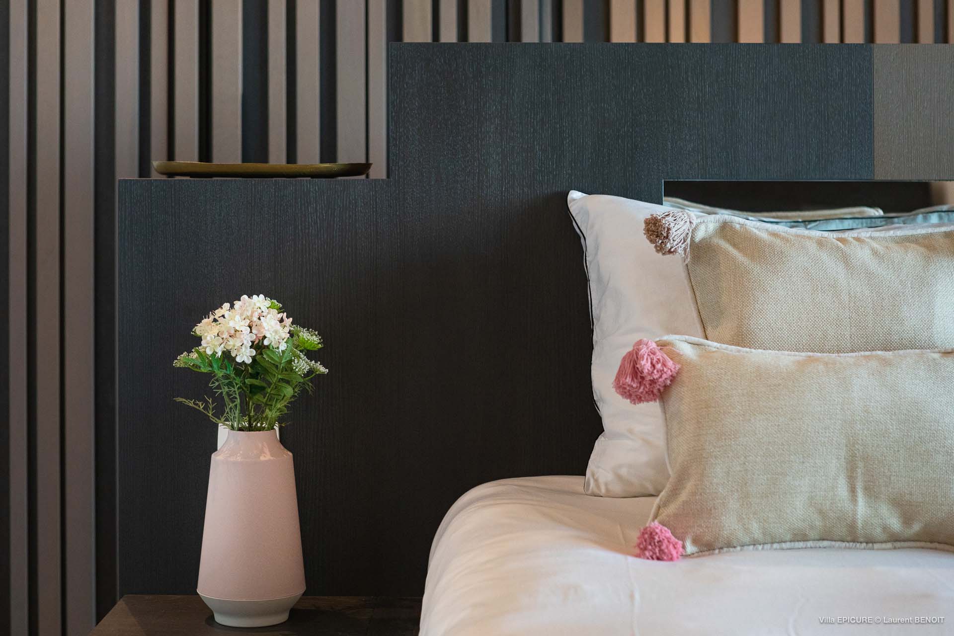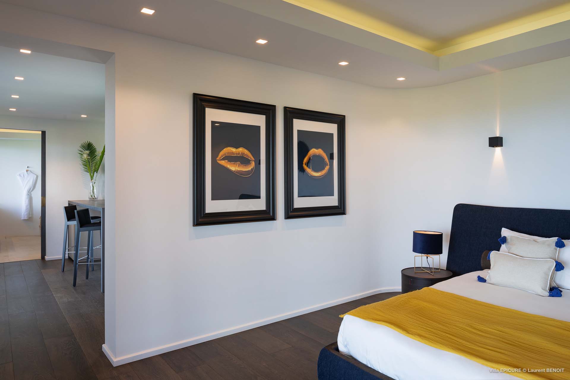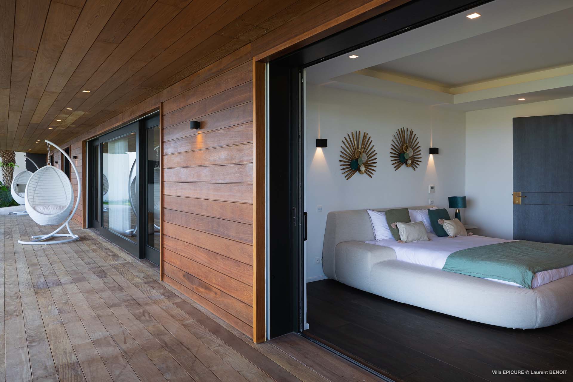 Sept chambres au design travaillé vous accueilleront et sauront sans nul doute vous plonger dans une ambiance relaxante. Trois d’entre elles se situent au niveau principal de la villa et les quatre autres sont à l’étage inférieur accessible par un majestueux escalier en pierre.