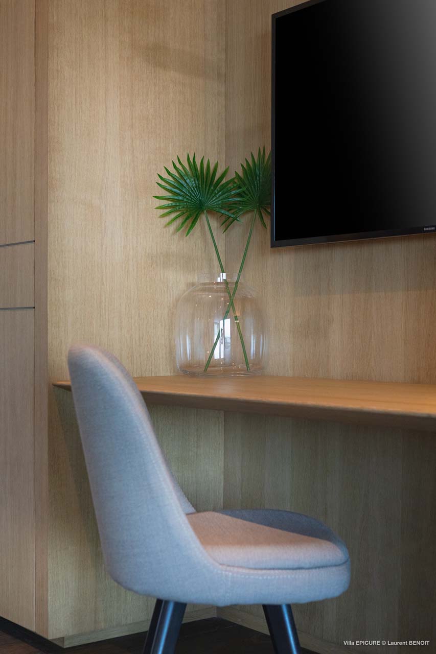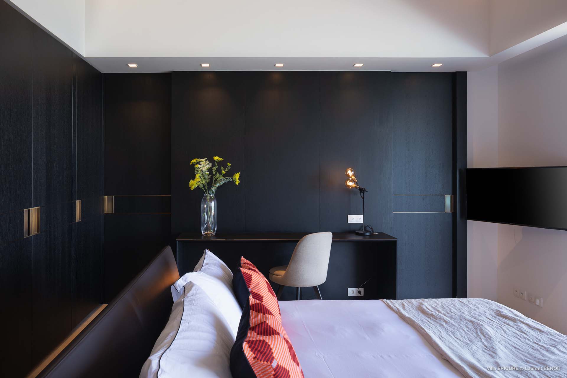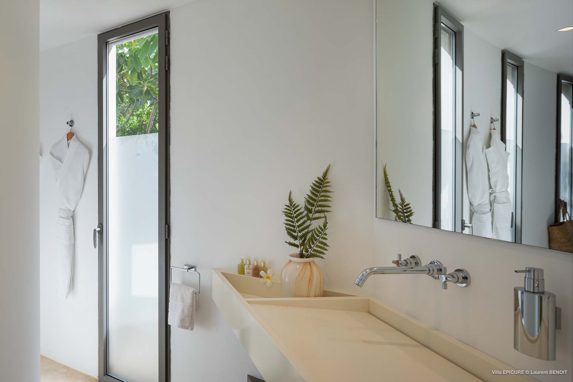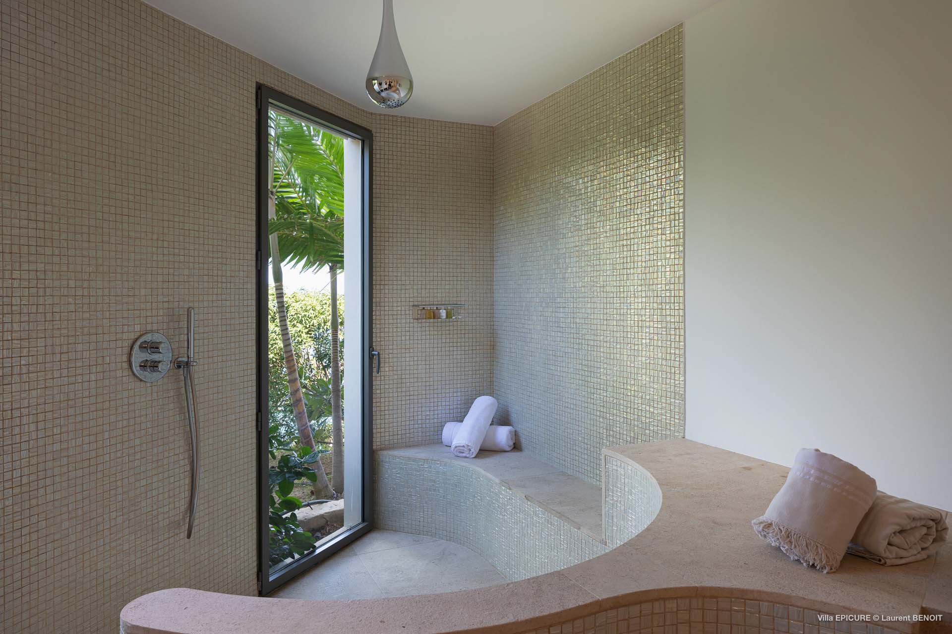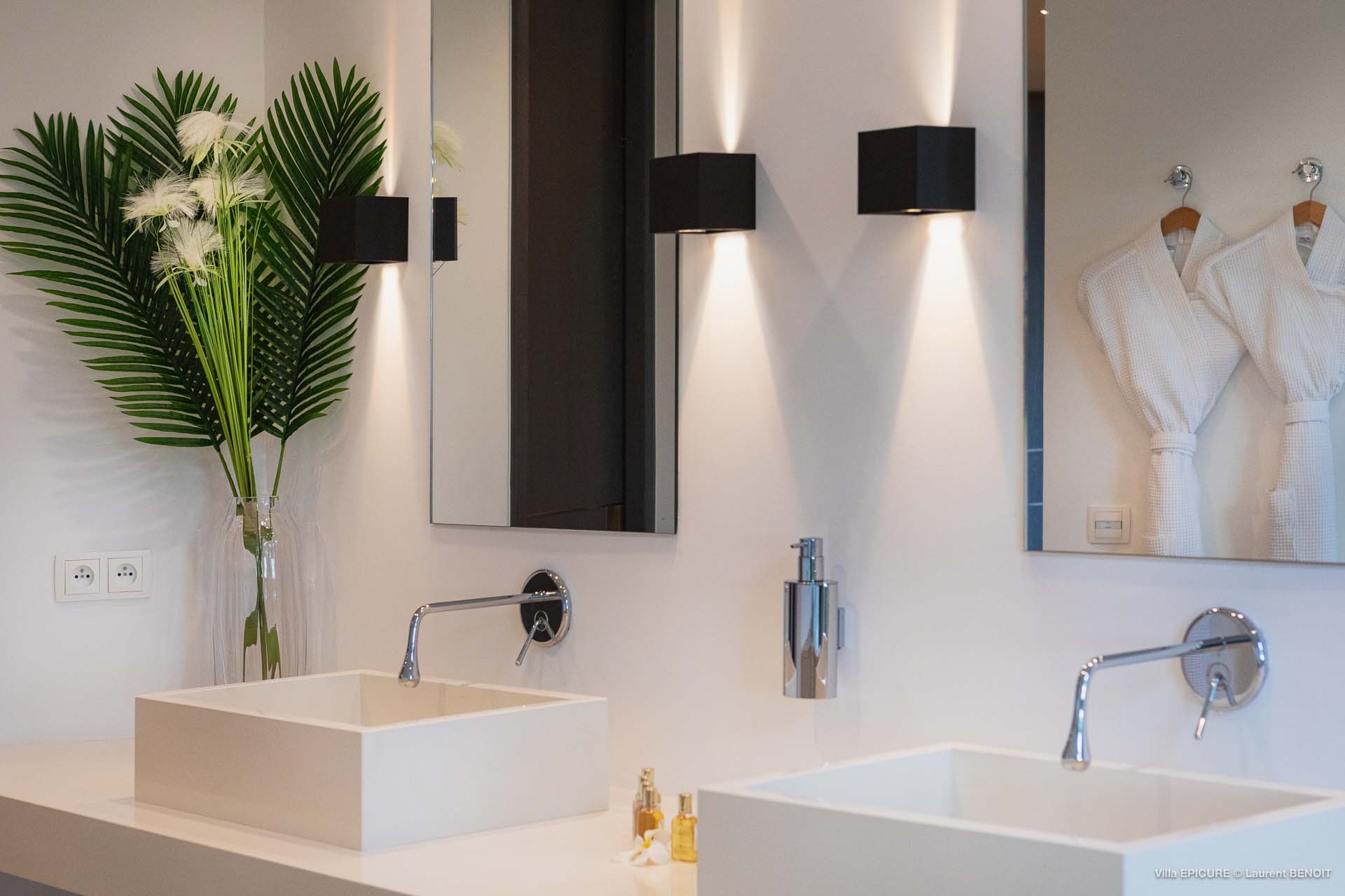 Sept chambres au design travaillé vous accueilleront et sauront sans nul doute vous plonger dans une ambiance relaxante. Trois d’entre elles se situent au niveau principal de la villa et les quatre autres sont à l’étage inférieur accessible par un majestueux escalier en pierre.