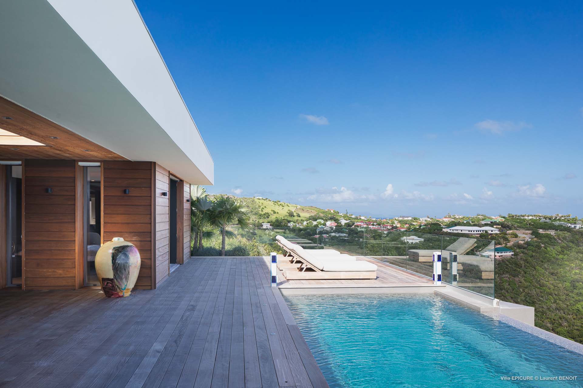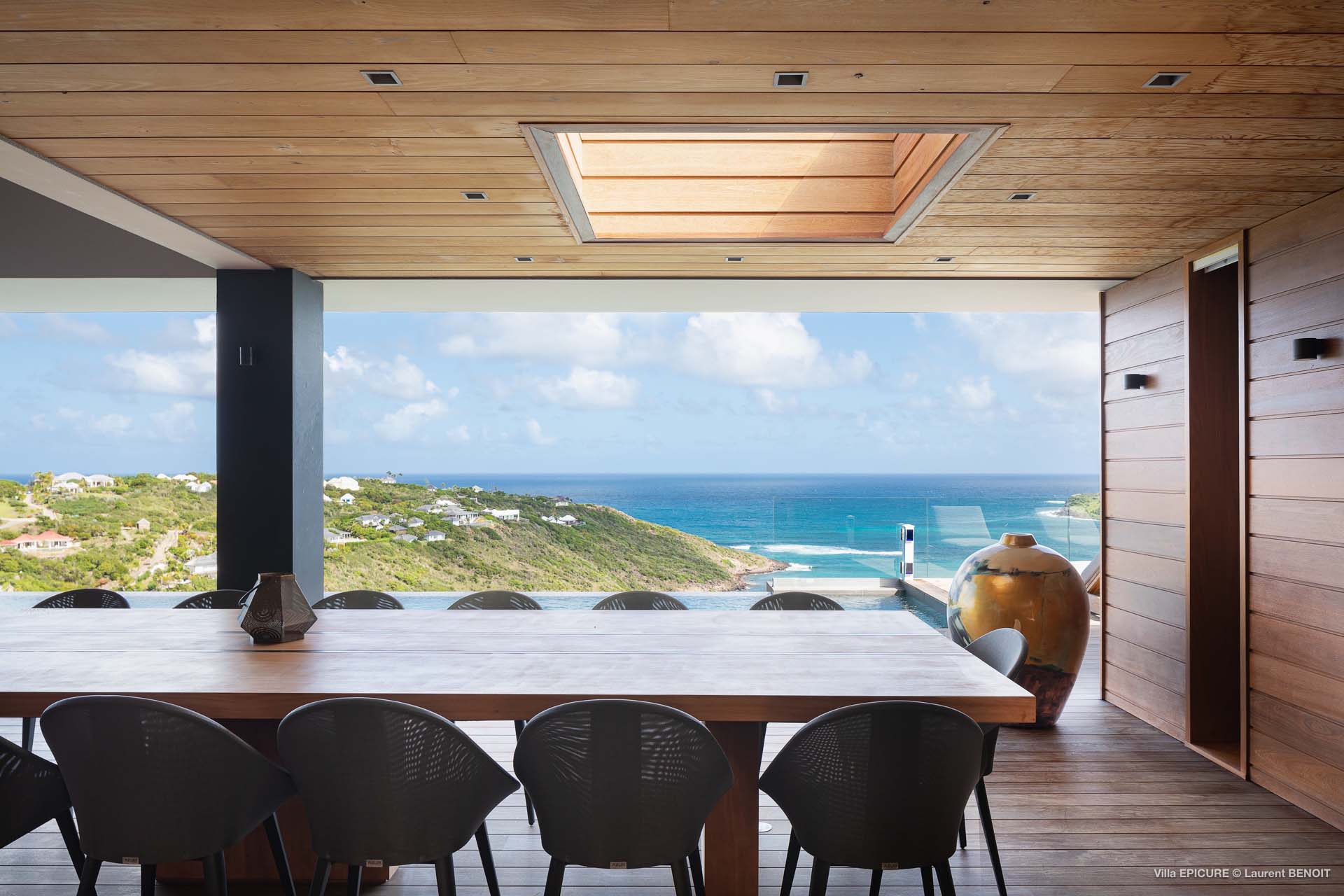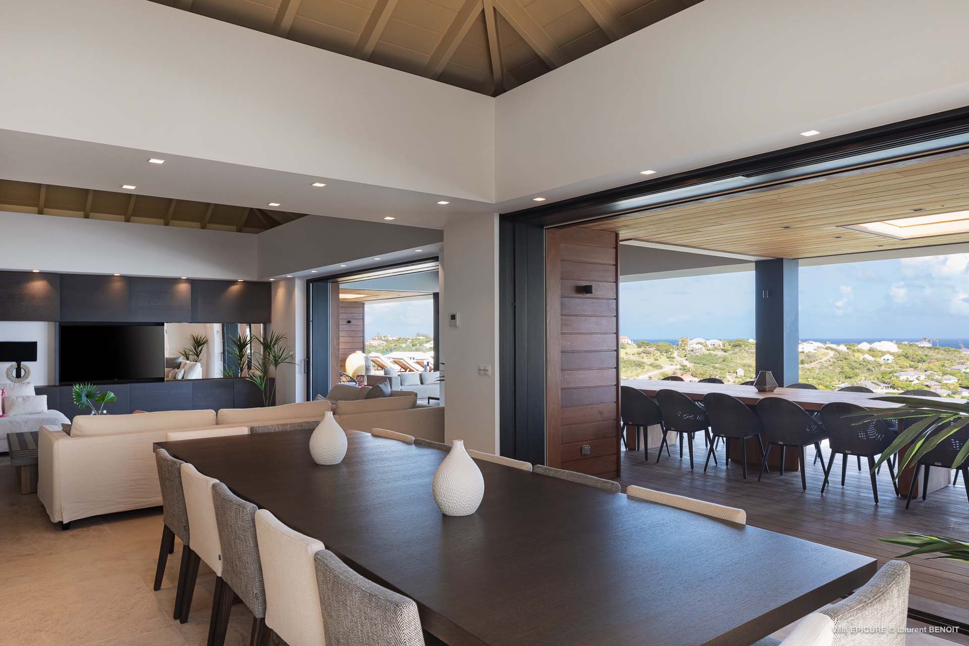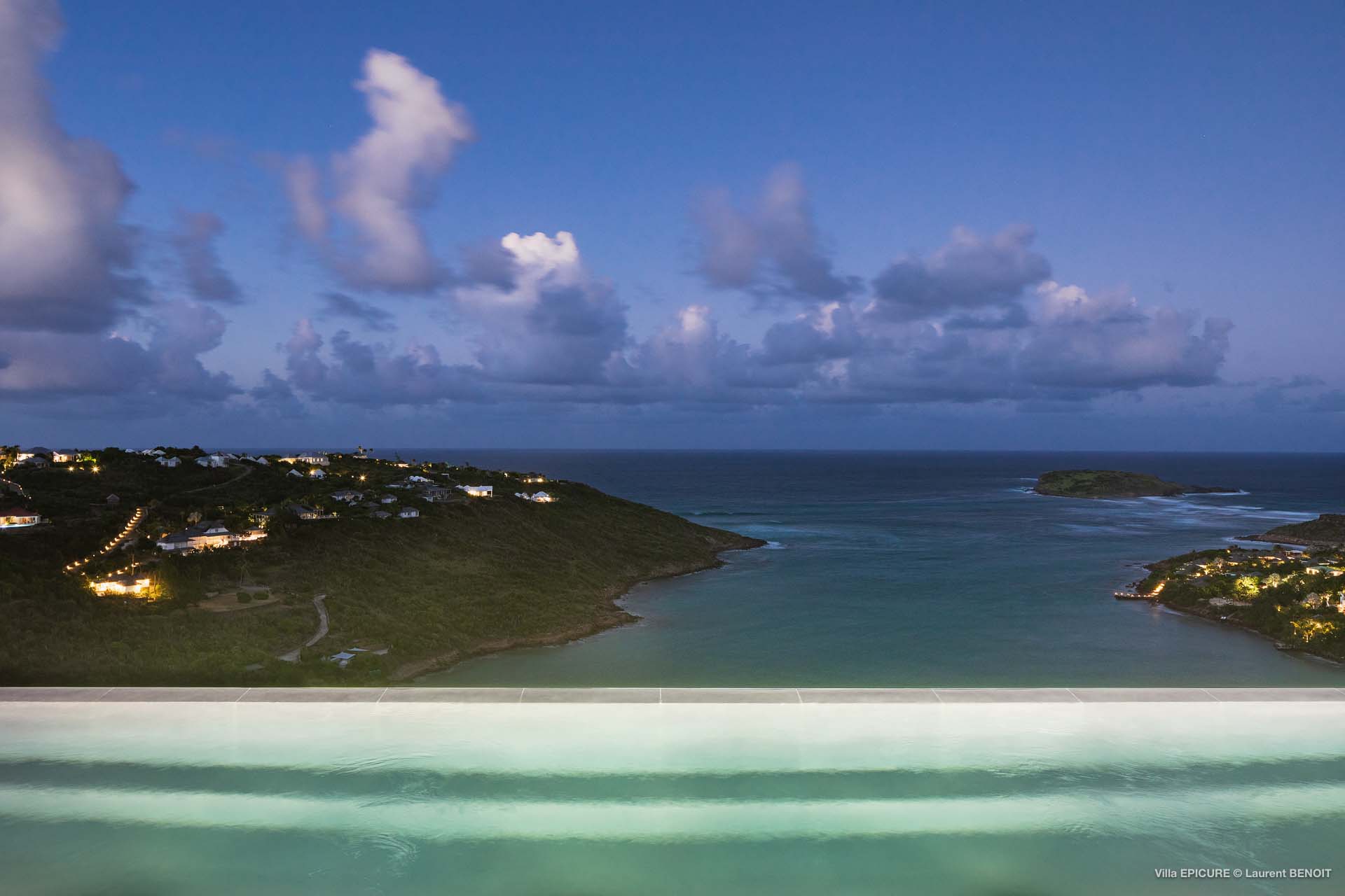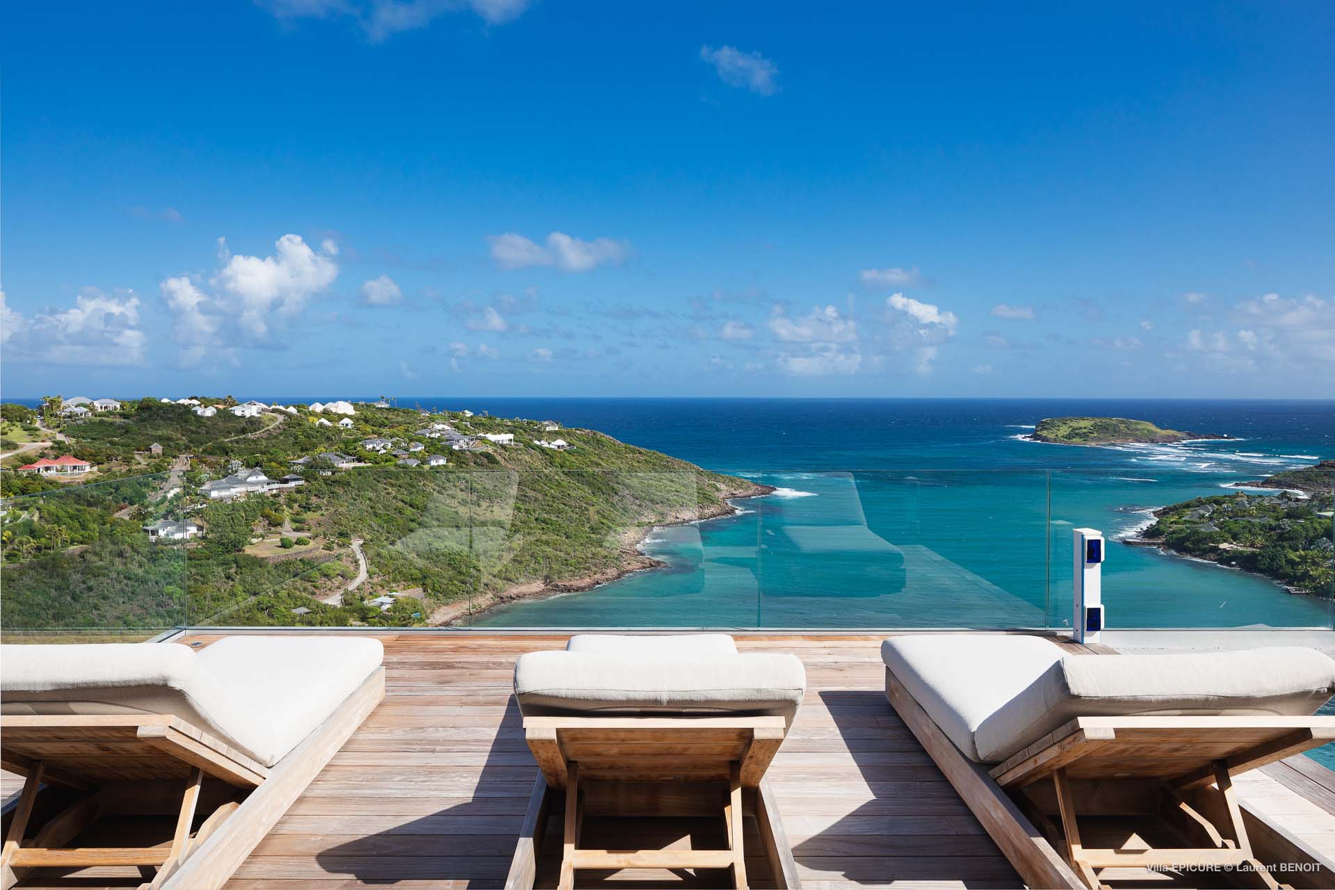 Depuis l’immense terrasse et la longue piscine chauffée vous aurez la chance de contempler l’une des plus belles vues de St Barth, la baie de Marigot et de Grand Cul de Sac.
