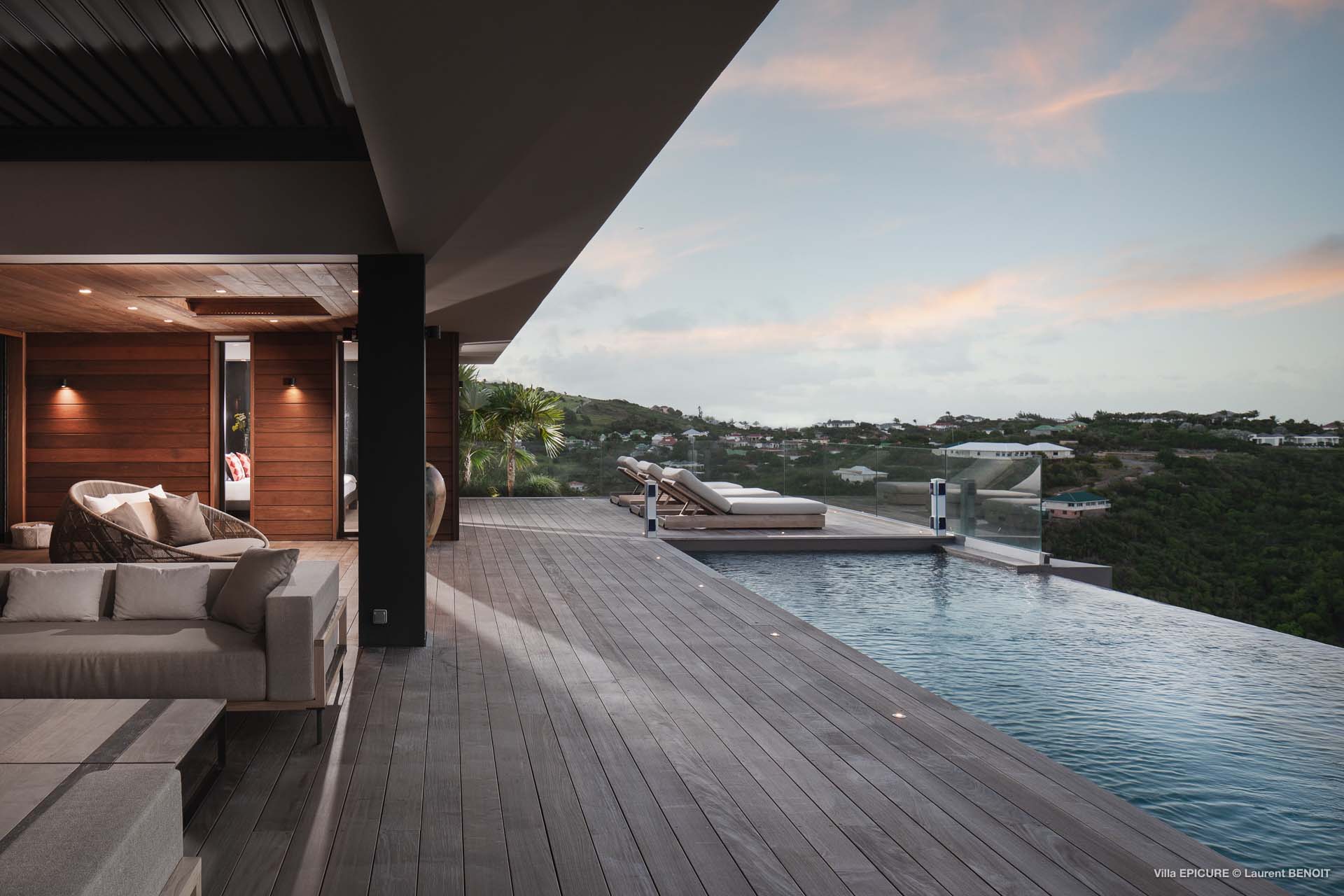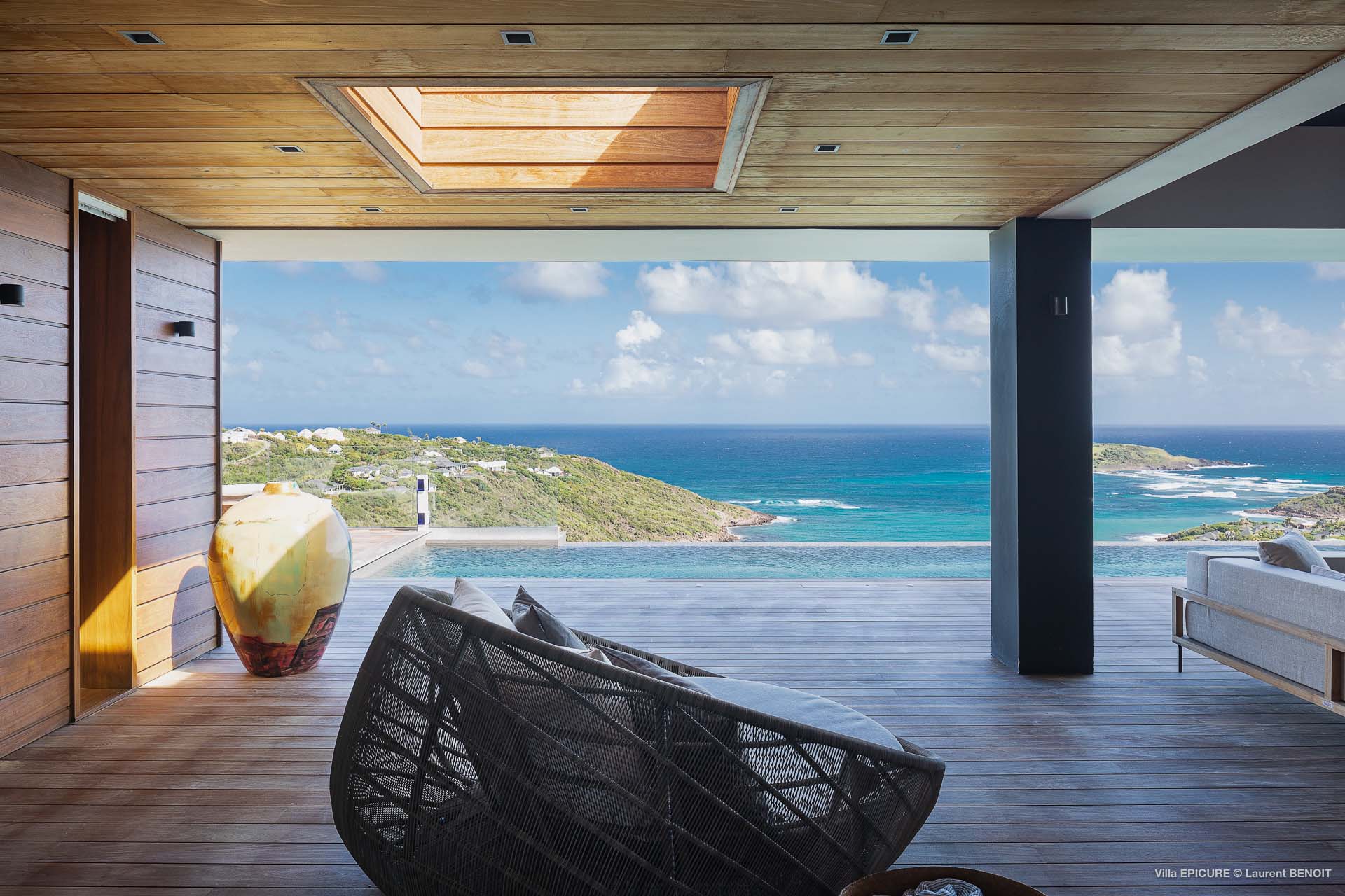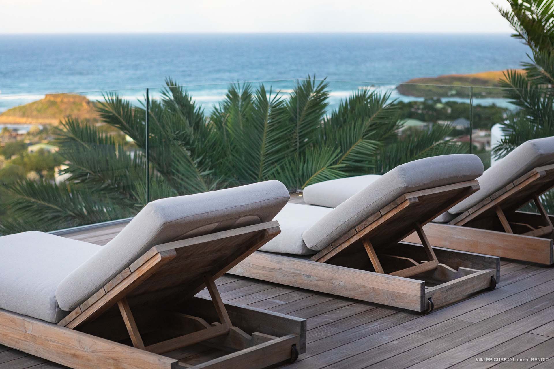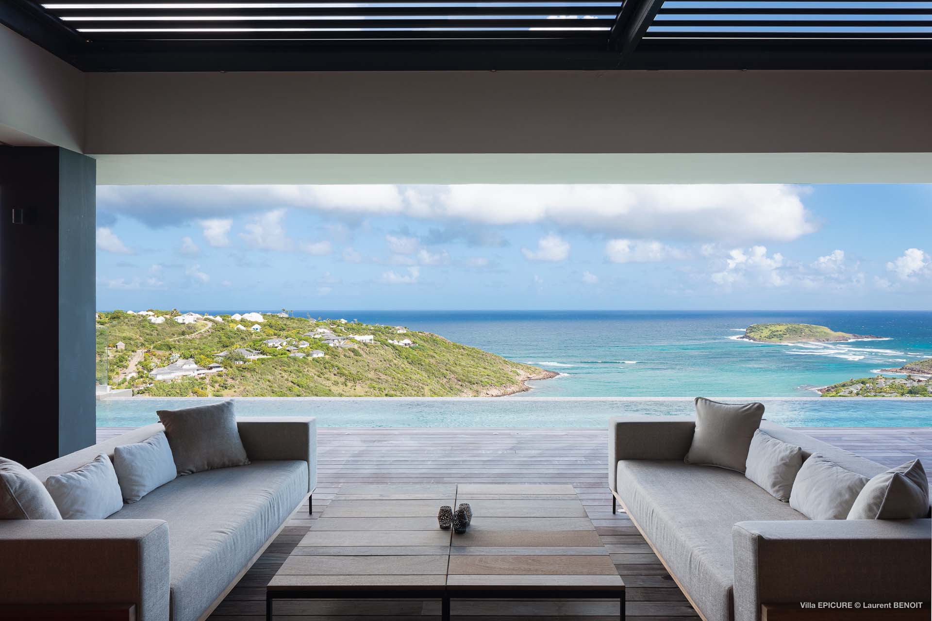 Depuis l’immense terrasse et la longue piscine chauffée vous aurez la chance de contempler l’une des plus belles vues de St Barth, la baie de Marigot et de Grand Cul de Sac.