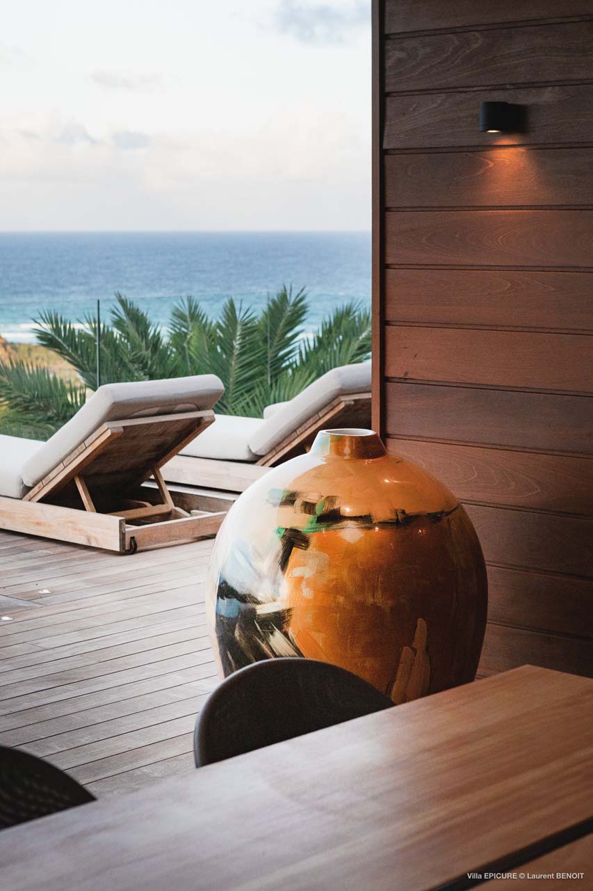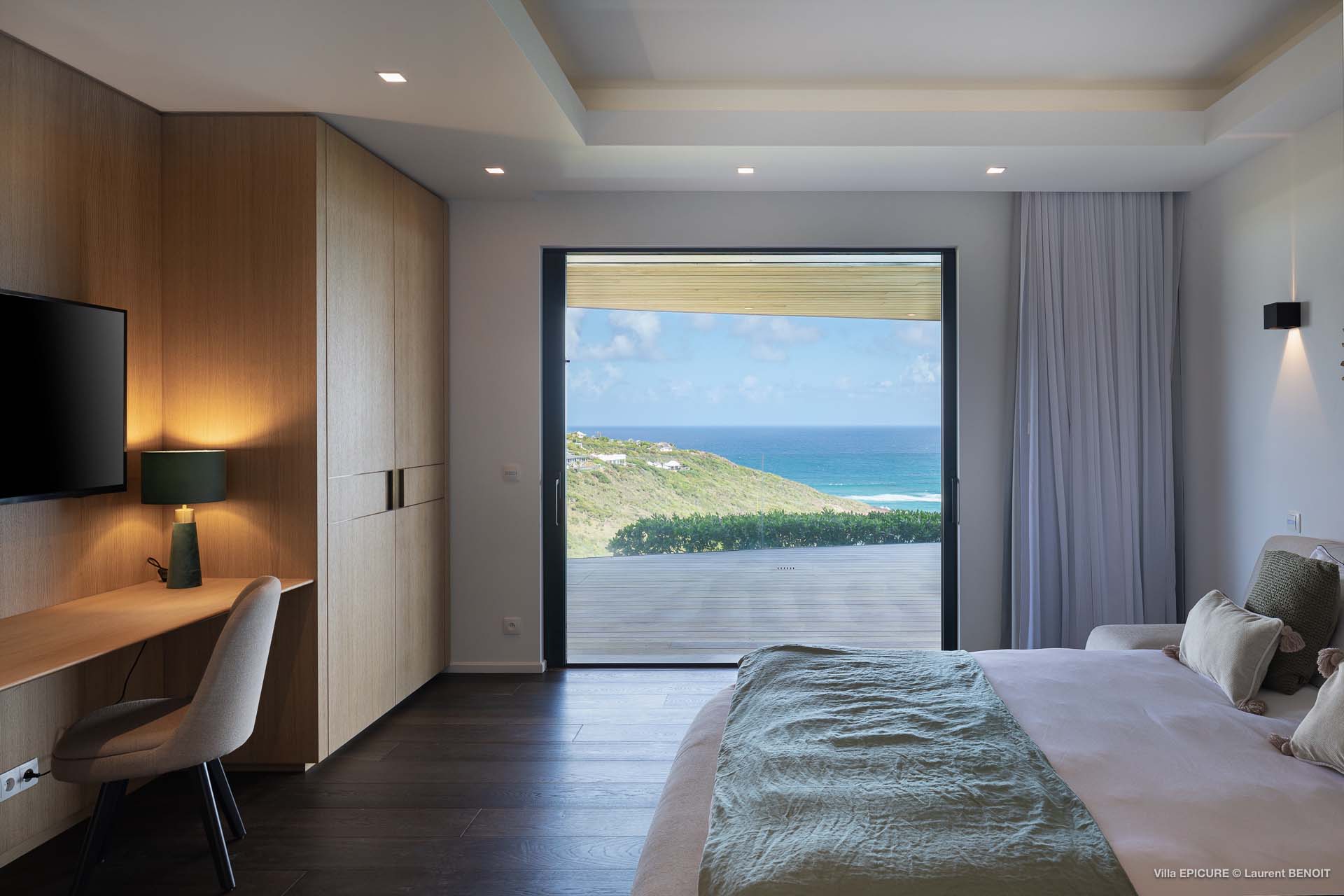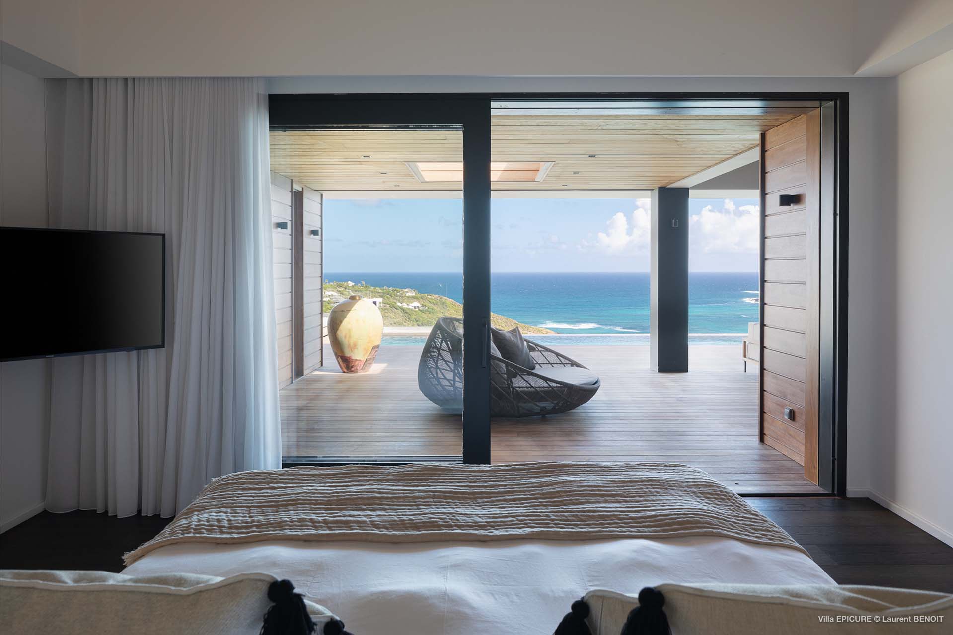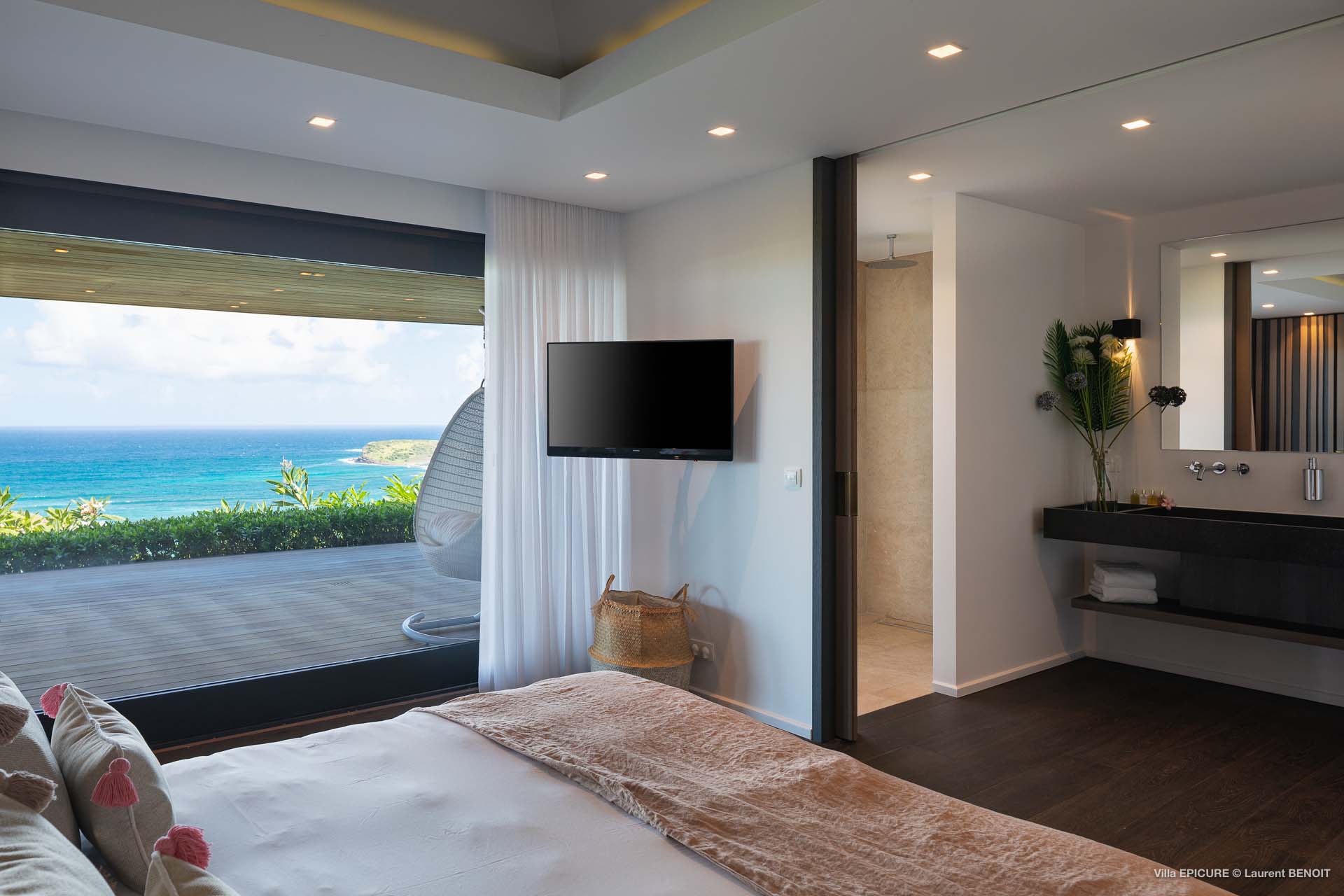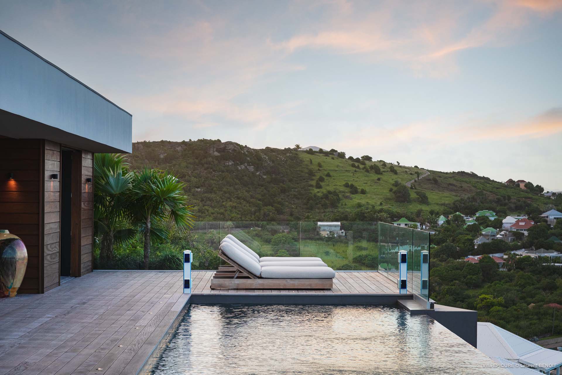 Depuis l’immense terrasse et la longue piscine chauffée vous aurez la chance de contempler l’une des plus belles vues de St Barth, la baie de Marigot et de Grand Cul de Sac.