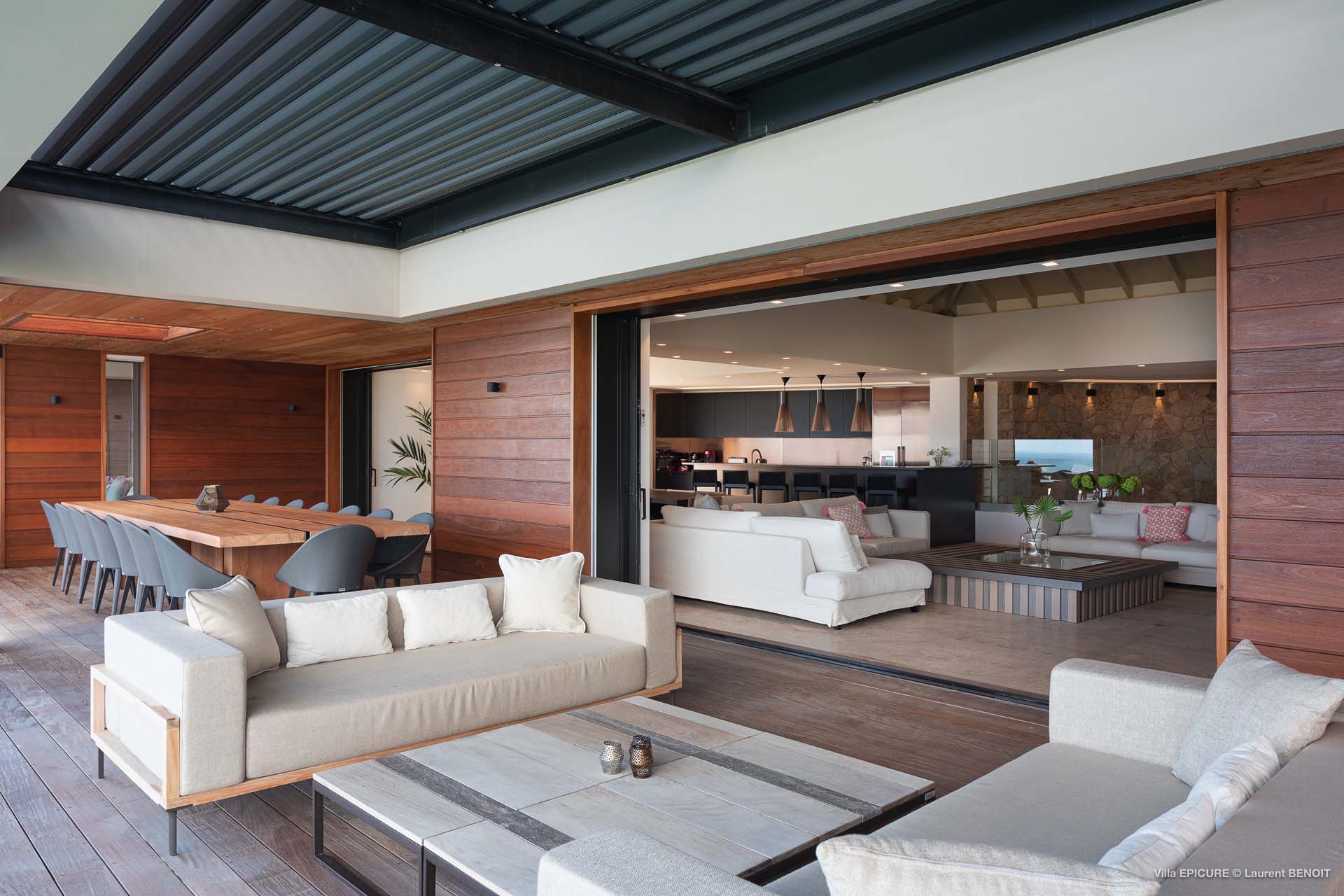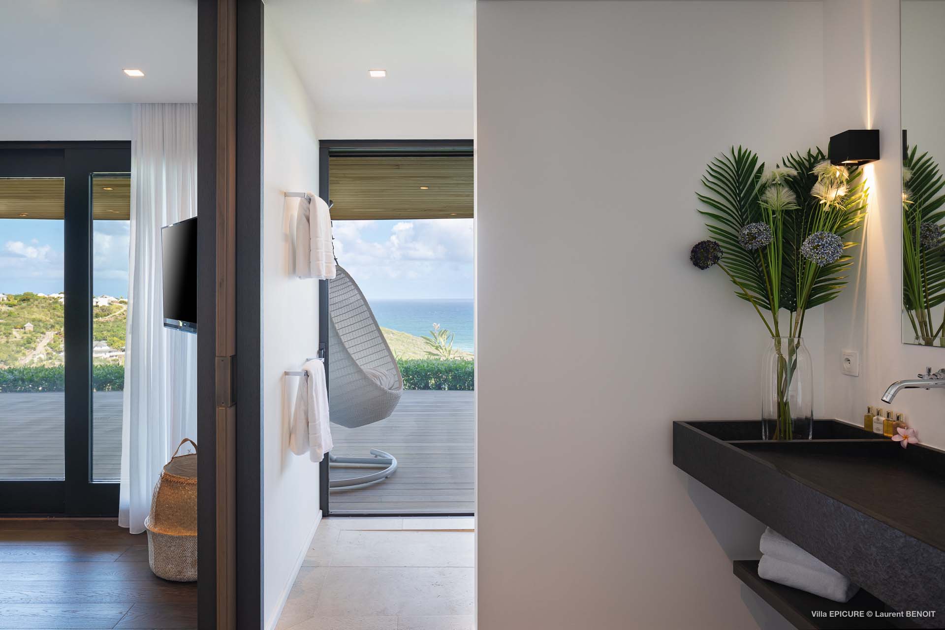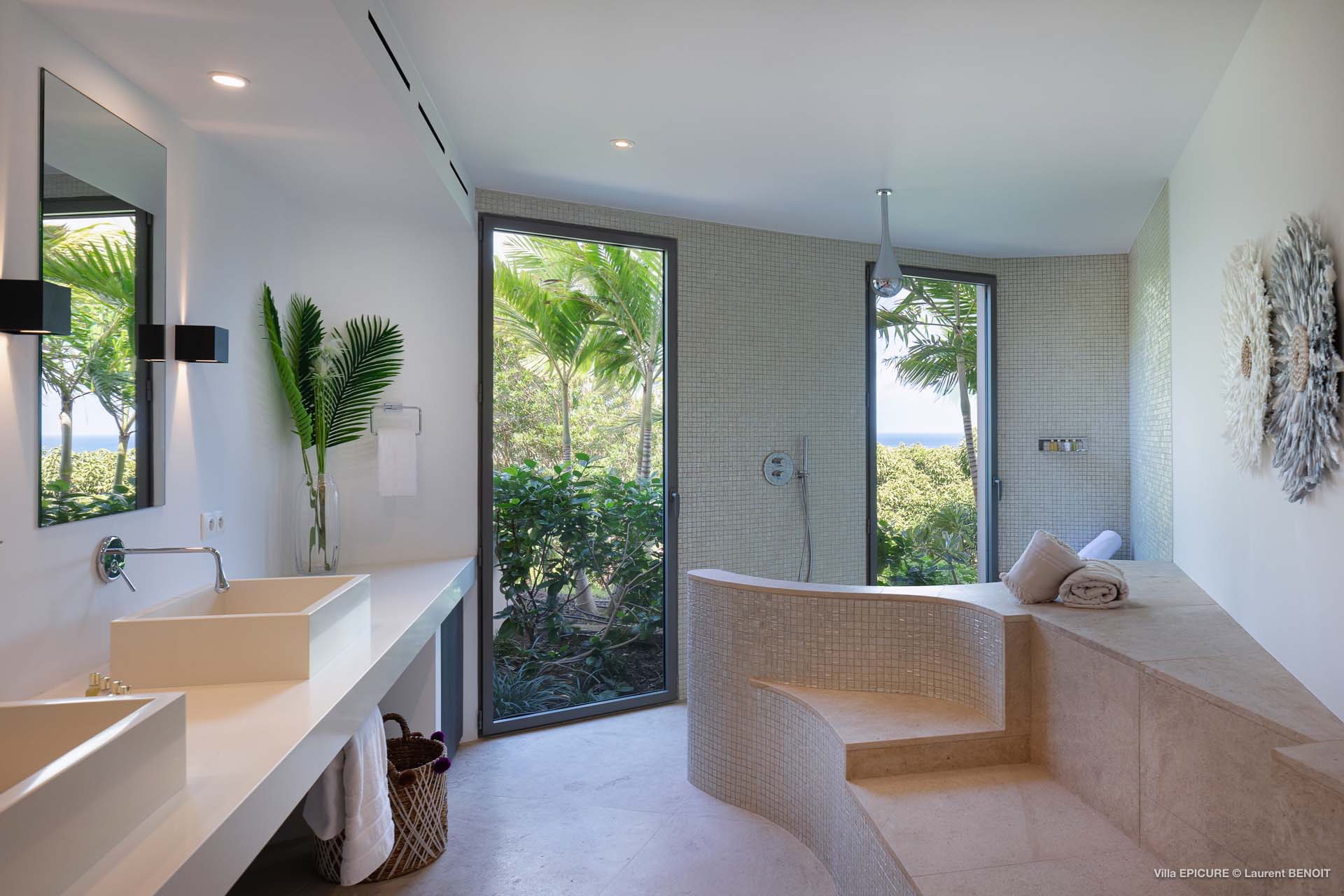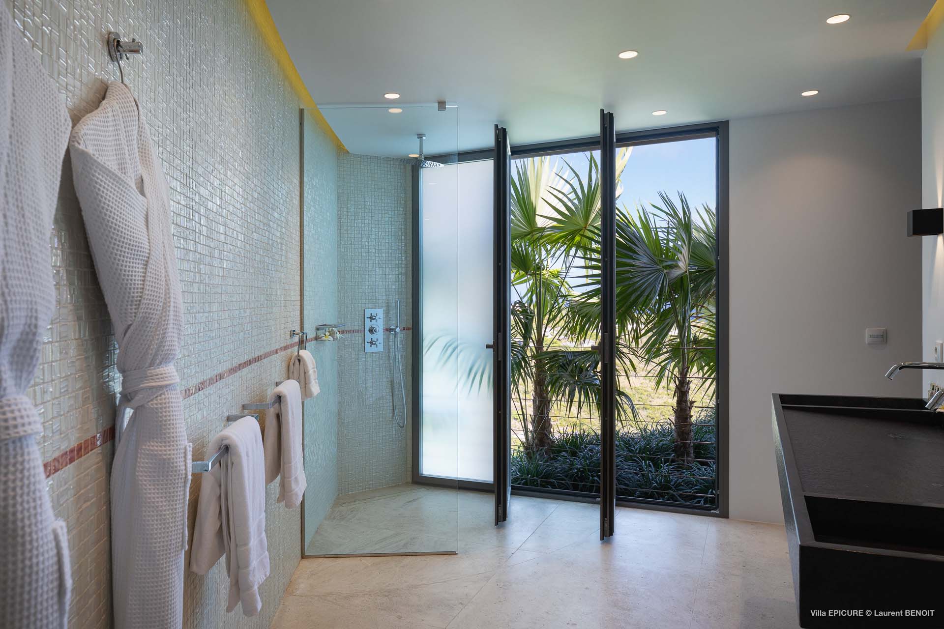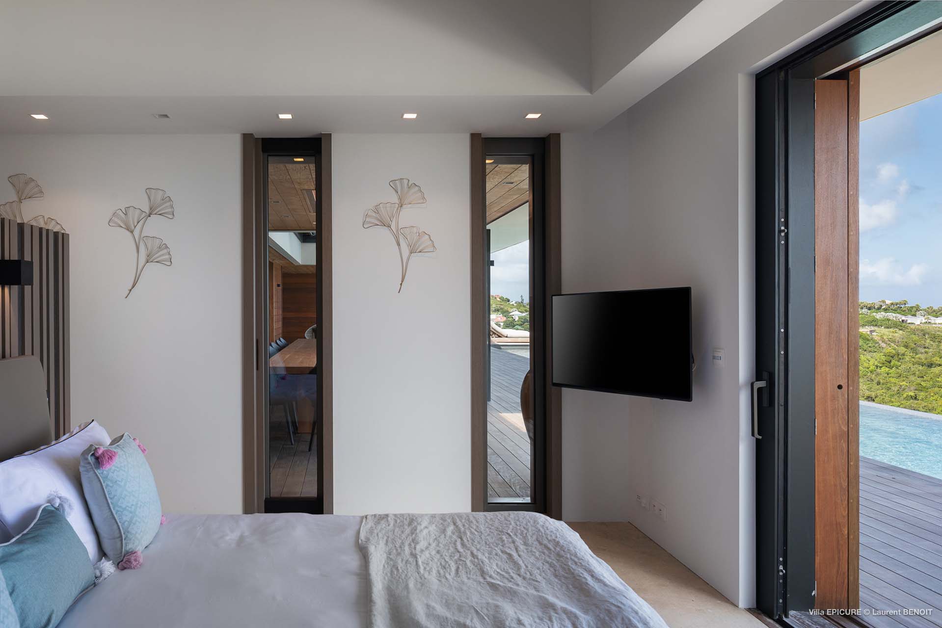 Depuis l’immense terrasse et la longue piscine chauffée vous aurez la chance de contempler l’une des plus belles vues de St Barth, la baie de Marigot et de Grand Cul de Sac.