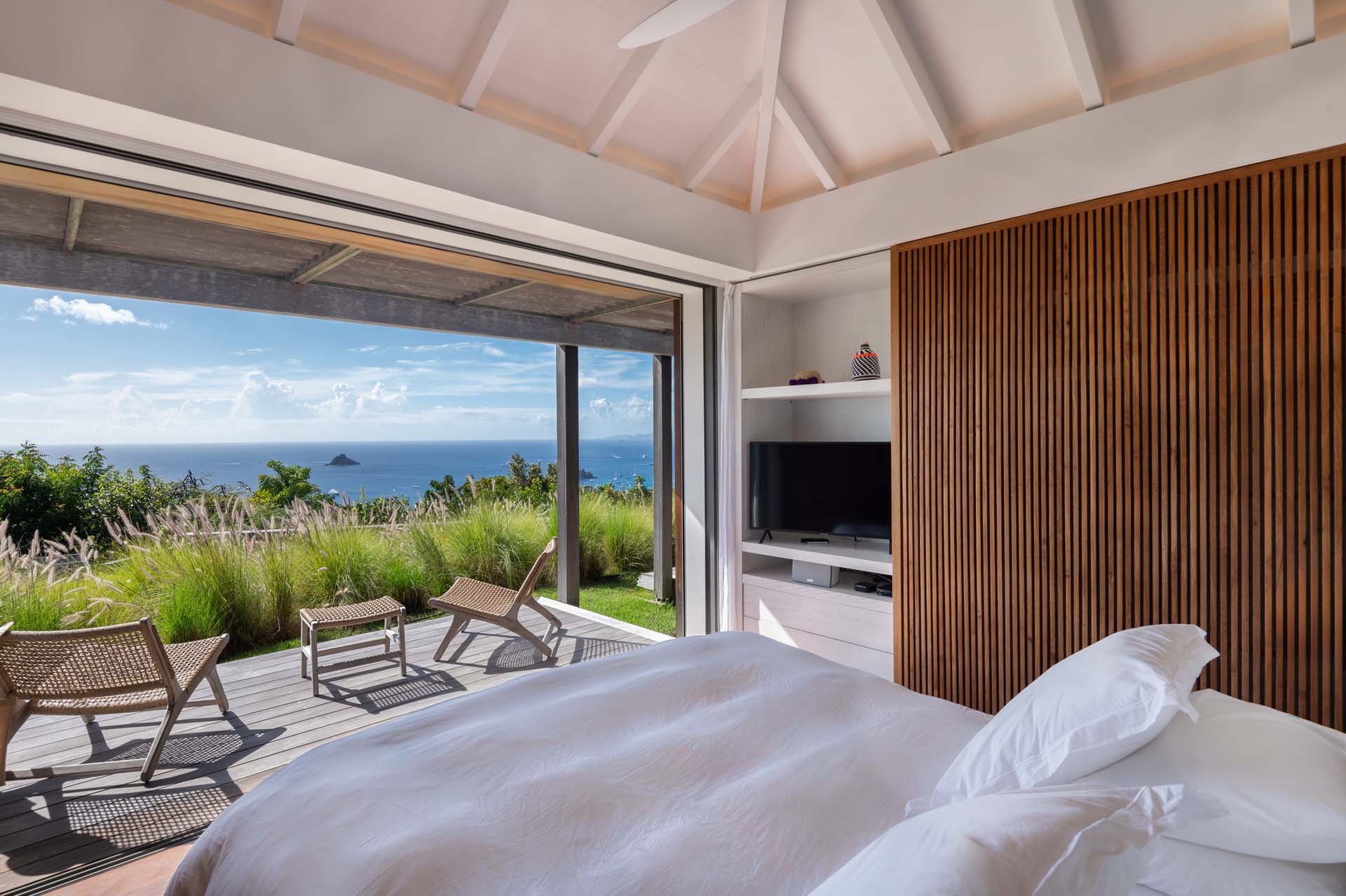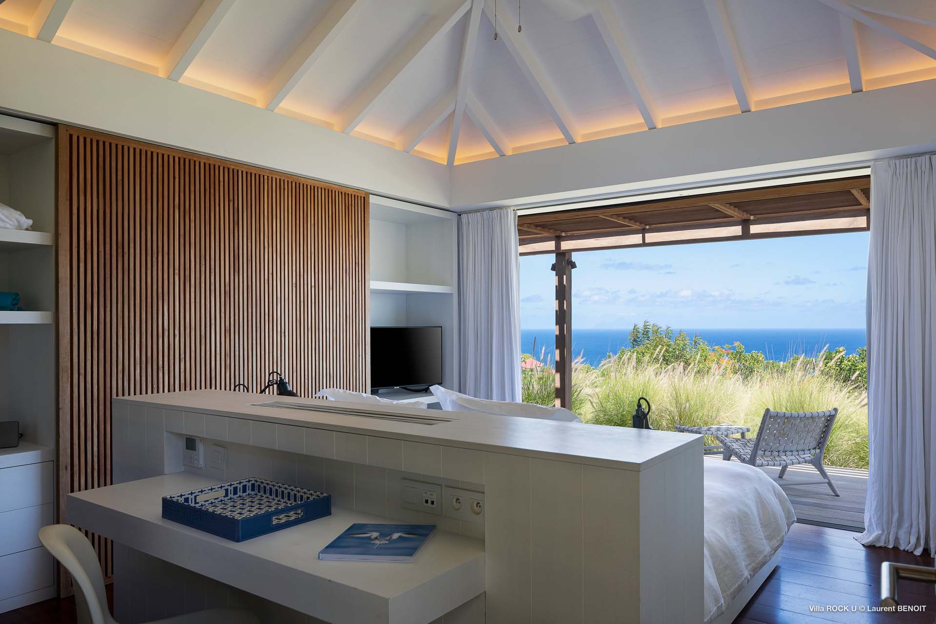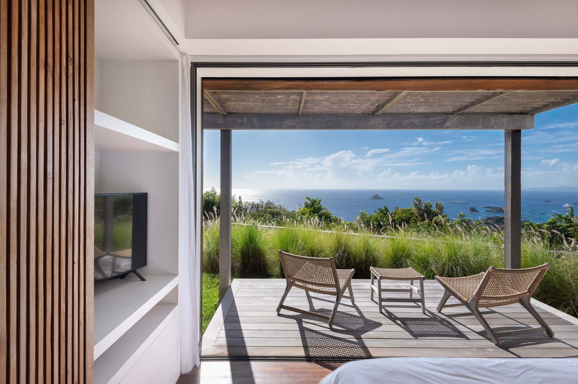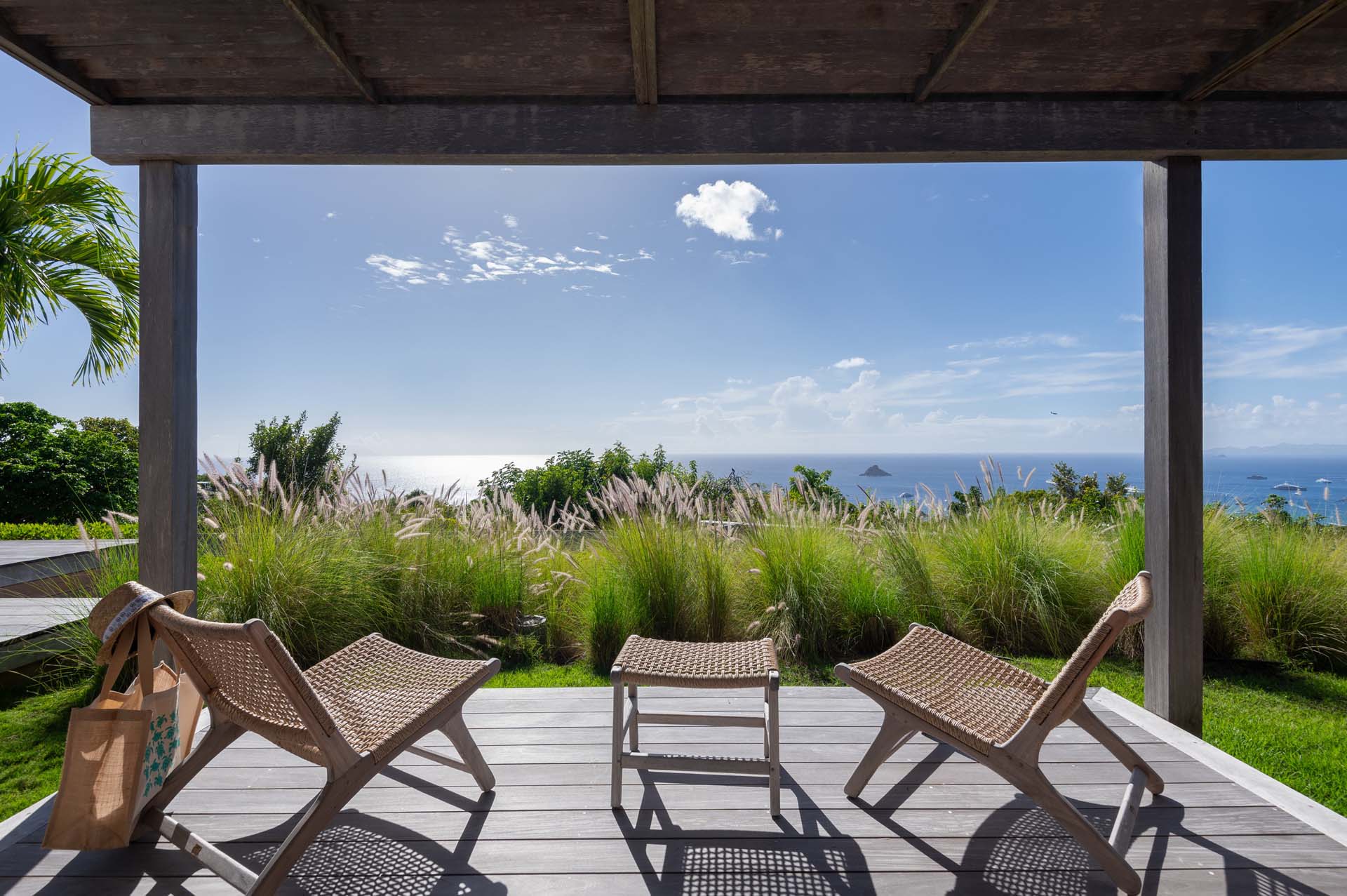 La vue sur l’océan, sur Saint Martin et sur une partie du port de Gustavia est magnifique.