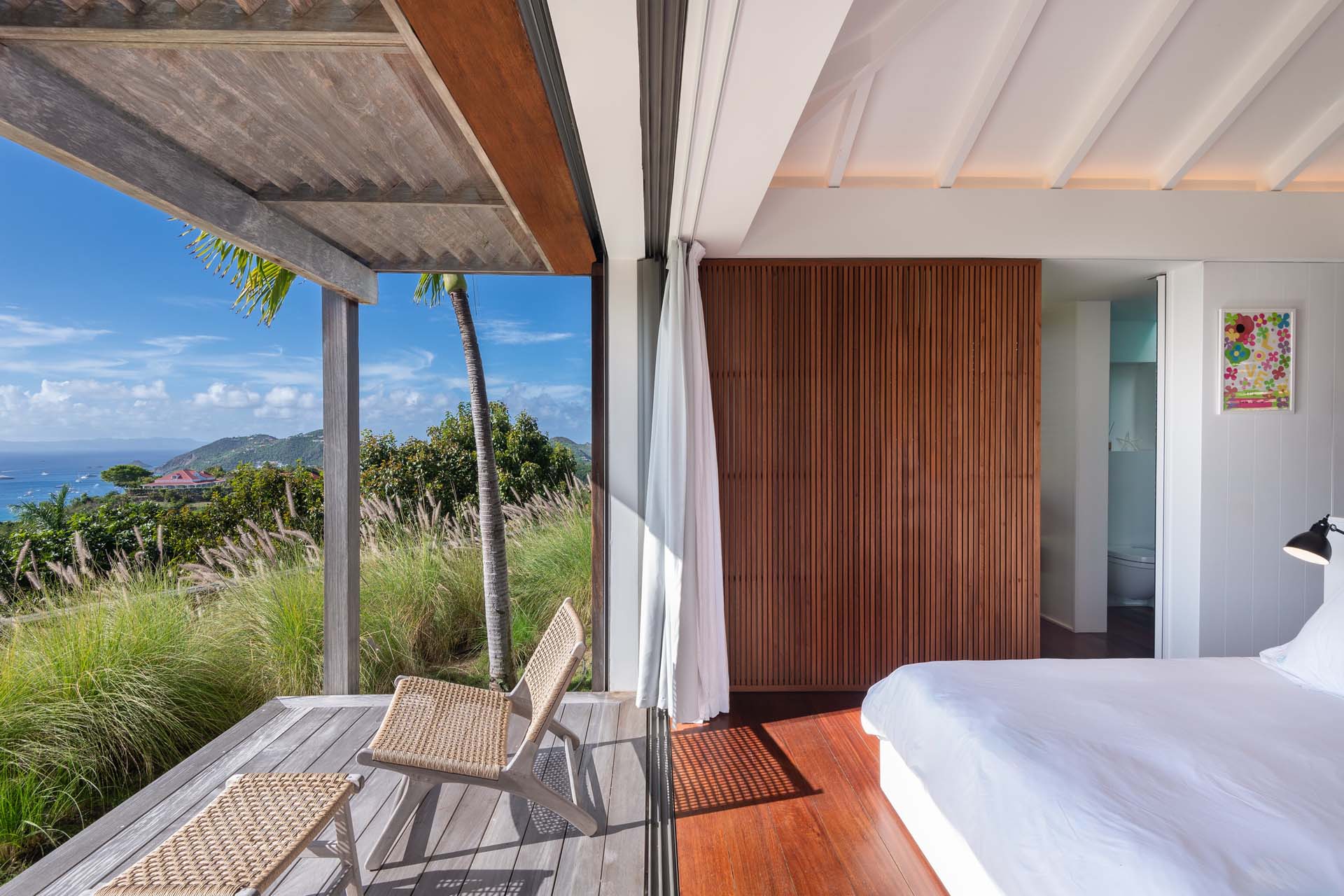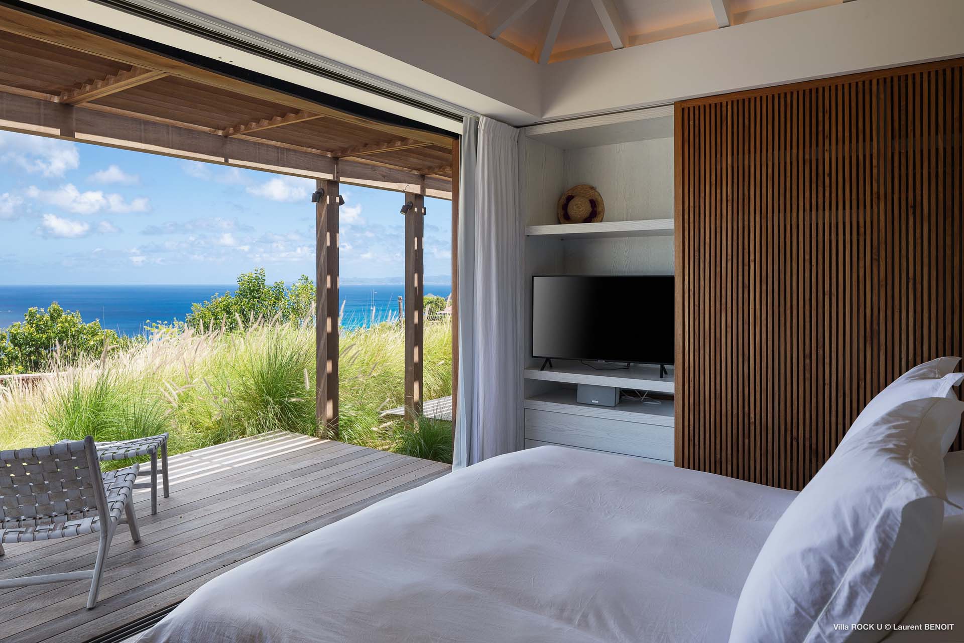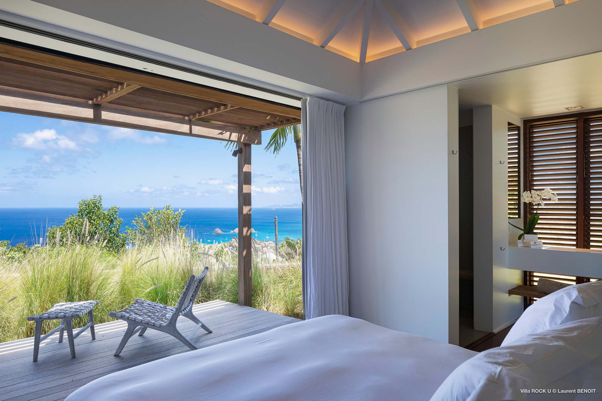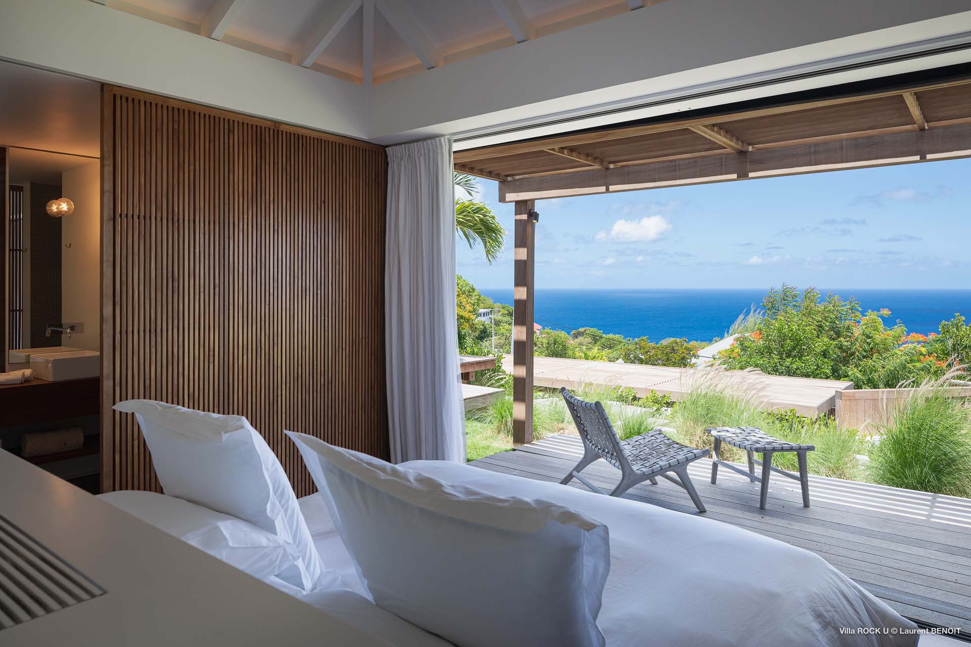 La vue sur l’océan, sur Saint Martin et sur une partie du port de Gustavia est magnifique.