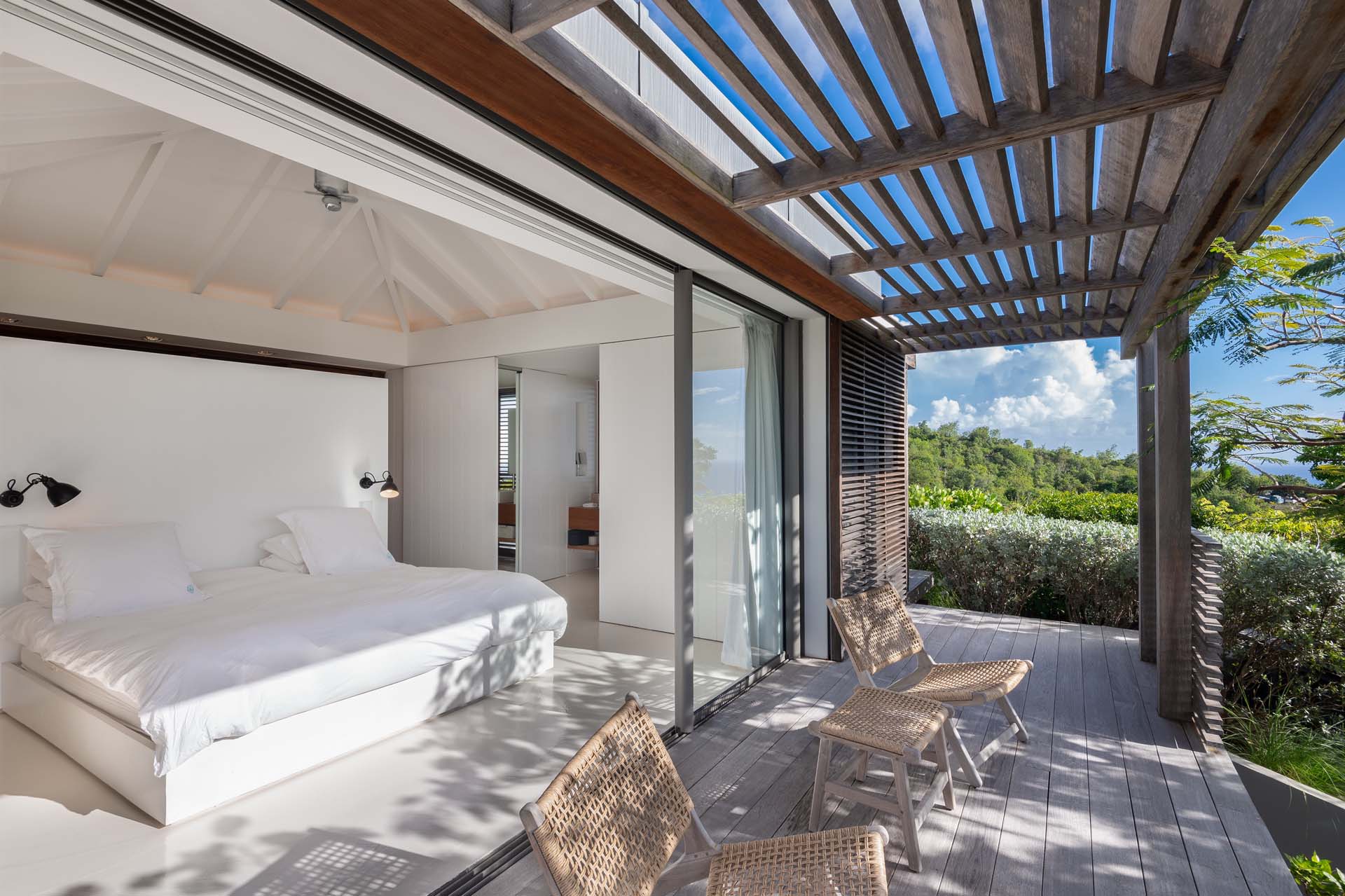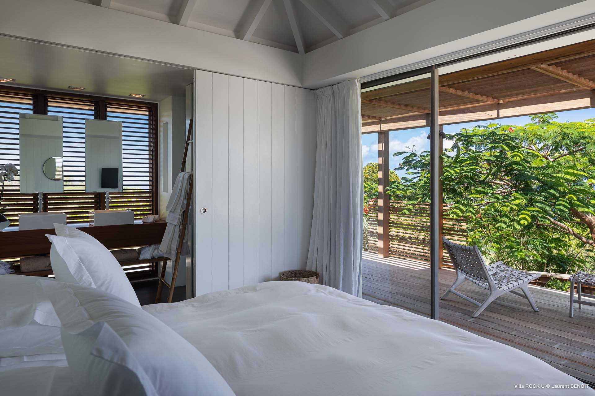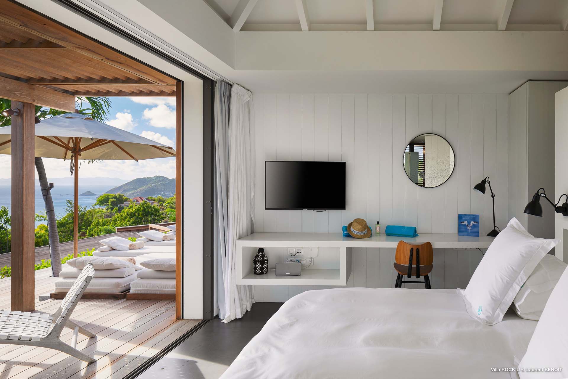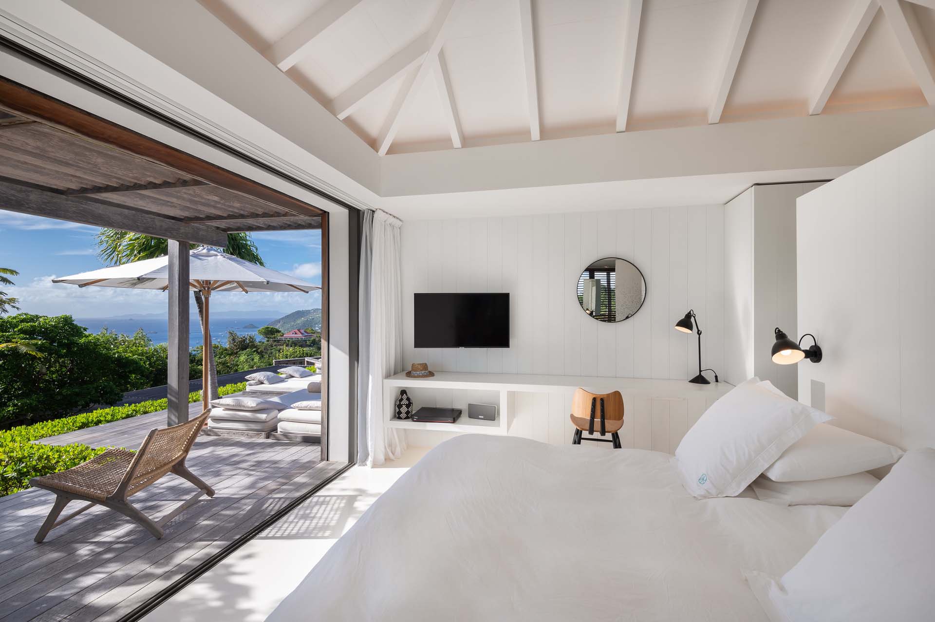 La vue sur l’océan, sur Saint Martin et sur une partie du port de Gustavia est magnifique.