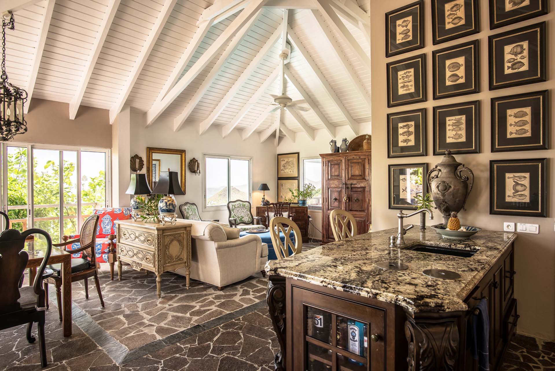 * Haute Maison est située dans une résidence privée tout au bout de Colombier non loin du point de vue qui surplombe la baie.