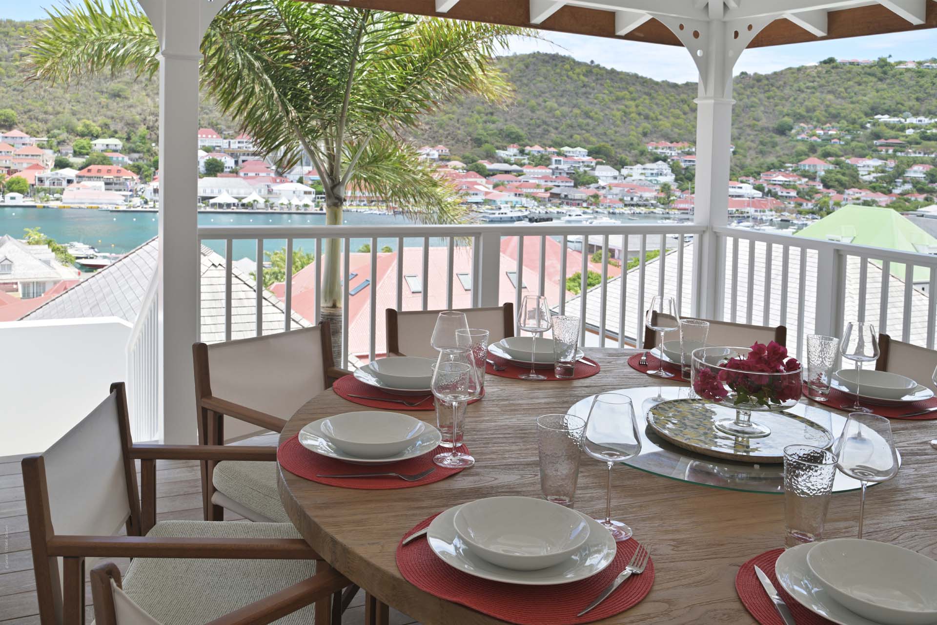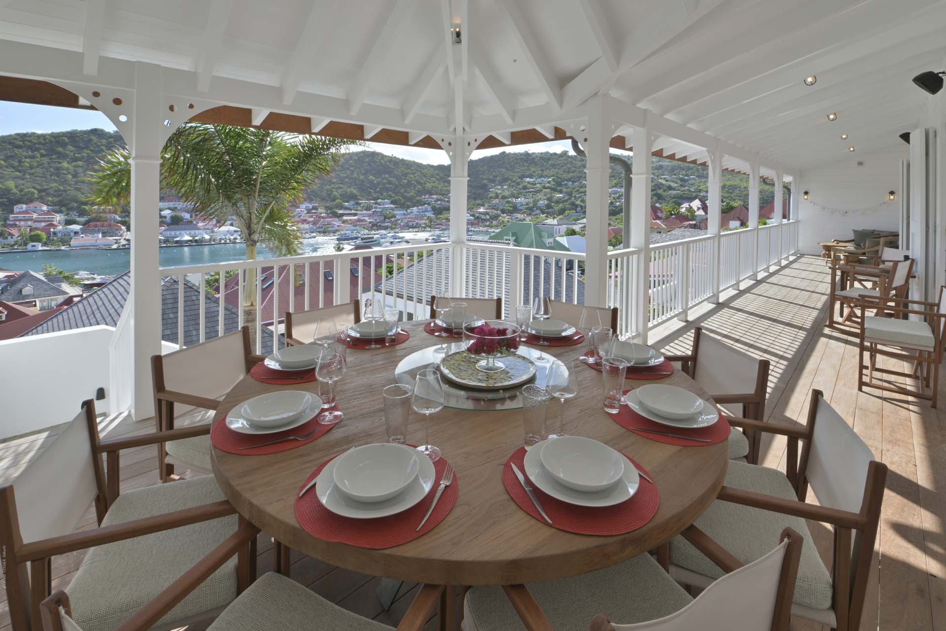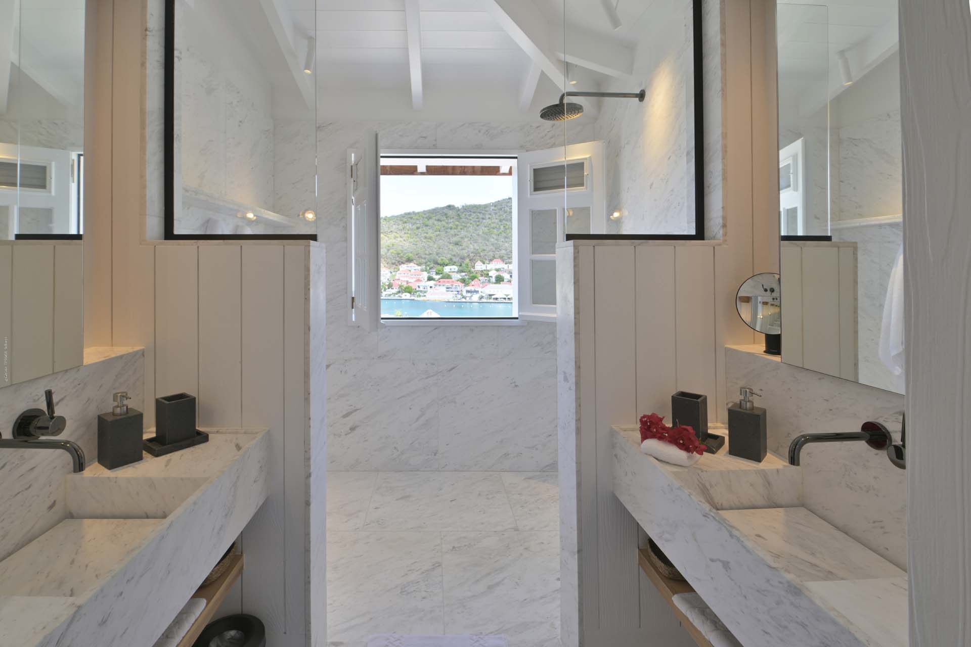 Offrant une vue panoramique imprenable sur le port et les toits colorés de la ville, cette villa de quatre chambres séduit par son atmosphère sereine, ses prestations haut de gamme et son emplacement privilégié, à quelques minutes des plages, boutiques et restaurants les plus prisés de Saint-Barthélemy.