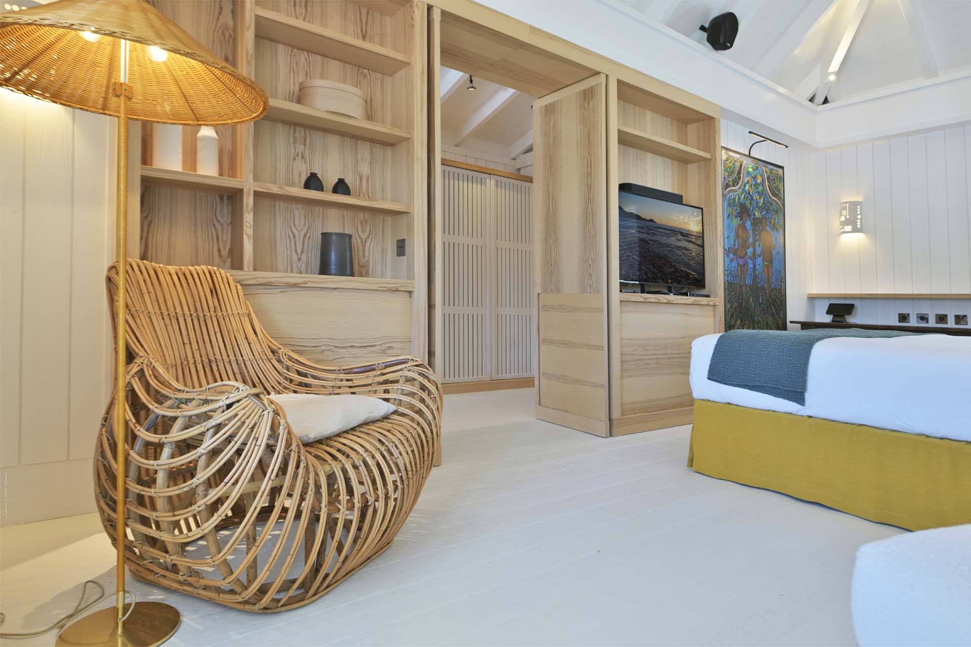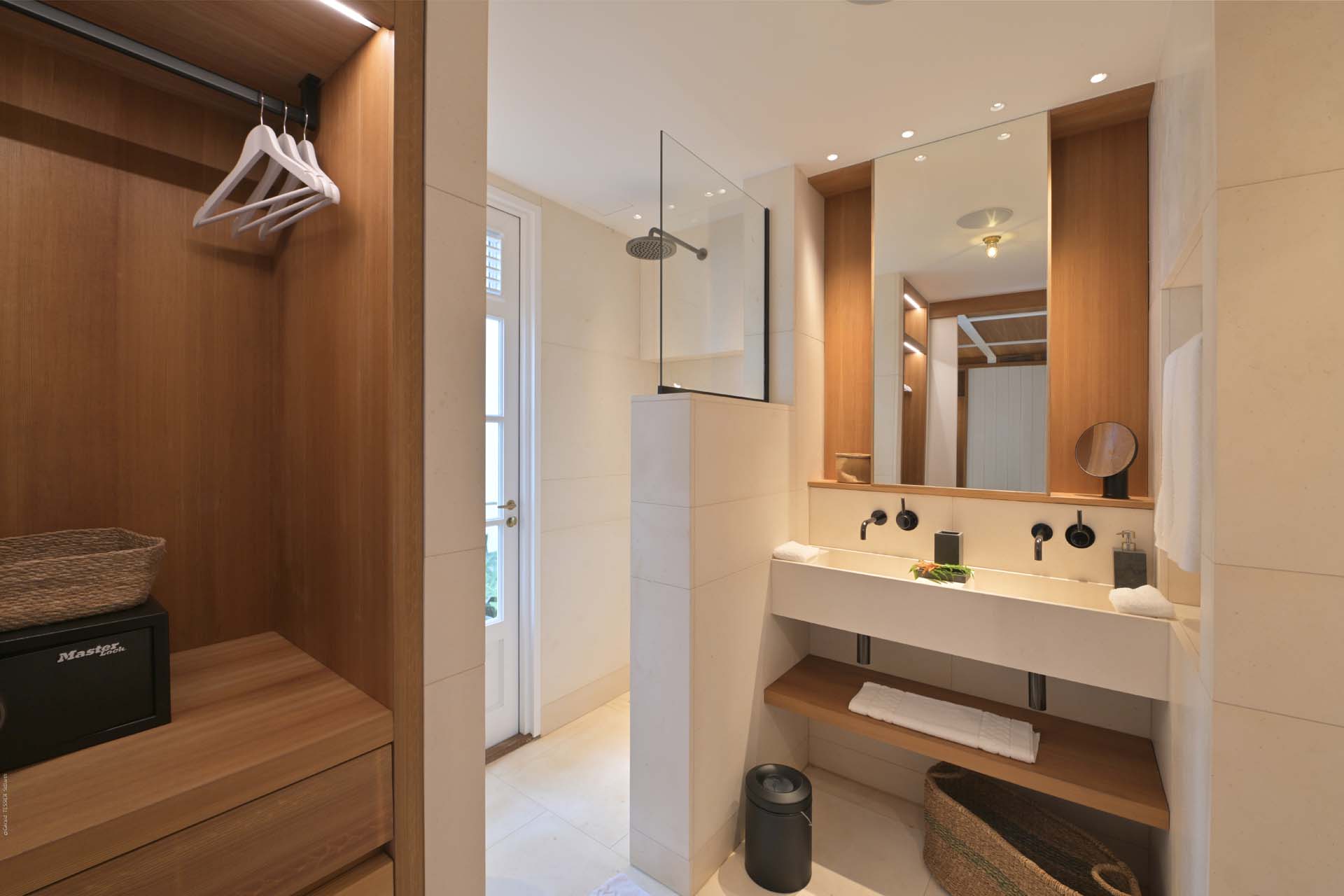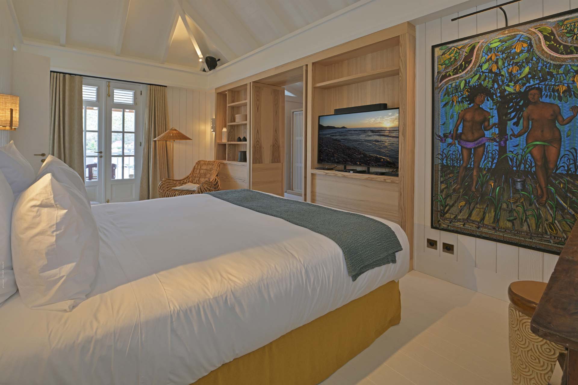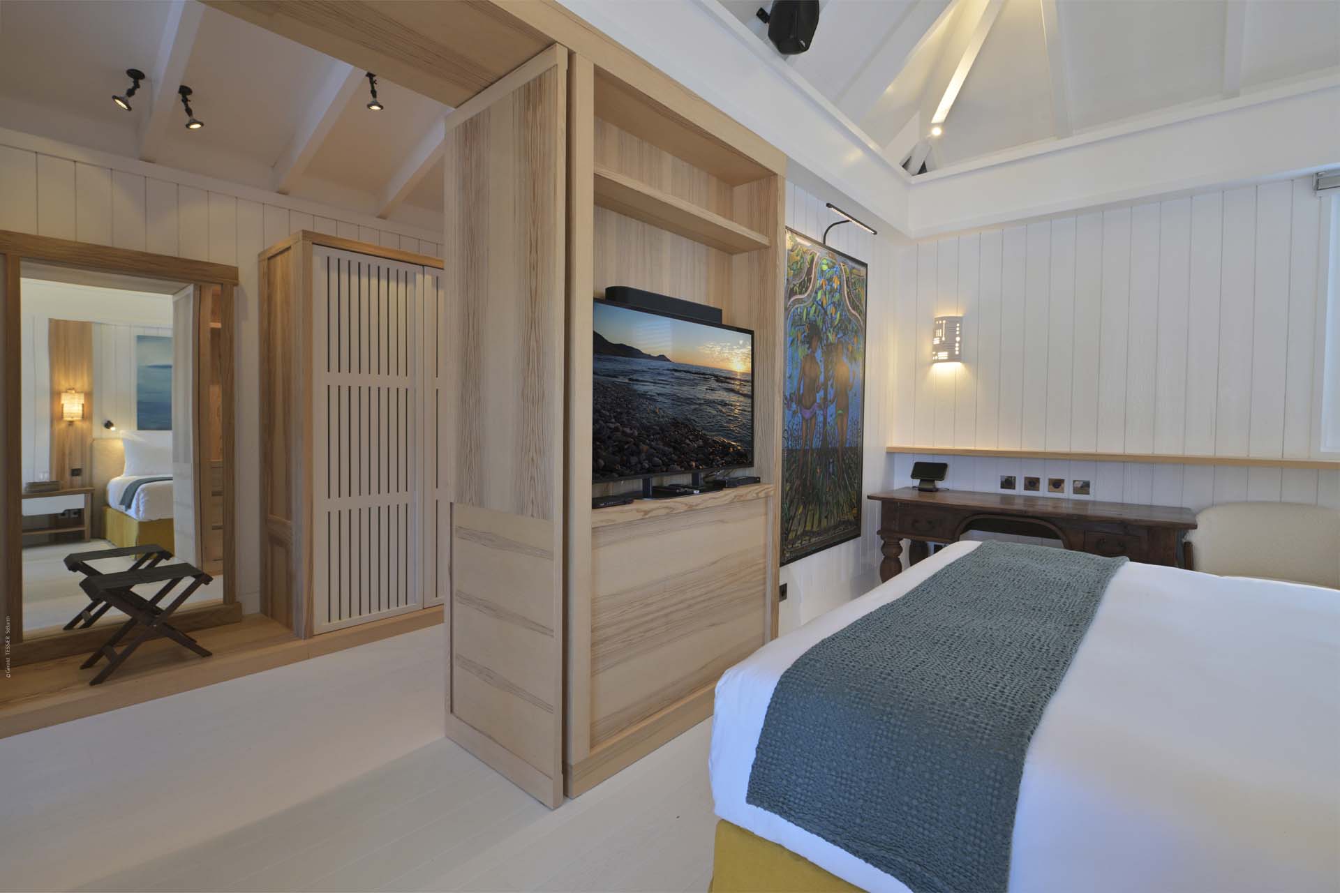 Chacune dispose d’un lit queen-size, d’une salle de bain privative avec douche à l’italienne et toilettes, ainsi que d’équipements haut de gamme : climatisation, dressing, coffre-fort et rideaux occultants. Une d’entre elles offrent une vue imprenable sur la mer, tandis que les trois autres s’ouvrent avec élégance sur la piscine ou le jardin tropical.