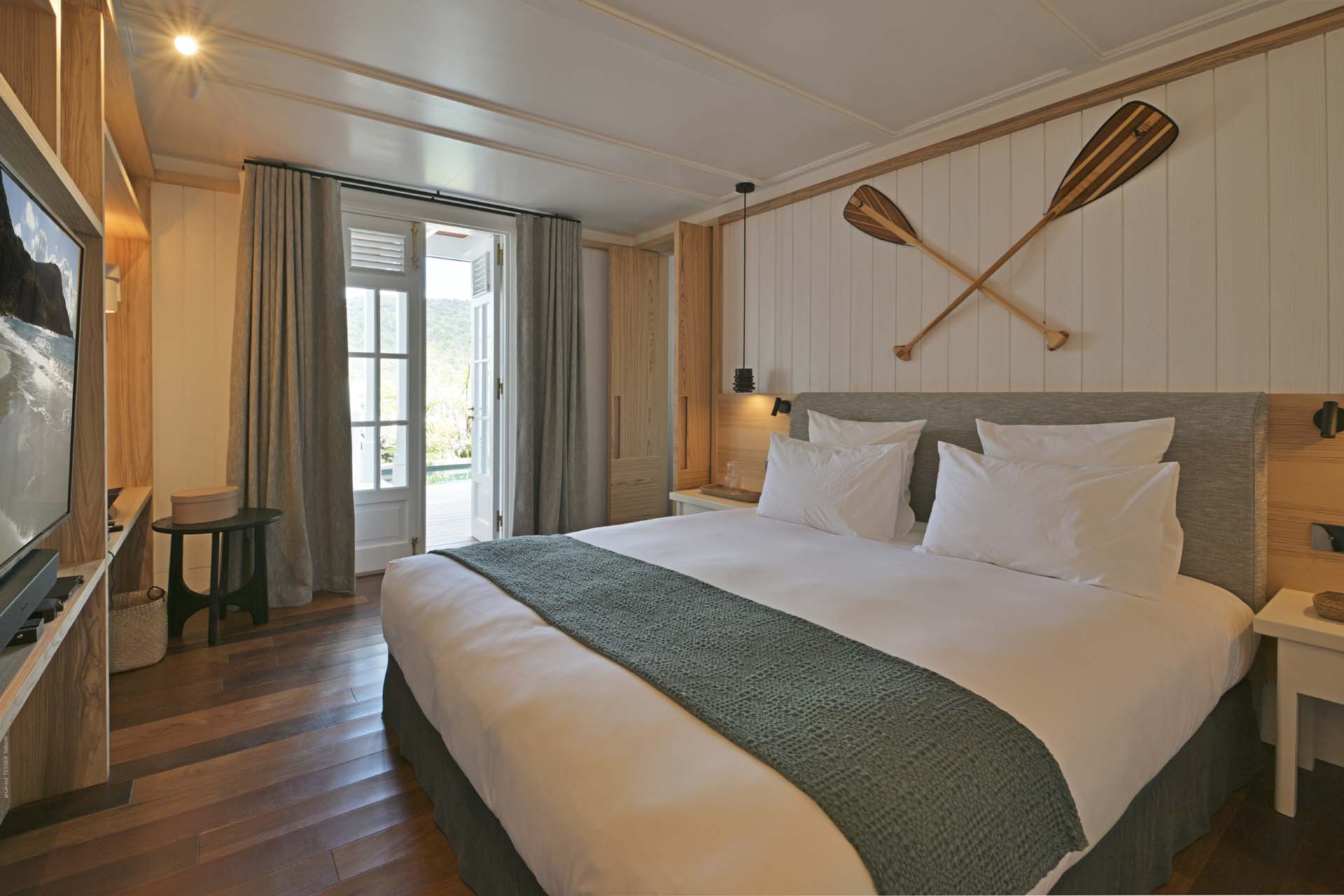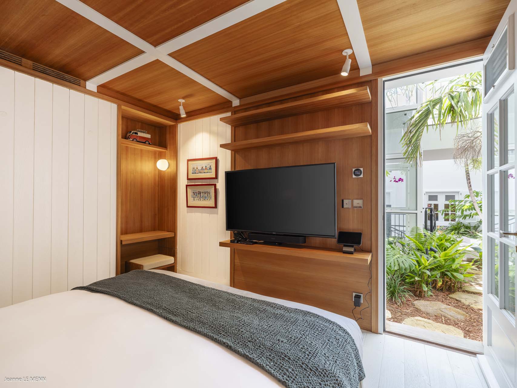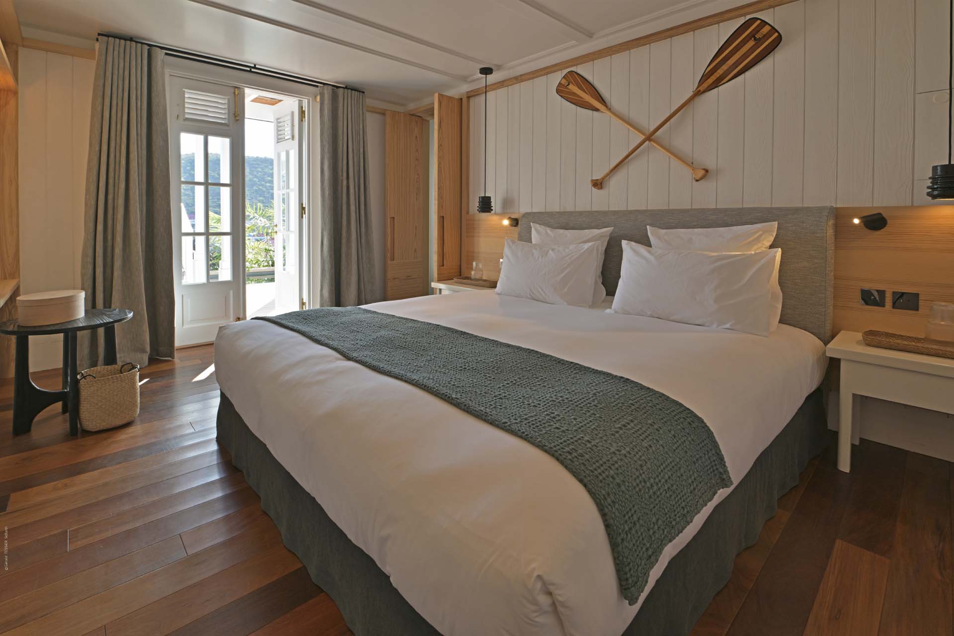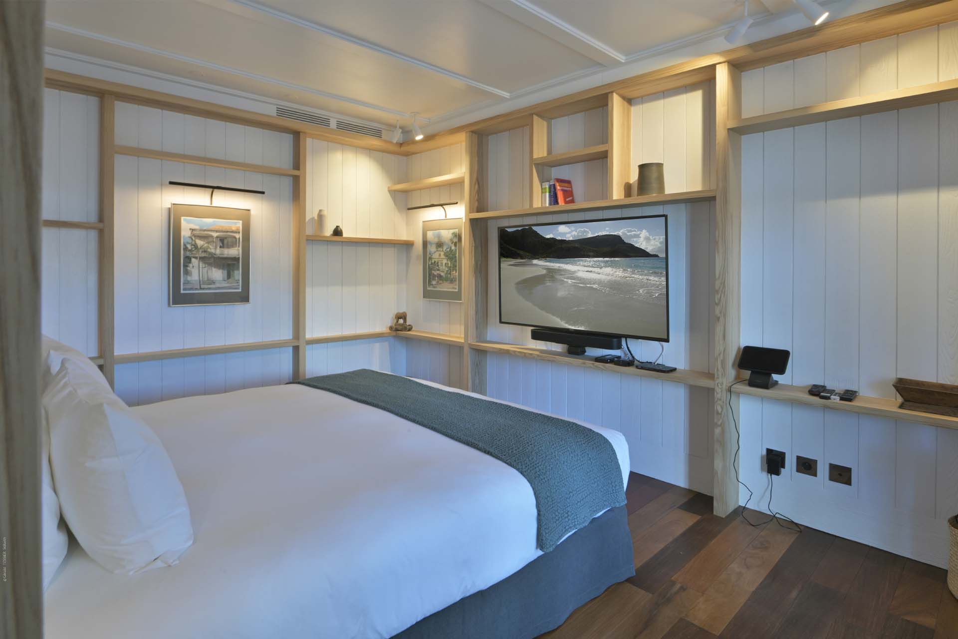 Chacune dispose d’un lit queen-size, d’une salle de bain privative avec douche à l’italienne et toilettes, ainsi que d’équipements haut de gamme : climatisation, dressing, coffre-fort et rideaux occultants. Une d’entre elles offrent une vue imprenable sur la mer, tandis que les trois autres s’ouvrent avec élégance sur la piscine ou le jardin tropical.