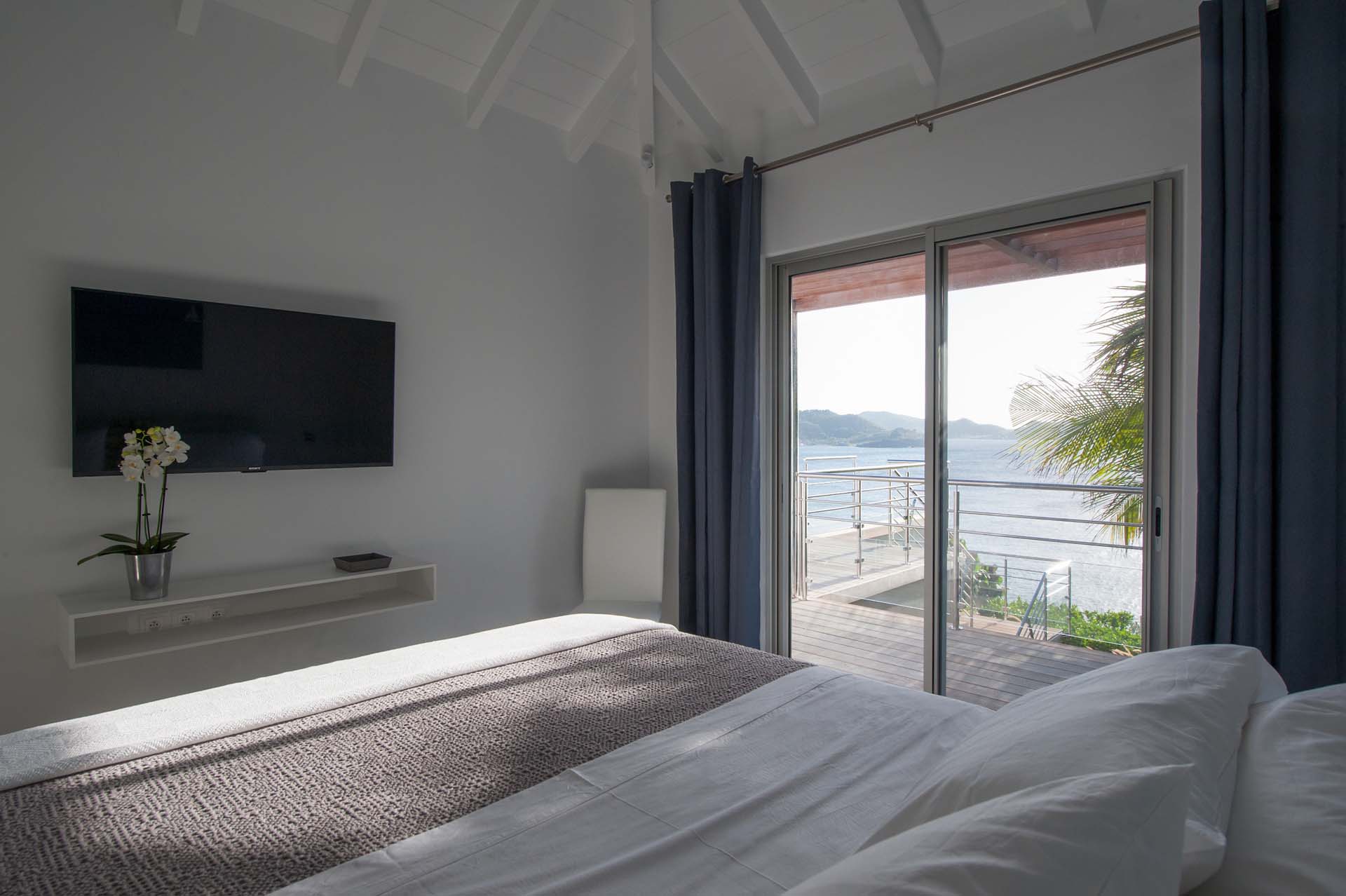 Deux premières chambres sont accessibles de part et d’autre du salon et ont aussi un accès direct à la terrasse. L’une d’entre elle est également communicante à une troisième chambre mais si cette option n’est pas nécessaire, les portes seront complètement closes et l’accès se fera par la terrasse. Ces trois chambres bénéficient d’une magnifique vue sur l’océan.
