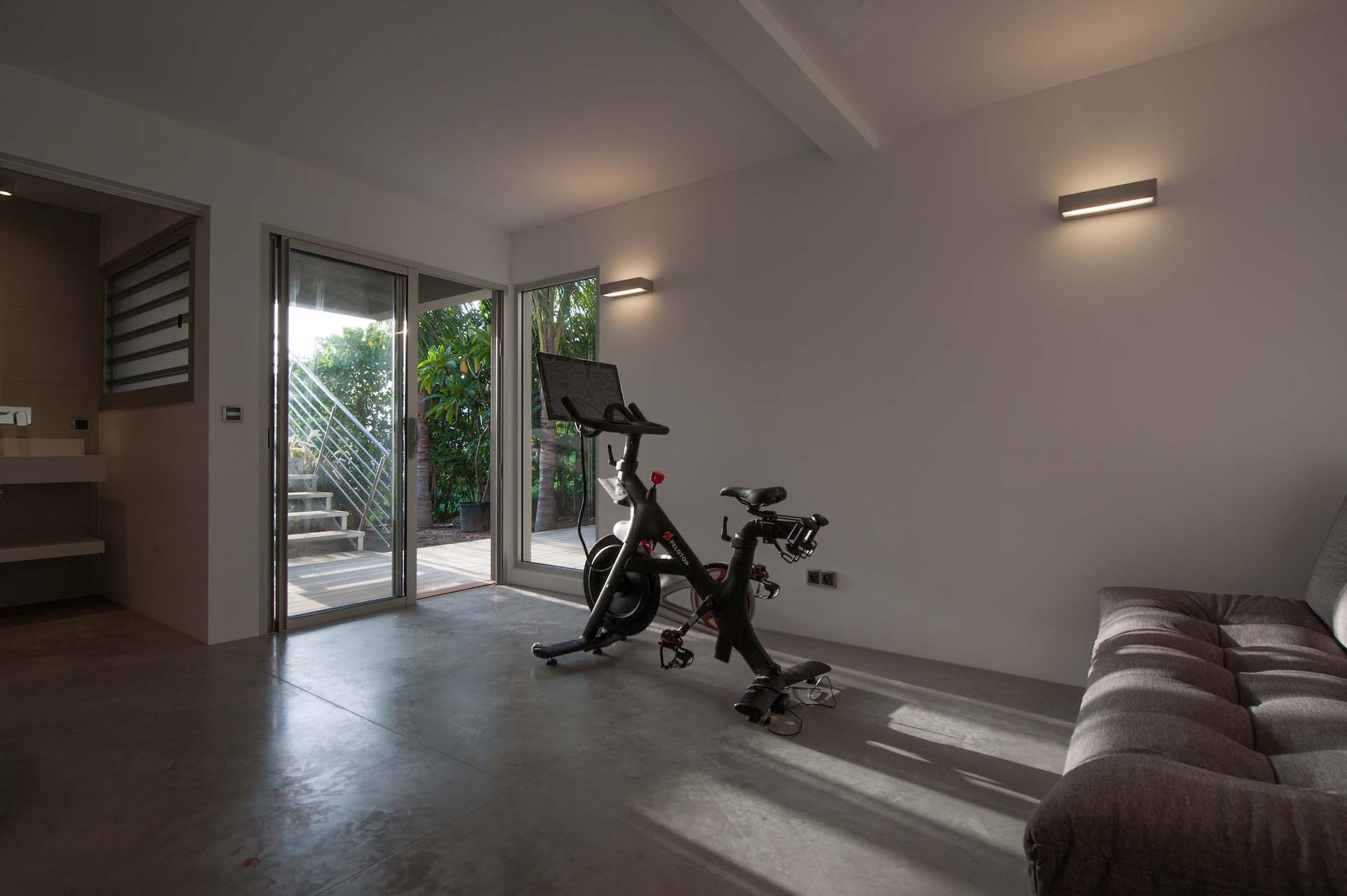 La quatrième chambre est située à l’étage inférieur et possède une petite terrasse privative avec une vue sur le paisible jardin tropical. La salle de fitness située juste à côté propose un vélo d’exercice de la fameuse marque Peloton. Pour les abonnés et connaisseurs, vos programmes d’entrainement favoris seront même disponibles en vacances !