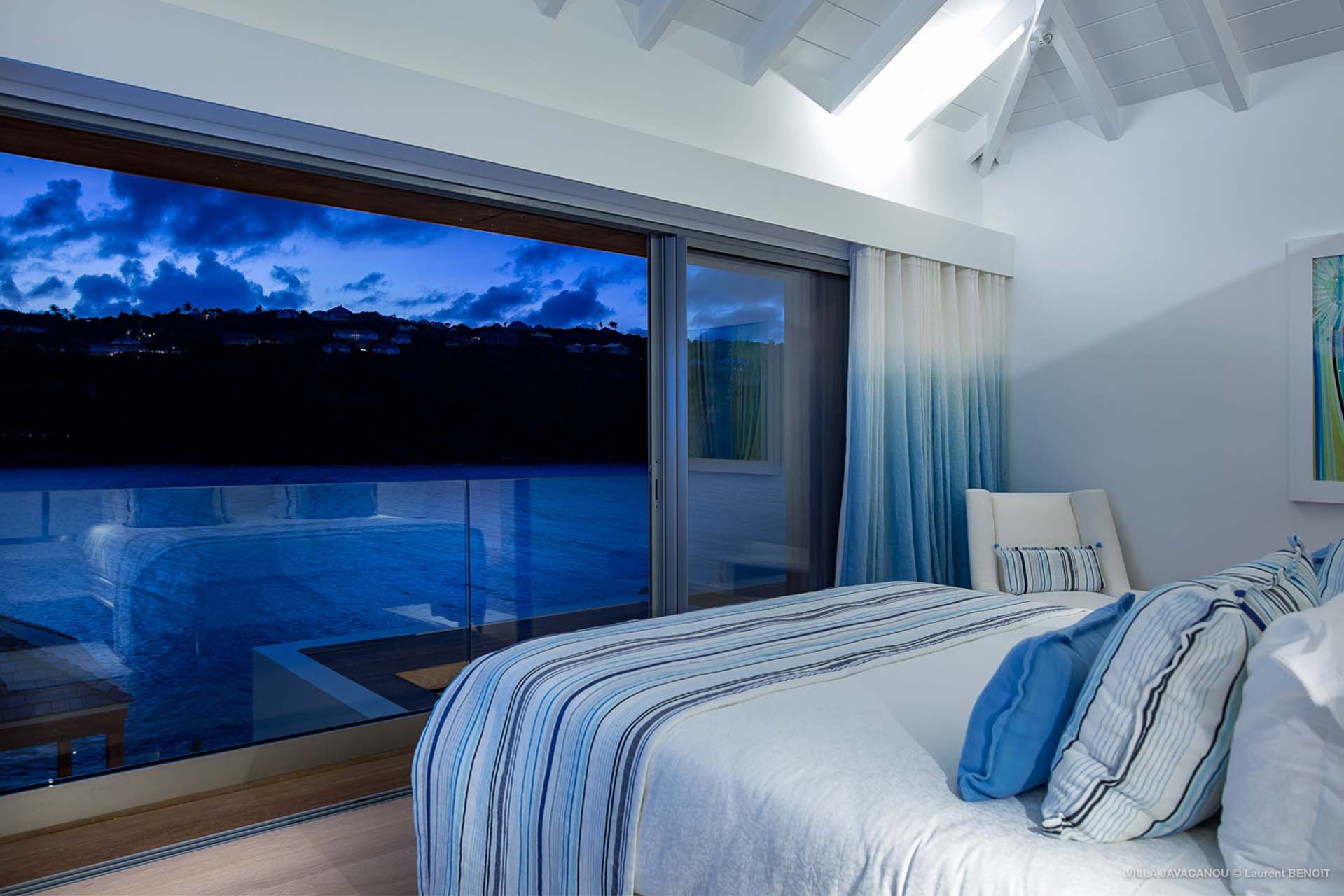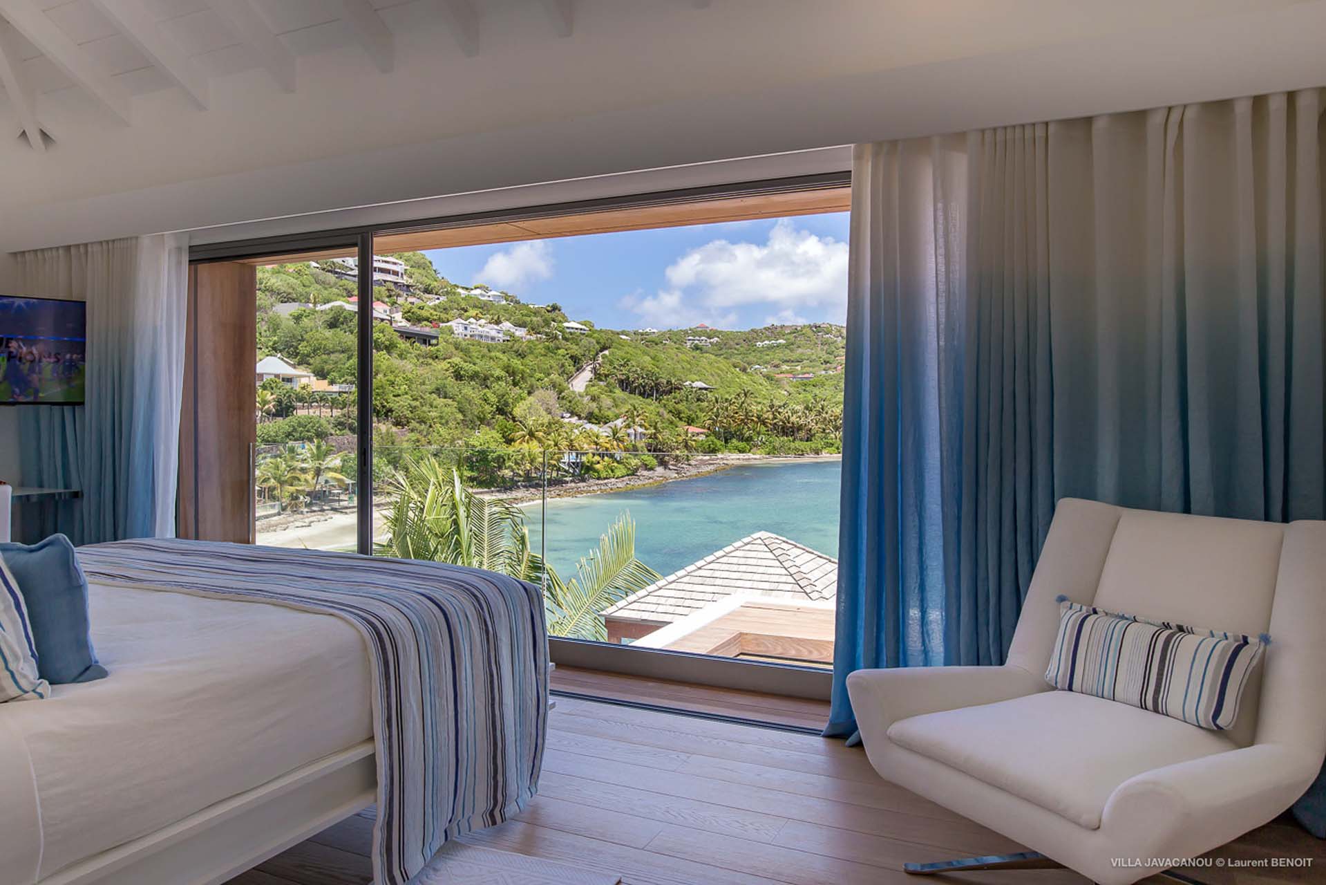 Cette luxueuse villa offre une vue exceptionnelle sur la baie de Marigot.