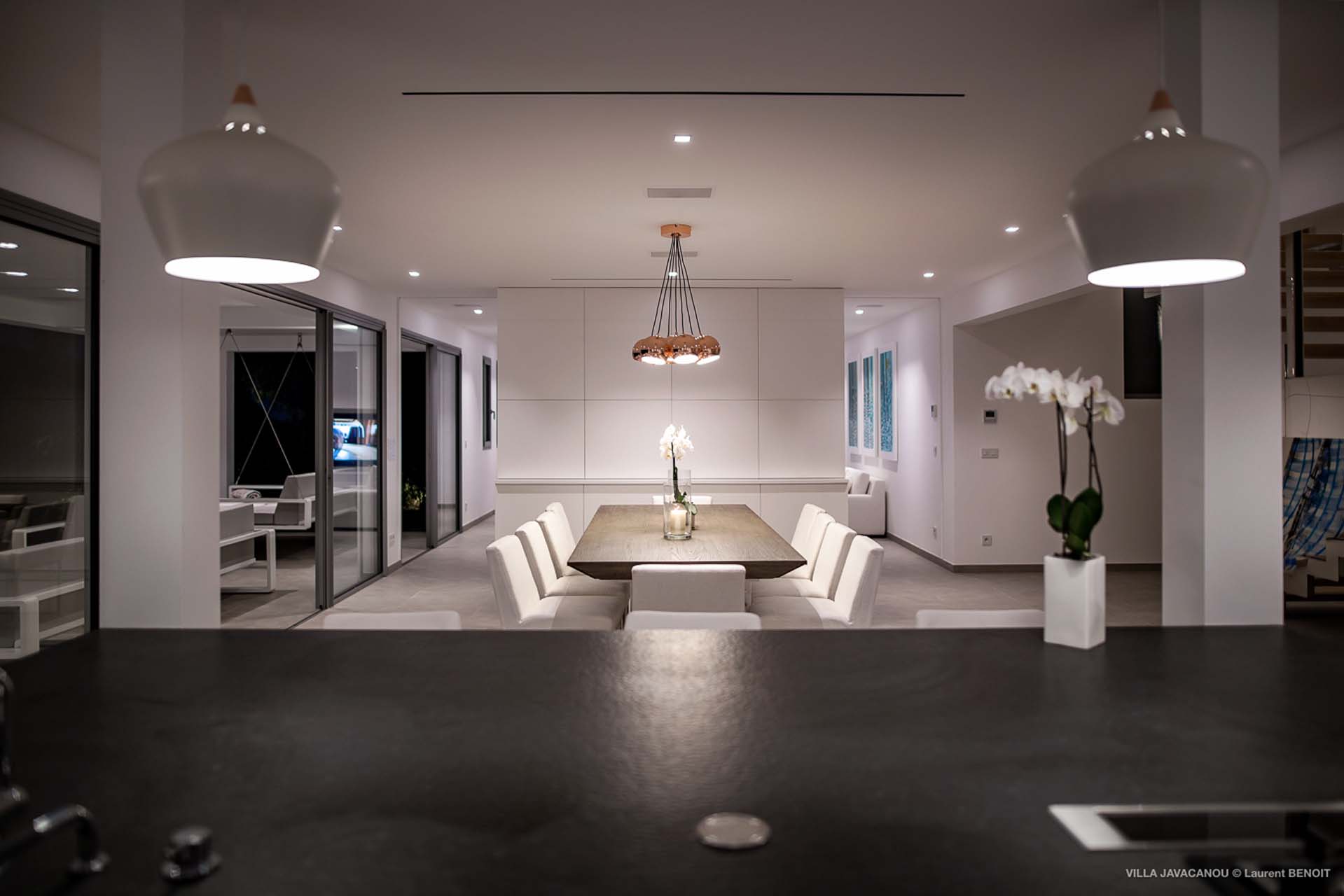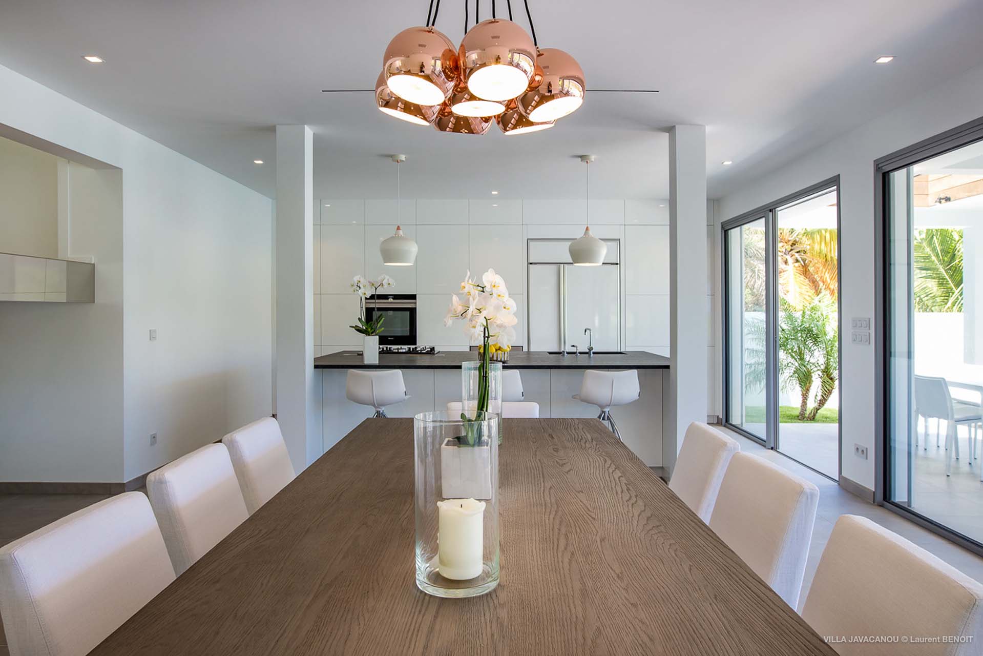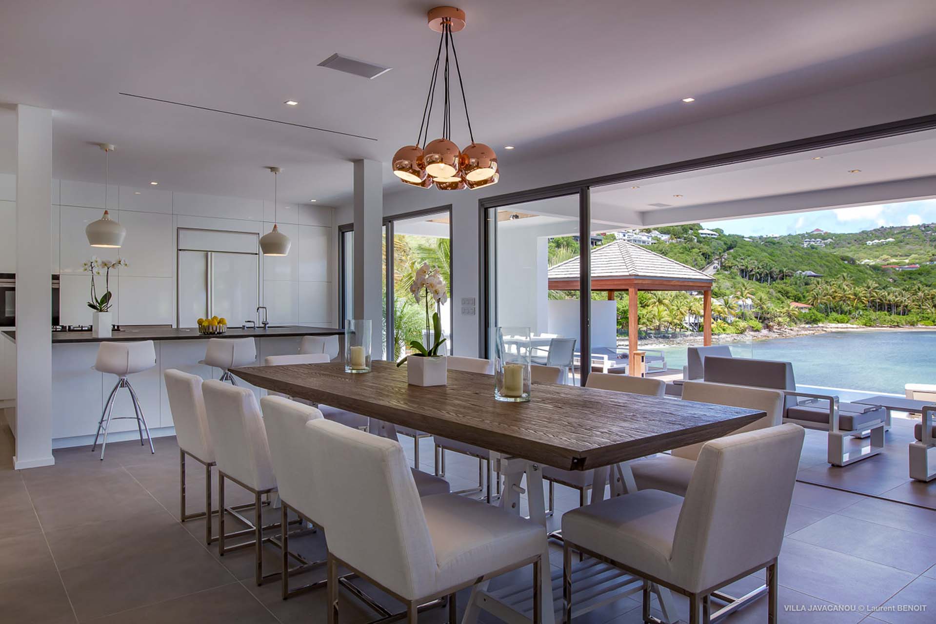 Le salon et la cuisine s’ouvrent sur le magnifique espace extérieur.