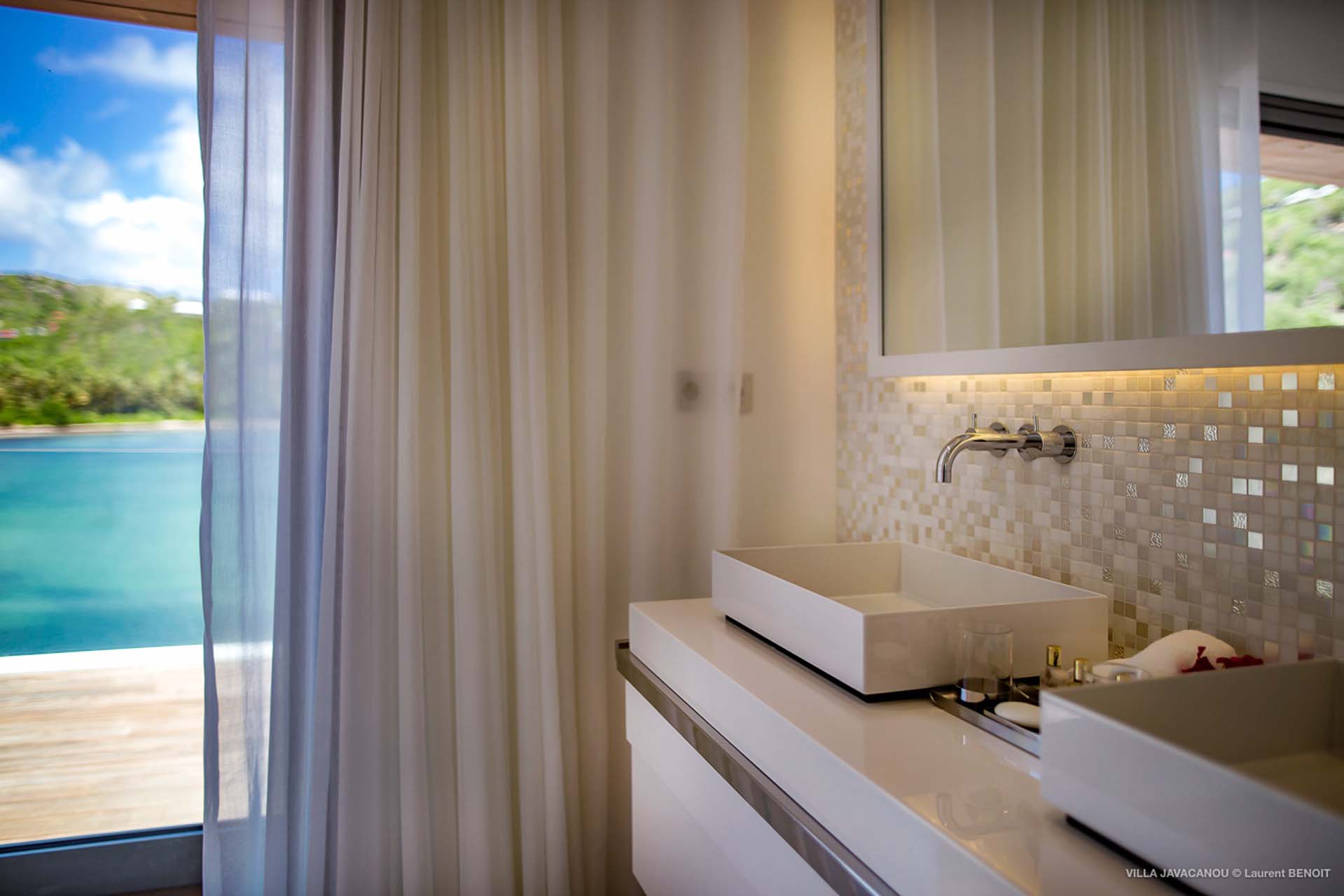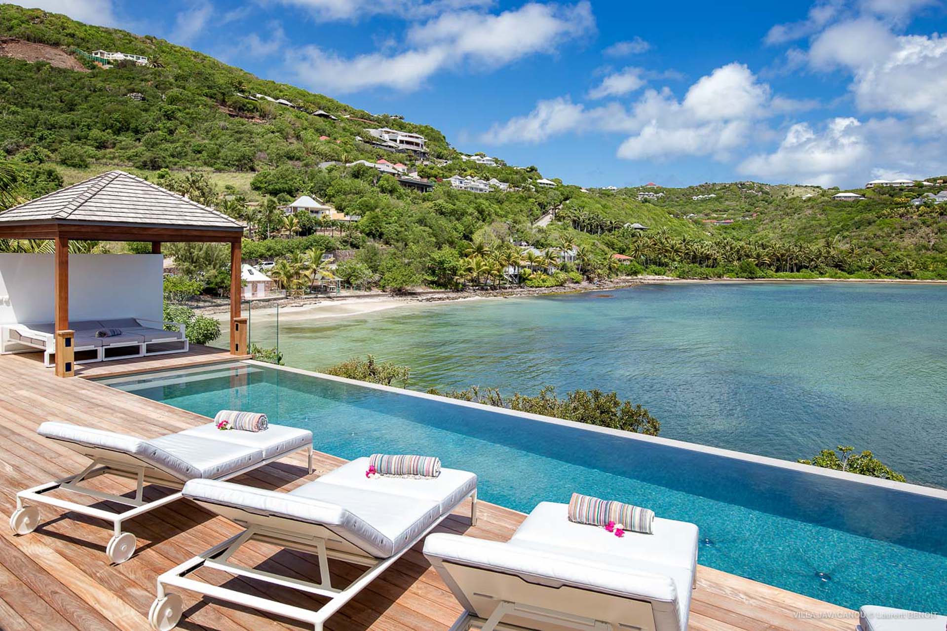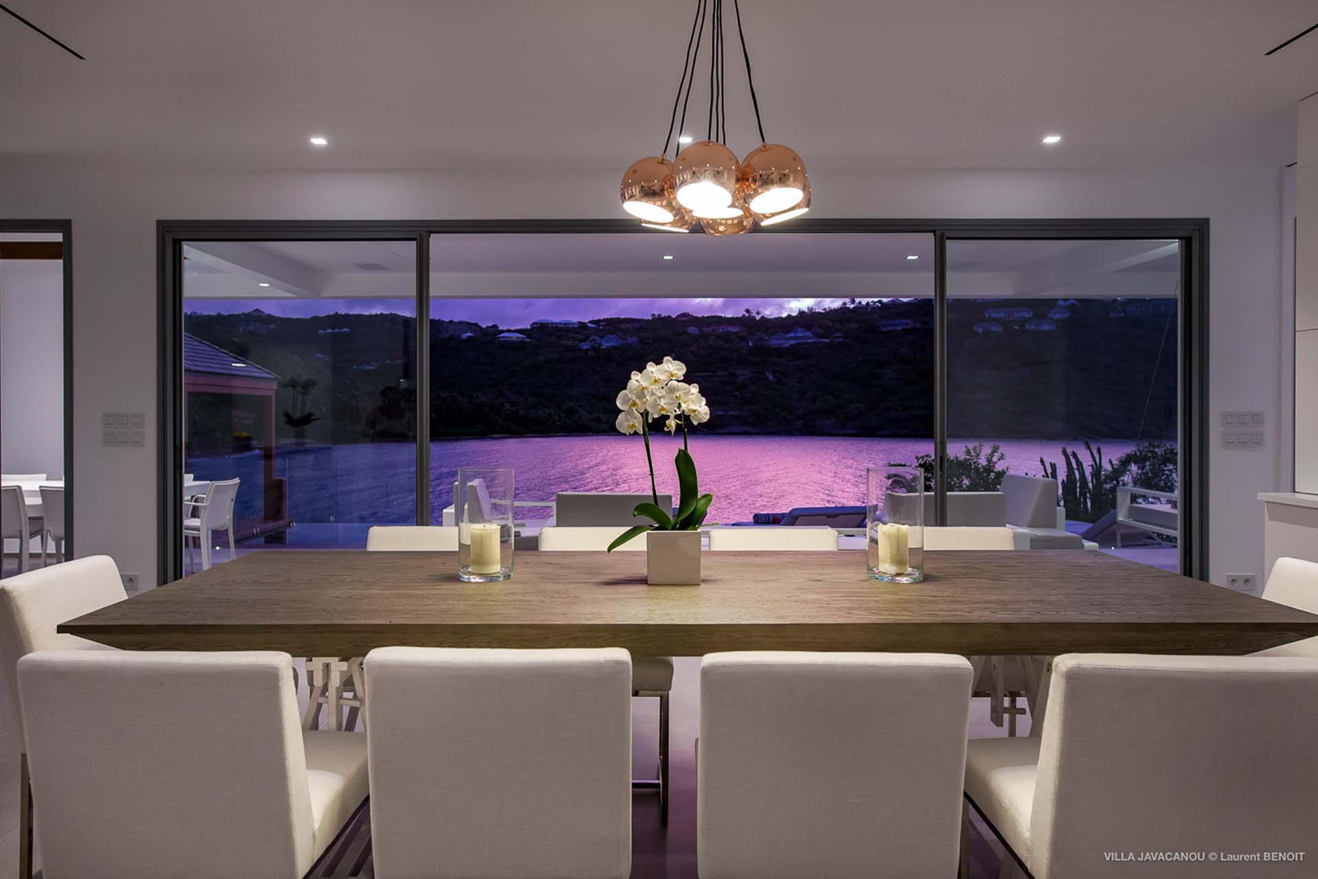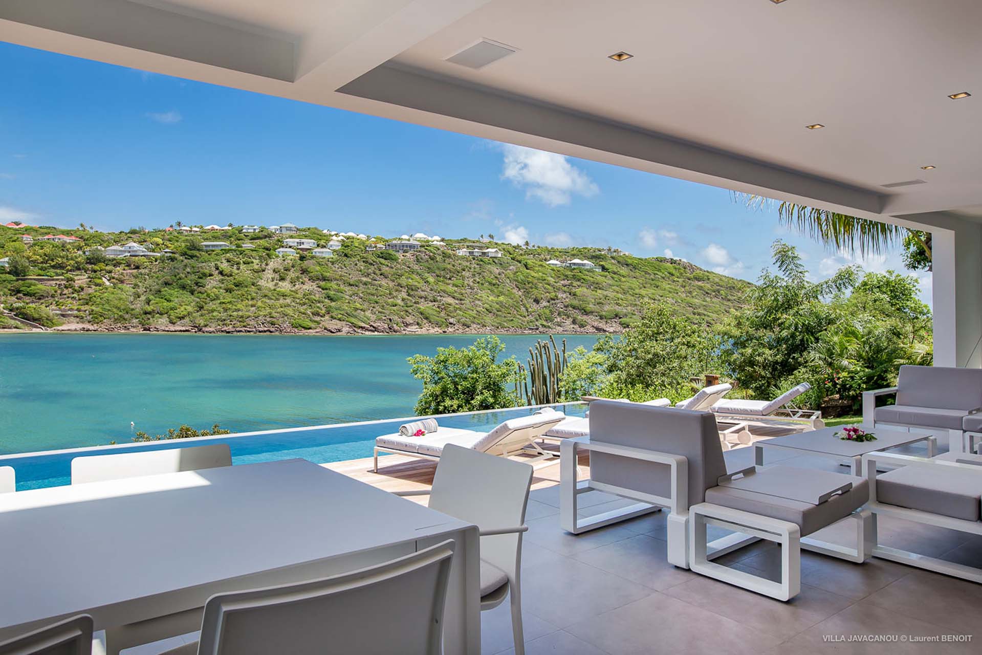 Cette luxueuse villa offre une vue exceptionnelle sur la baie de Marigot.