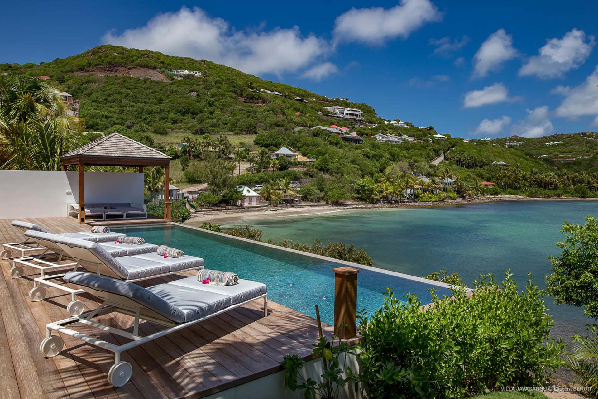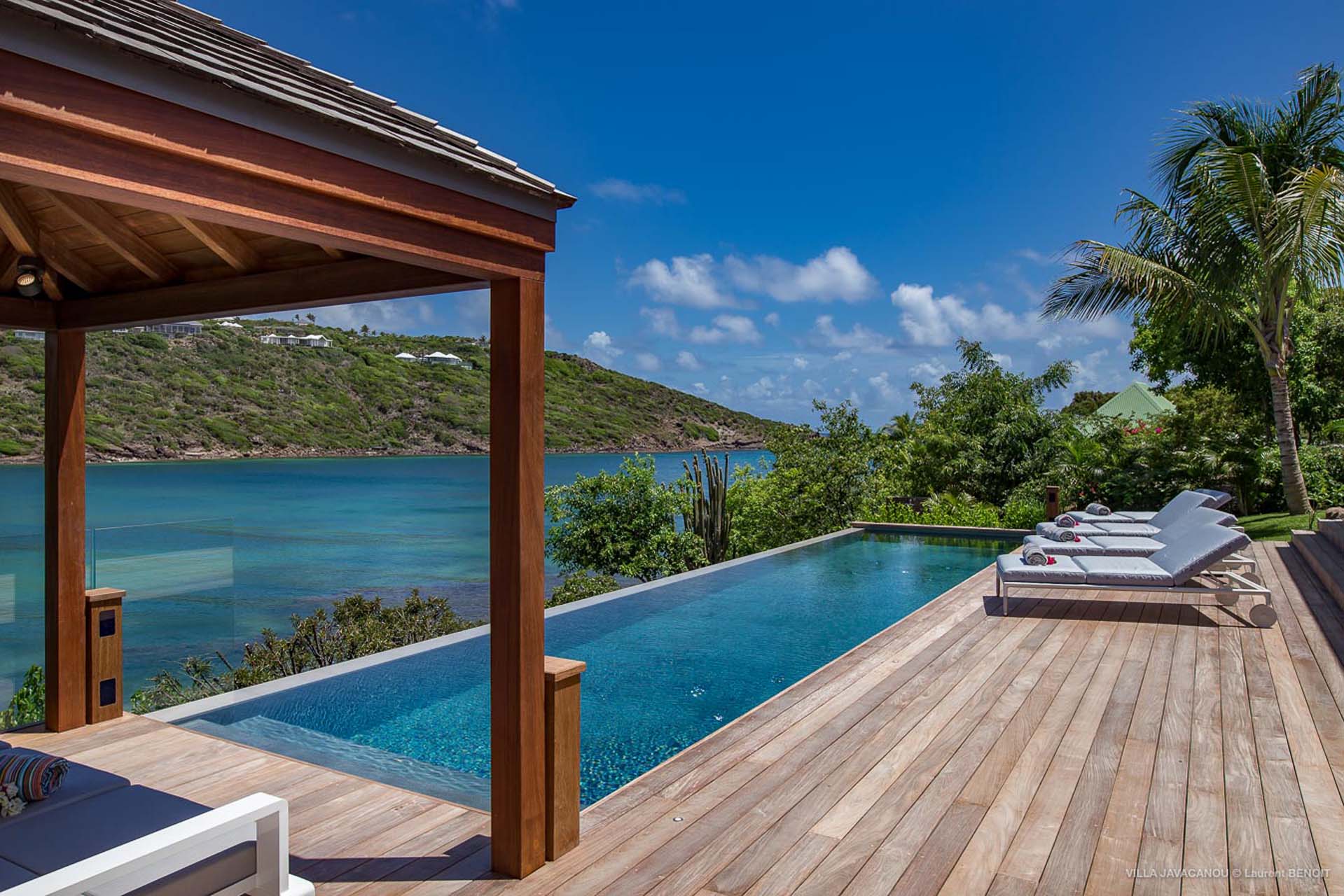 Grace à sa longue piscine vous aurez l’opportunité d’admirer l’espace privilégié qu’offre la baie de Marigot.