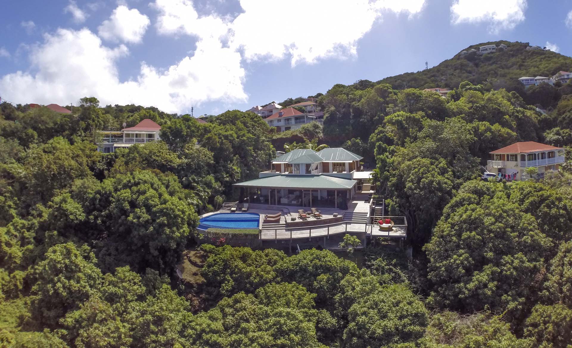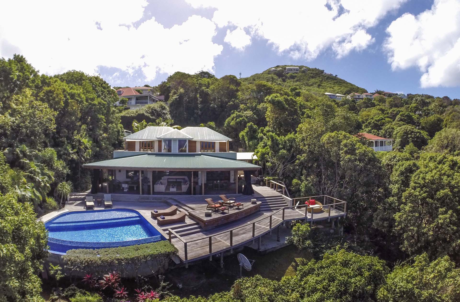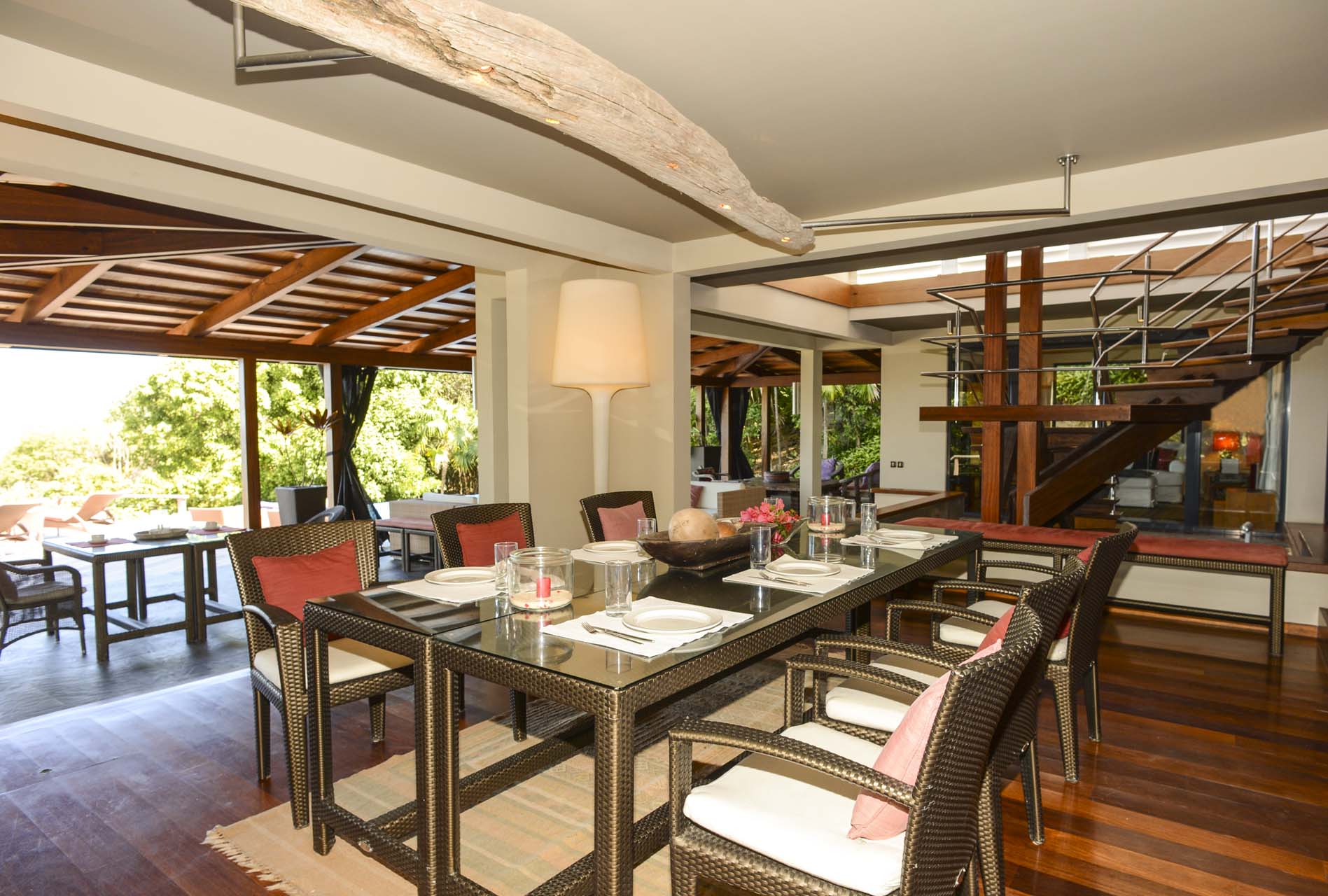 Cette spacieuse villa au décor d’inspiration asiatique domine l’océan.